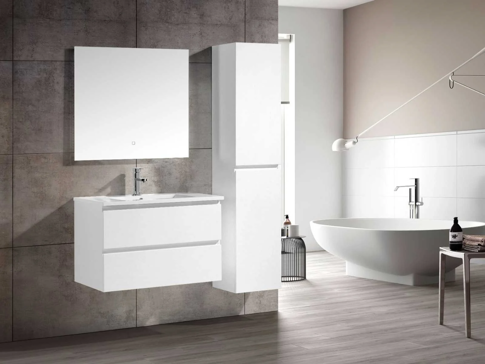 2 Lades met softclose systeem - Kraan, krepin sifon en kolomkast niet inbegrepen No Merk: Lavinno Model: Roma 80-03 Hoogte: 50cm Lengte: 80cm Breedte: 46cm Materiaal: Melamine Kleur: Mat Wit Wastafel: Mineraalmarmer Spiegel met verlichting: 80x70cm Softclose: true
