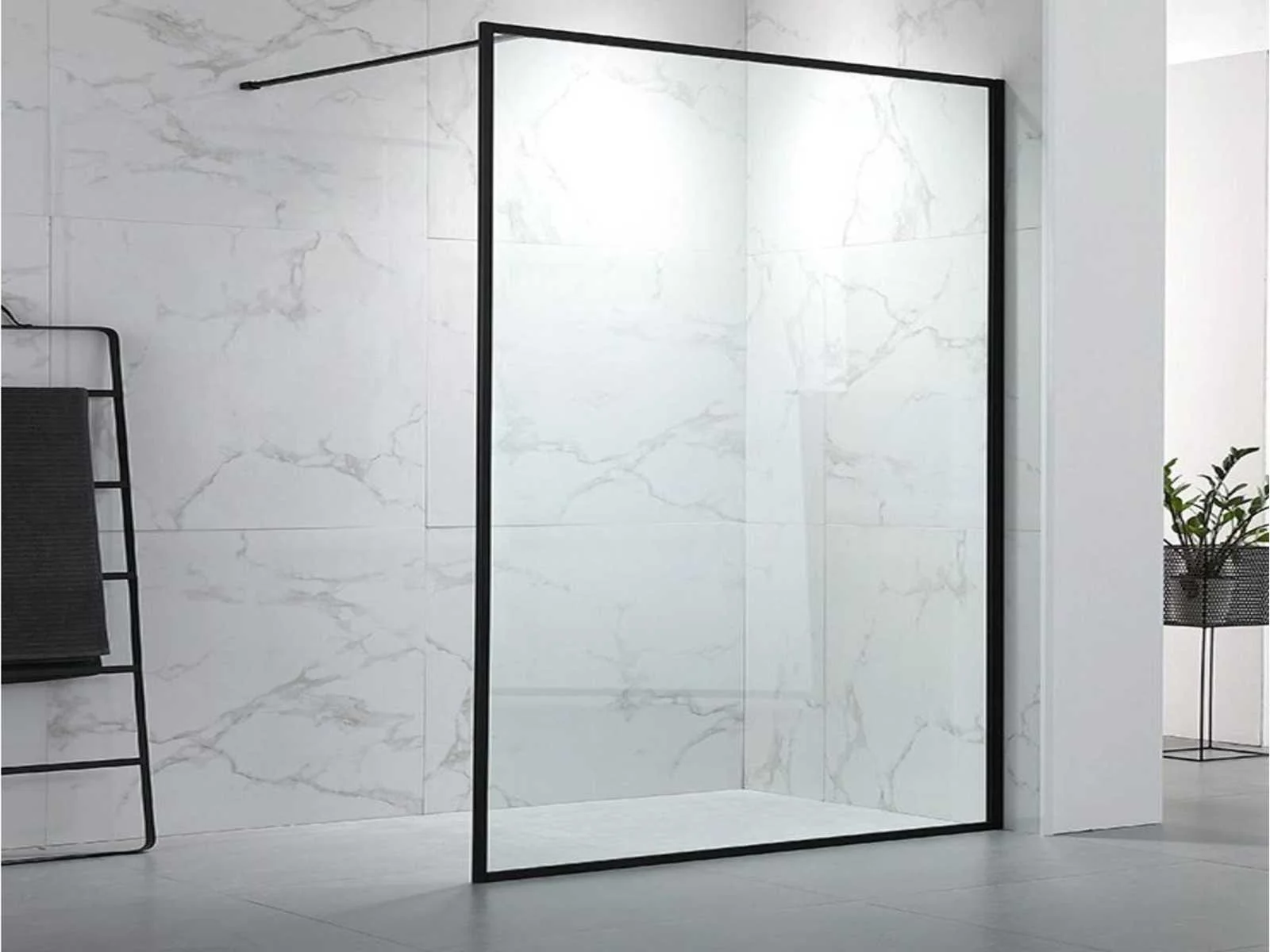 Antikalkbehandeling - NANO-EASY CLEANING GLAS; B 1160 x H 2000 mm - Mat zwart kader profiel breedte 25 mm - Mat zwart muur profiel breedte 30 mm - Veiligheidsglas Glasdikte 8 mm - 100 cm zwart stabilisatiestang inclusief No Merk: Lavinno Model: 120 BCF Hoogte: 200cm Breedte: 120cm