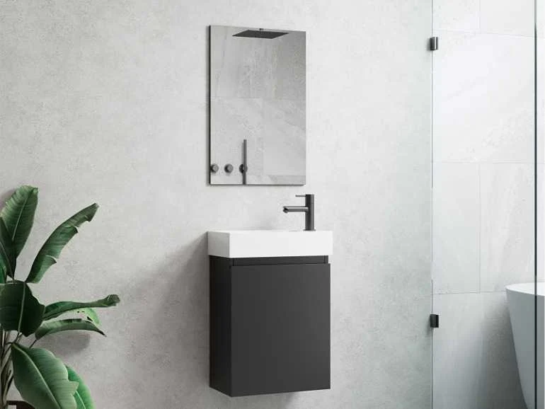 40cm Toiletmeubel COMO40 - 04 - Kleur: mat zwart- Met wastafel - Afm. B40xH60xD22CM - Deur voorzien van Softclose systeem - Spiegel 40x70cm- kraan, krepin en sifon niet inbegrepen No Merk: Lavinno Model: Como 40-04 Hoogte: 60cm Lengte: 40cm Breedte: 22cm Kleur: Mat Zwart Spiegel: 40x70cm Softclose: true