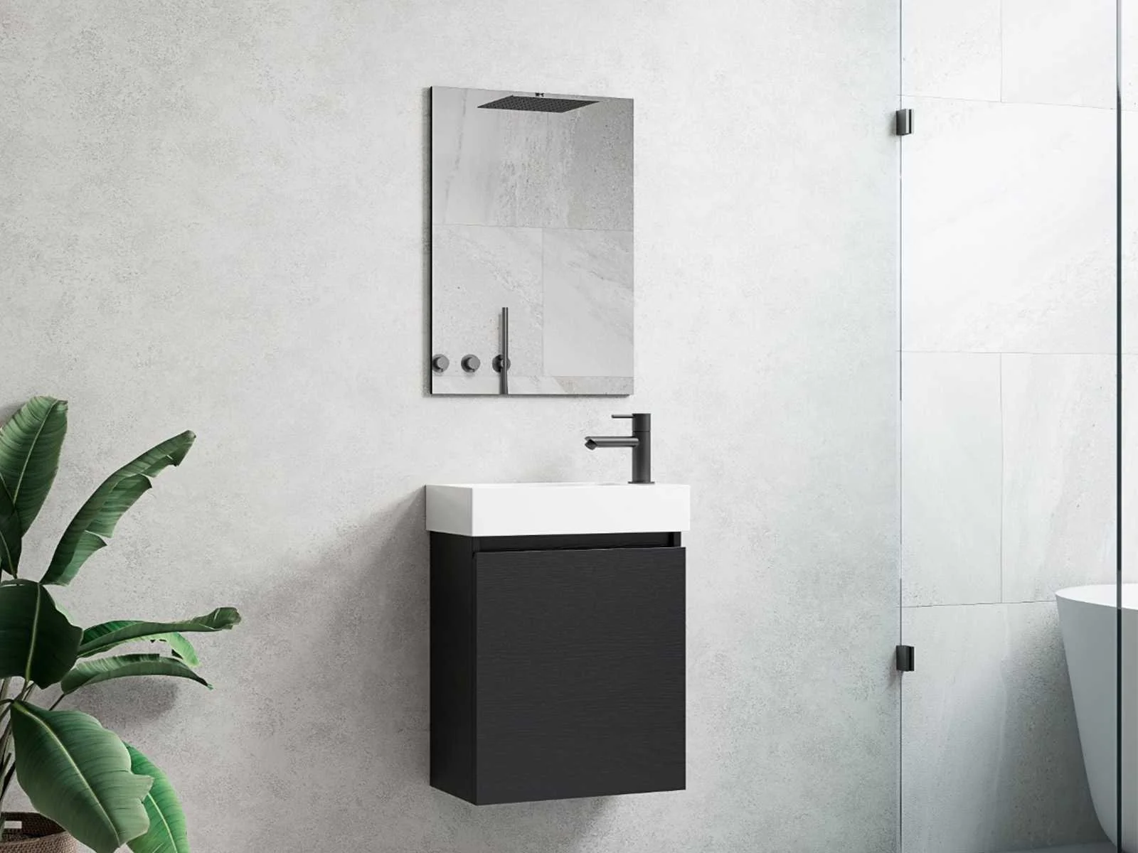 Melamine - Met wastafel - Afm. B40xH60xD22CM - Deur voorzien van Softclose systeem - Spiegel 40x70cm- kraan, krepin en sifon niet inbegrepen No Merk: Lavinno Model: Como 40-06 Hoogte: 60cm Lengte: 40cm Breedte: 22cm Kleur: Zwar Eik Spiegel: 40x70cm Softclose: true