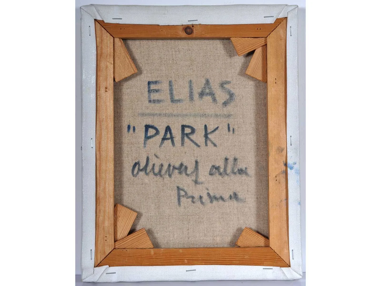 Origineel werk van Etienne Elias - gesigneerd linksonder + verso gesigneerd en betiteld Nee Kunstenaar: Etienne Elias (Ooostende 1936-2007) Titel van werk: Park Techniek: olie op doek Handtekening/oplage: true Gesigneerd: gesigneerd Hoogte: 30cm Breedte: 25cm Frame: false