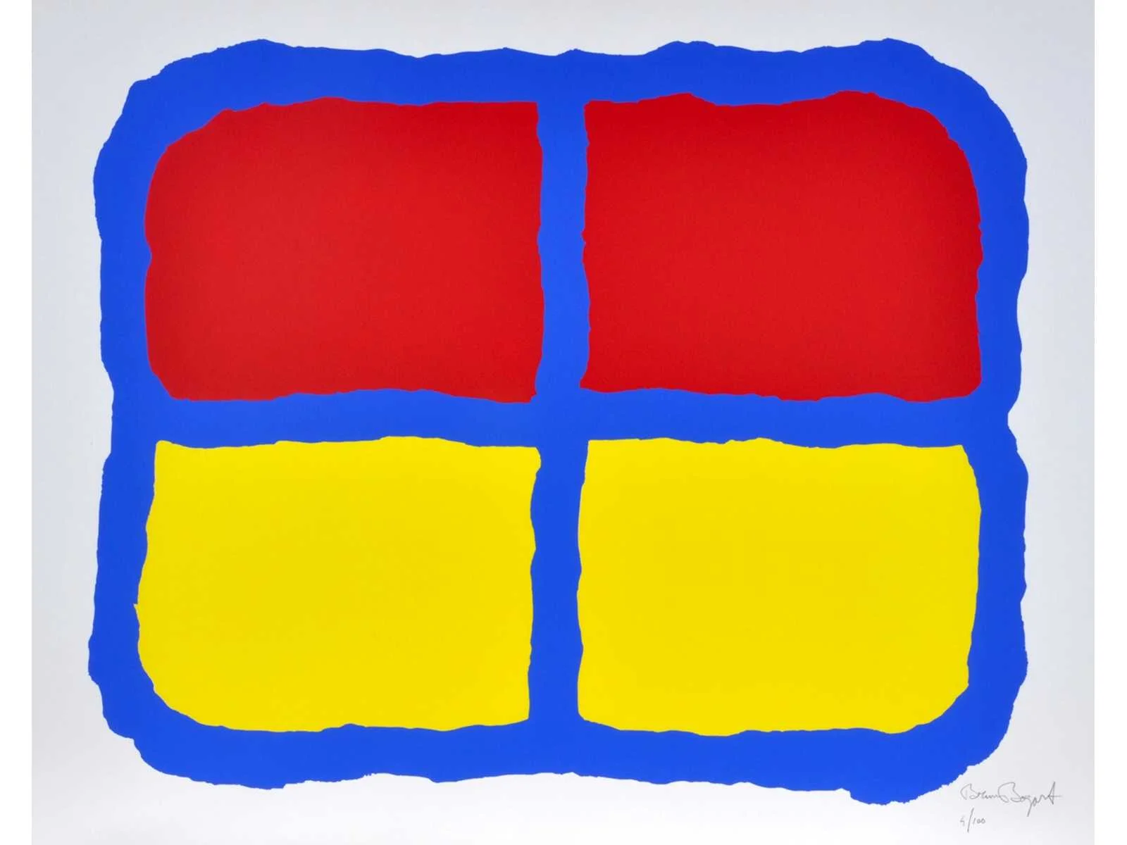 Drukatelier: Beka-Screen, Ekeren - Uitgever: Lions Club, Antwerpen-Zuid - Nooit ingelijst geweest en altijd zorgvuldig bewaard in een grafiekmap - uitstekende staat Nee Kunstenaar: Bram Bogart (1921-2012) Titel van werk: Rood en geel in blauw Periode: 1975 Techniek: kleurenzeefdruk Handtekening/oplage: true Oplage: 4/100 Gesigneerd: Gesigneerd en genummerd Hoogte: 50cm Breedte: 70cm