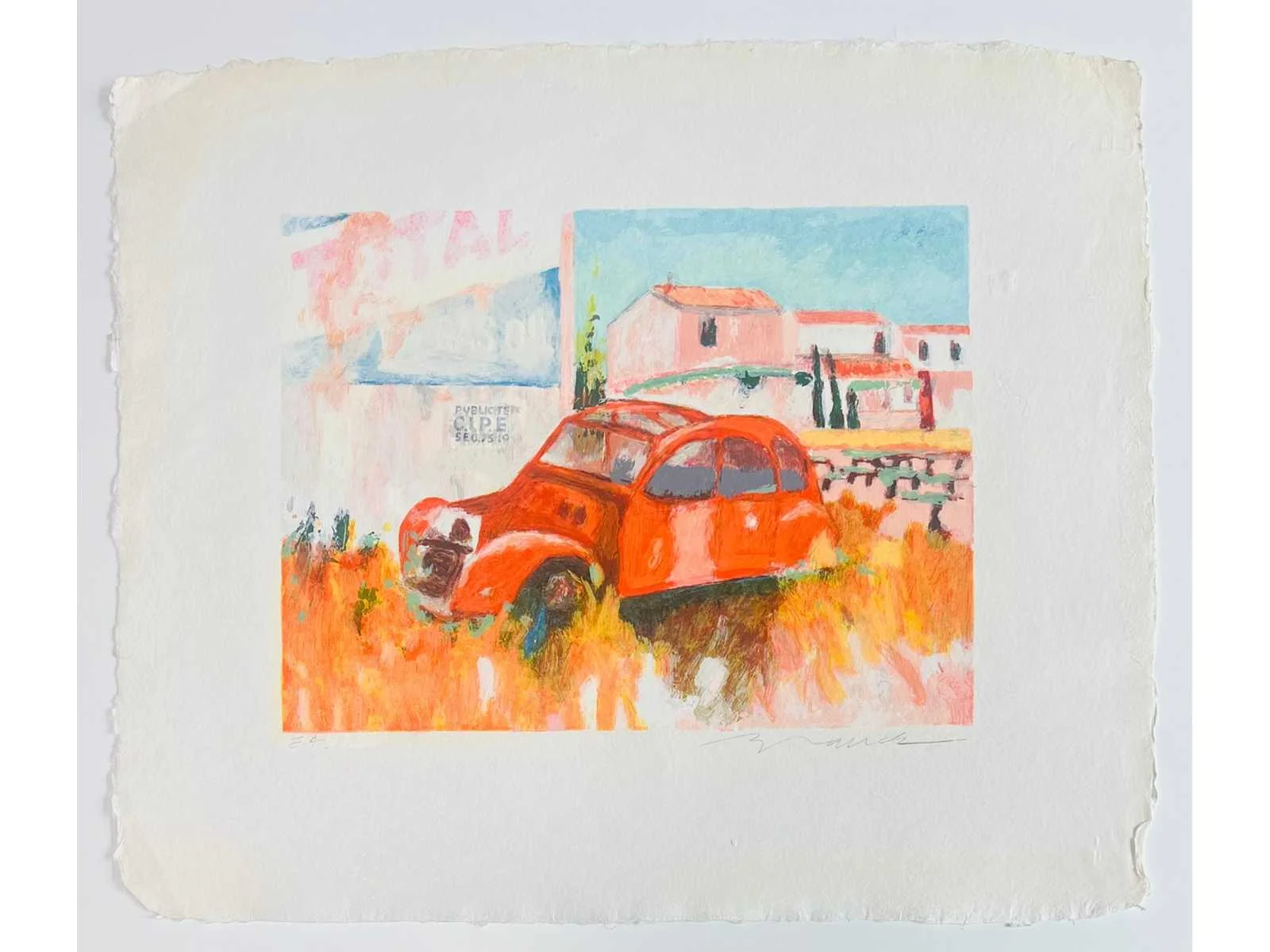 Mooie kleurenzeefdruk op stevig geschept papier - zeldzaam kunstenaarsexemplaar (épreuve d'artiste) No Kunstenaar: Willem Brauck (Vlaardingen 1946-2014) Titel van werk: 2CV Periode: 2004 Techniek: kleurenzeefdruk Handtekening/oplage: true Oplage: EA Gesigneerd: getekend Hoogte: 50cm Breedte: 60cm