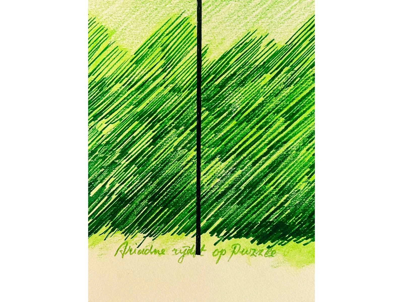 Adriaan de kruijff - ariadne rijdt op puzzle - tekening in gemengde techniek