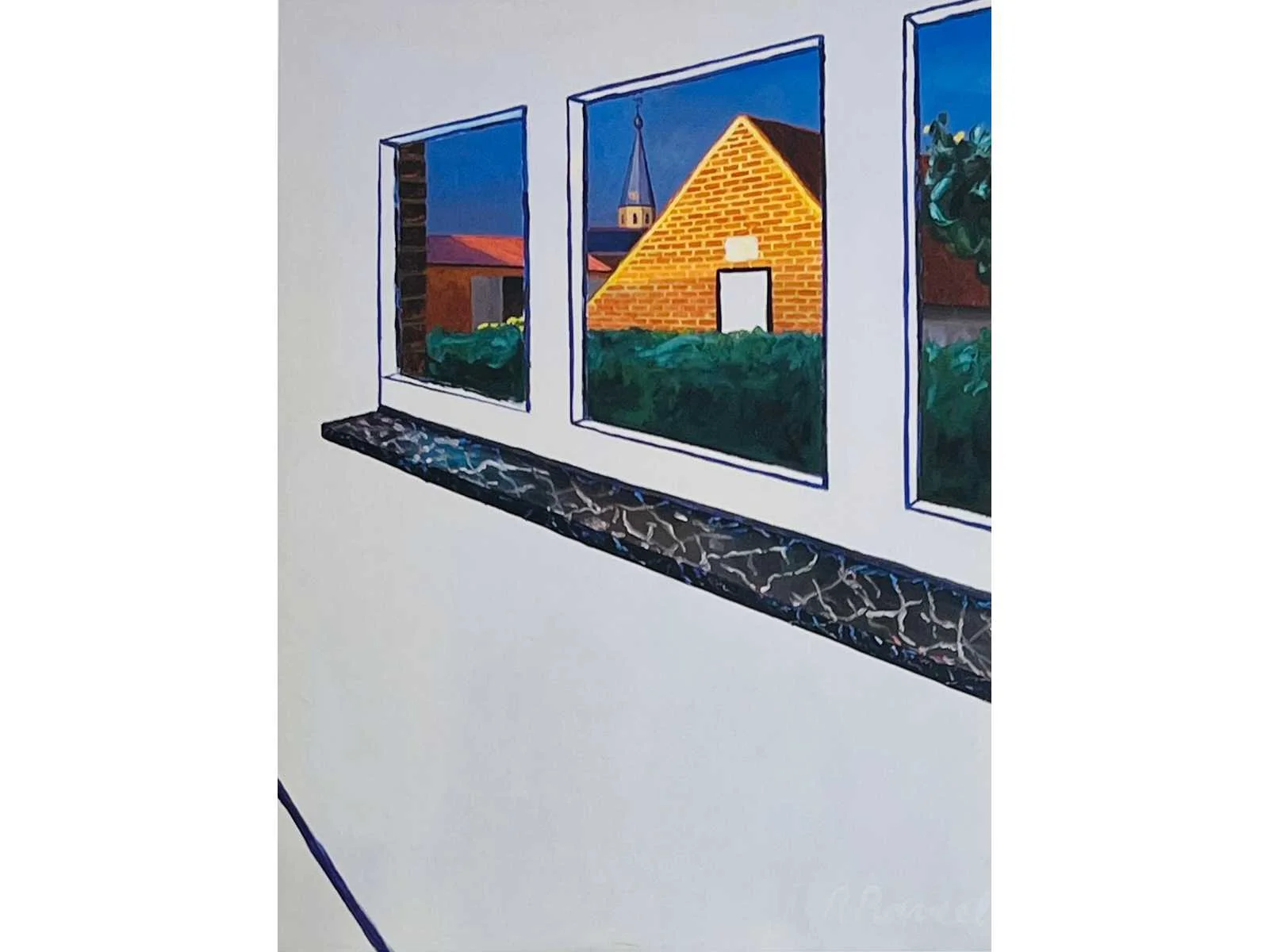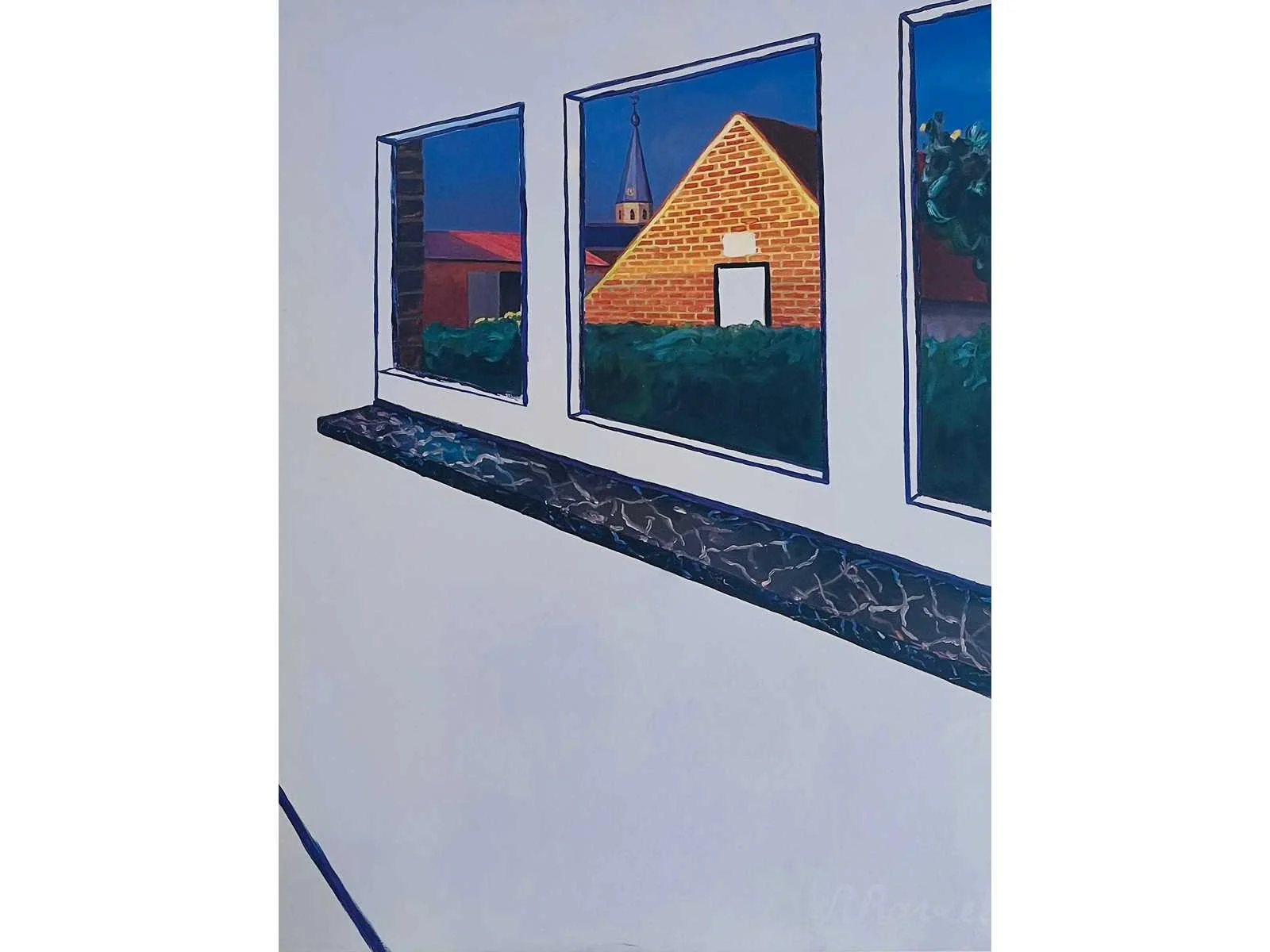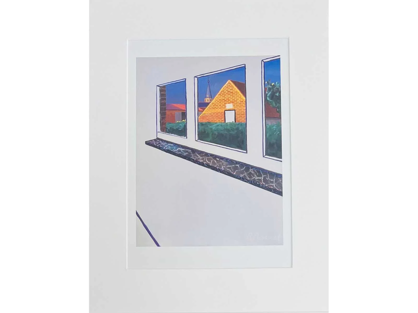 Uitgebracht op 500 exemplaren ter gelegenheid van de tentoonstelling "De Wereld van Roger Raveel" in de lokettenzaal van het Vlaams Parlement te Brussel – ingelijst met passe-partout (30x40 cm) No Kunstenaar: Roger Raveel Titel van werk: Doorkijk met Machelenkerk Techniek: offset Oplage: 500 Hoogte: 40cm Breedte: 30cm Frame: true