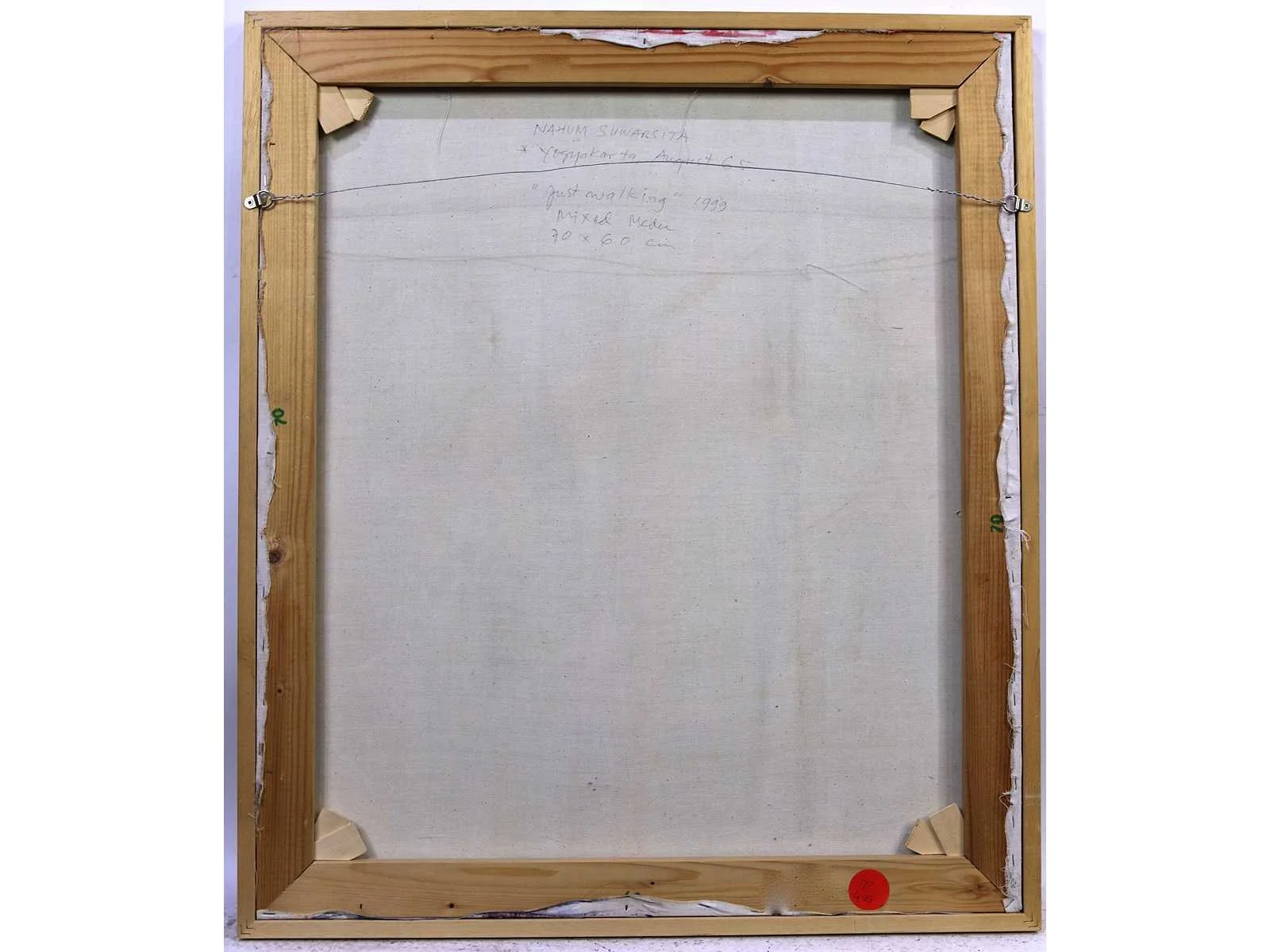 Nee Kunstenaar: Nahum Suwarsita (1965) Titel van werk: Just Walking Datering: 1999 Techniek: Gemengde techniek op doek Handtekening/oplage: false Oplage: Origineel Gesigneerd: gesigneerd en gedateerd Hoogte: 70cm Breedte: 60cm Hoogte incl. lijst: 73cm Breedte incl. lijst: 63cm Frame: true