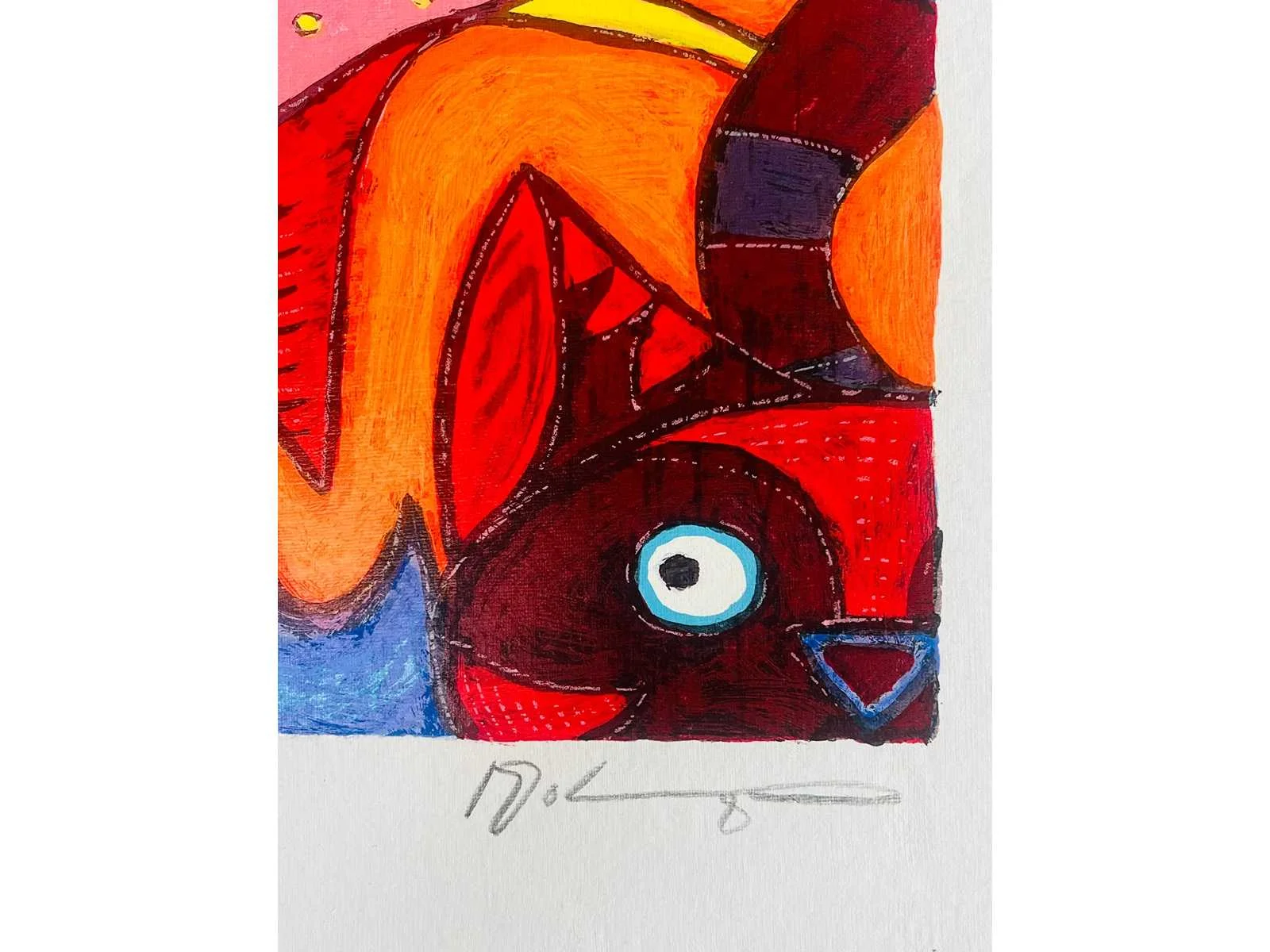 Kleurenzeefdruk op geschept papier - één van de 45 zeldzame kunstenaarsexemplaren EA (épreuve d'artiste) No Kunstenaar: Michiel Molenaar (Den Haag 1963) Techniek: kleurenzeefdruk Handtekening/oplage: true Oplage: EA 45 Gesigneerd: getekend Hoogte: 60cm Breedte: 50cm