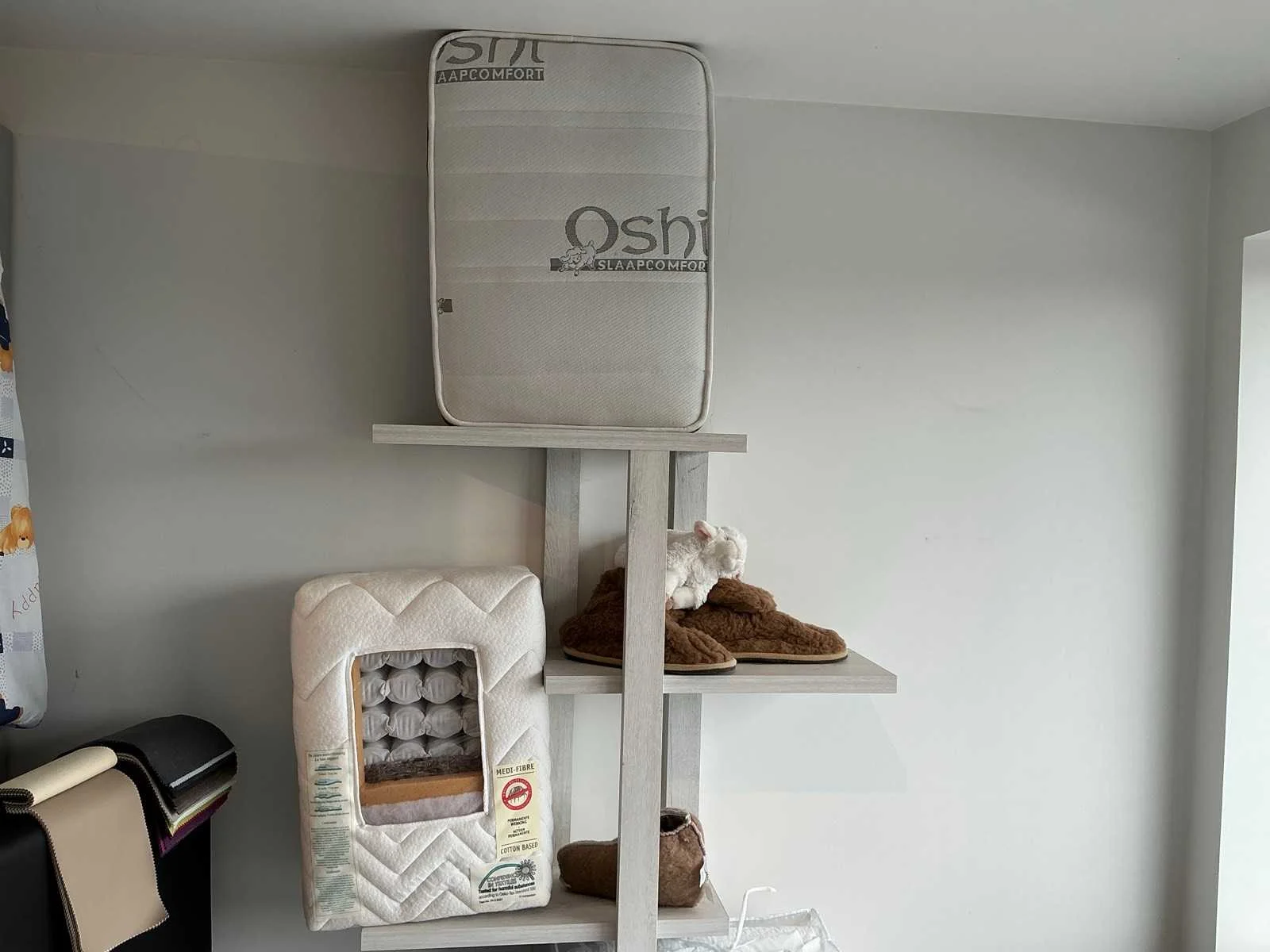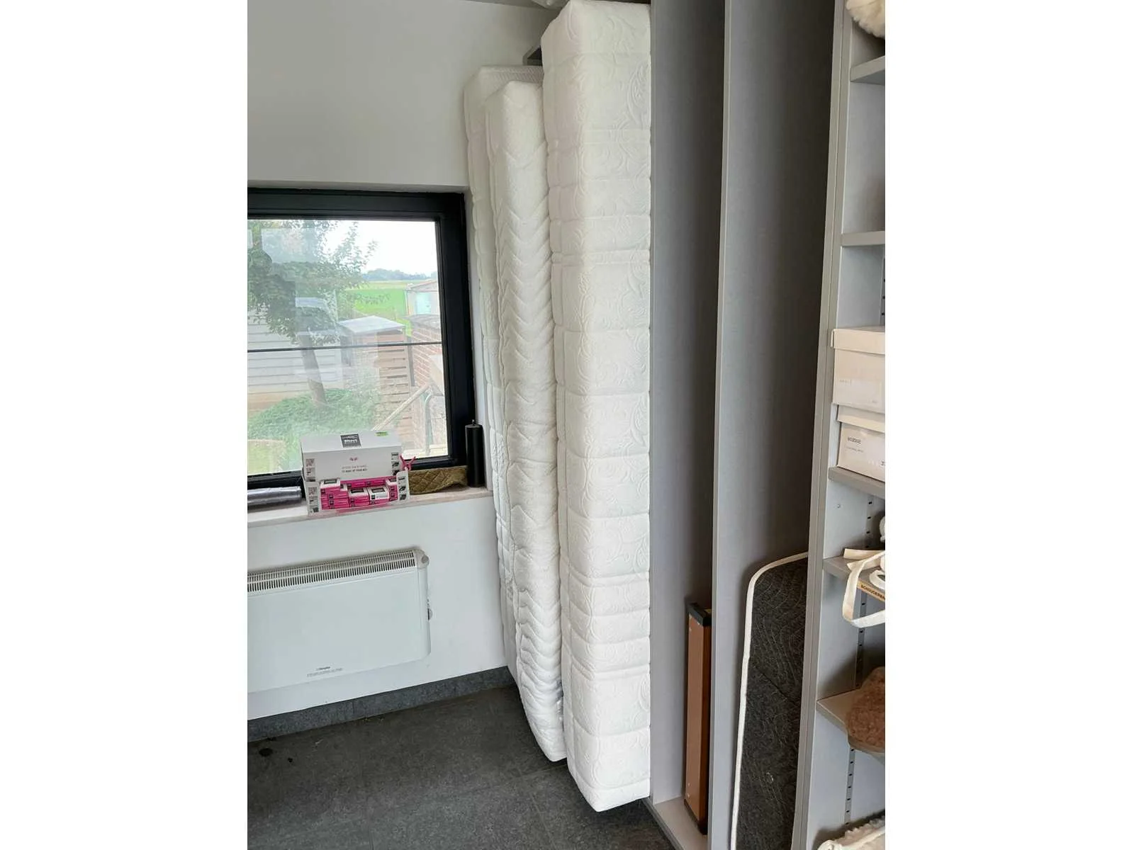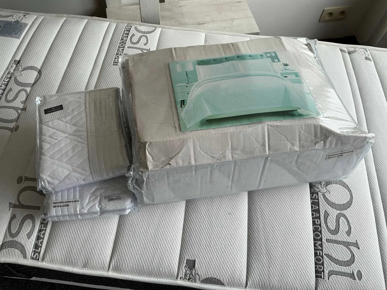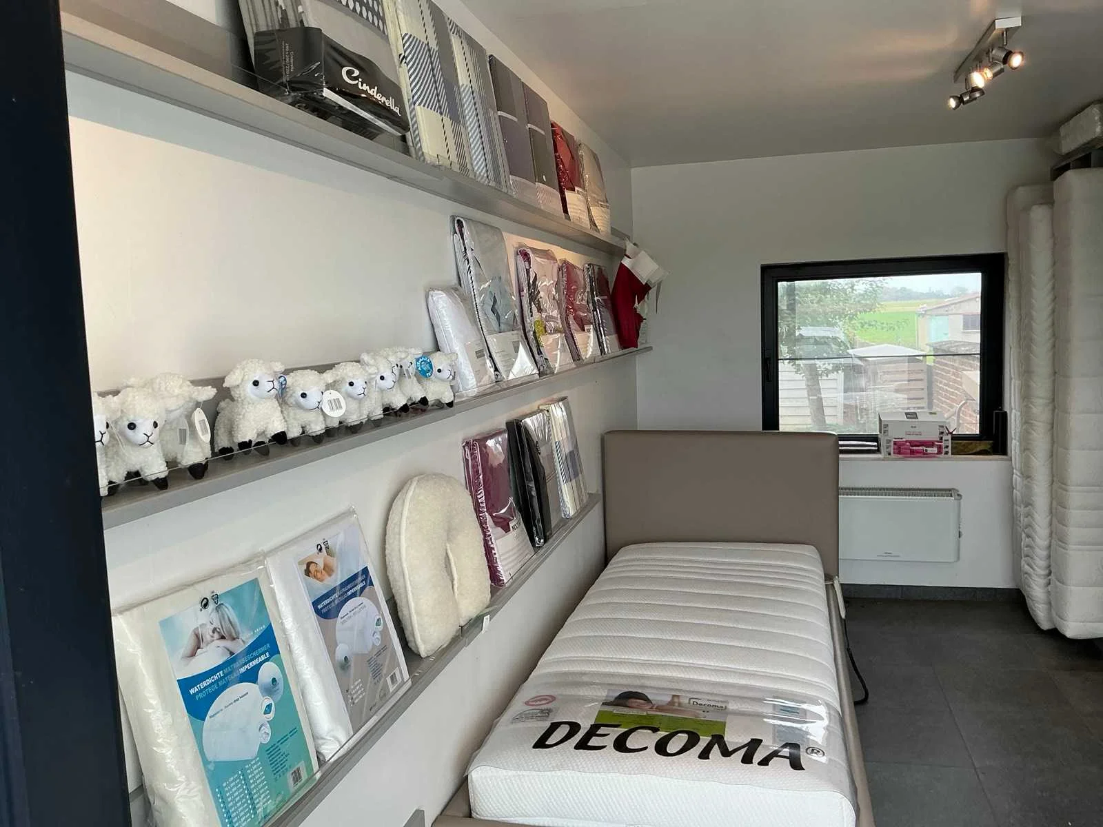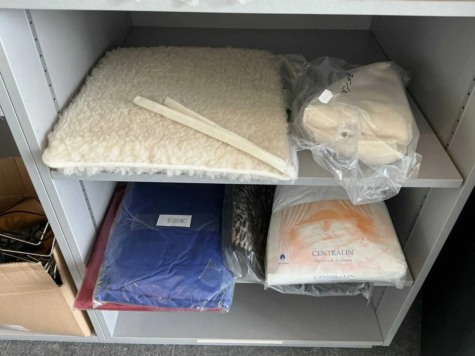 Inhoud winkel: 1 boxspring 200cmx80cm, 1 bed met elektrische verstelbare lattenbodem 200cmx90cm, 5 diverse matrassen (1 persoon), 14 dekbedovertrekken in diverse maten en kwaliteiten, 29 hoeslakens in diverse maten en kleuren, 1 dekbed met kussenslopen, 2 matrasbeschermers, 9 paar diverse pantoffels in diverse maten, partij diverse artikelen in wol waaronder schouderbanden, nekbanden, kussens, partij samples van matrassen, doos sheet buddy. No