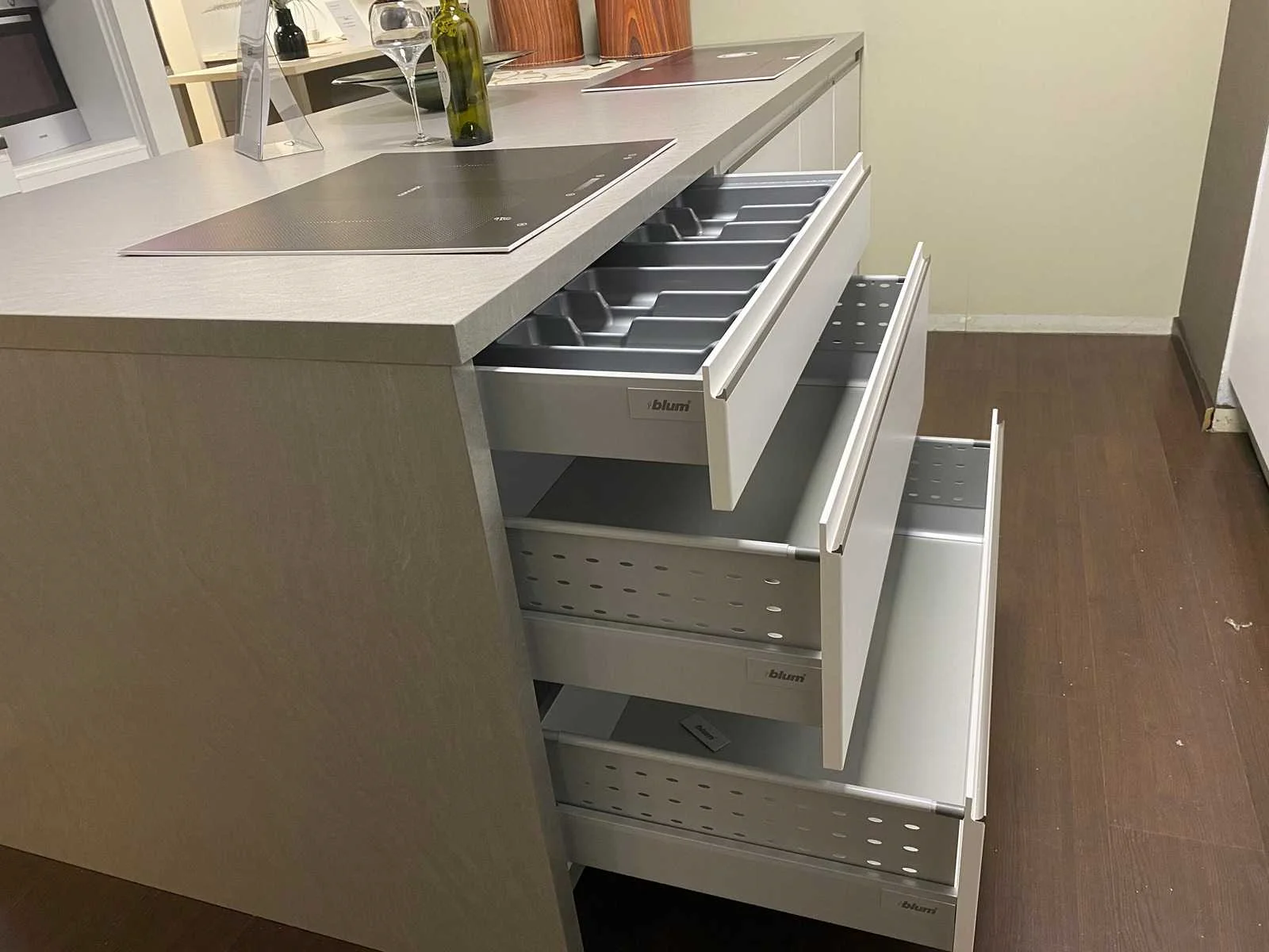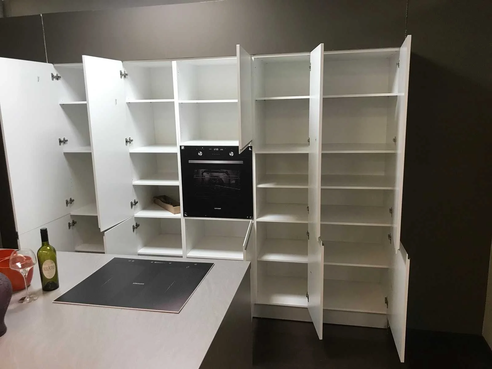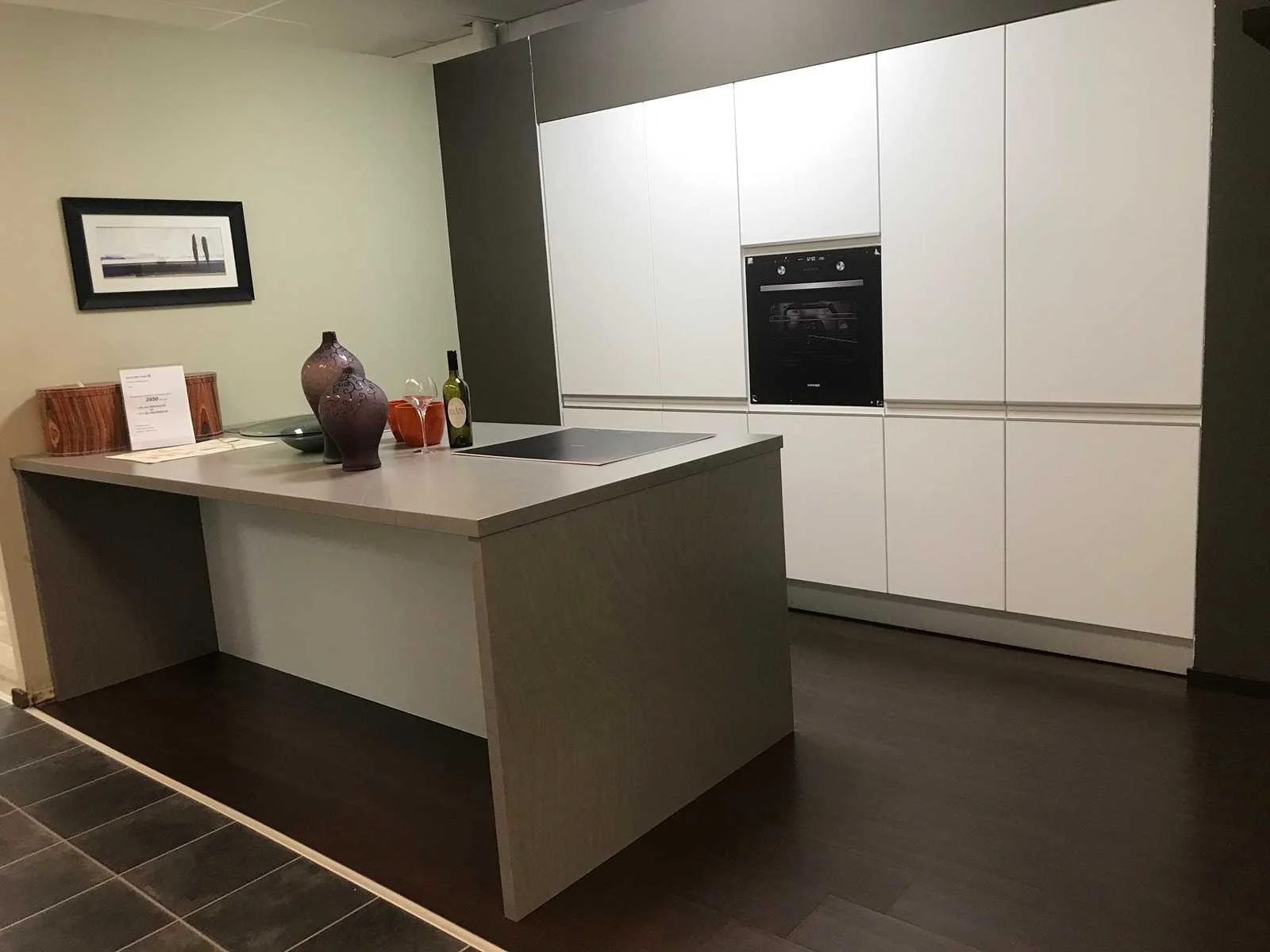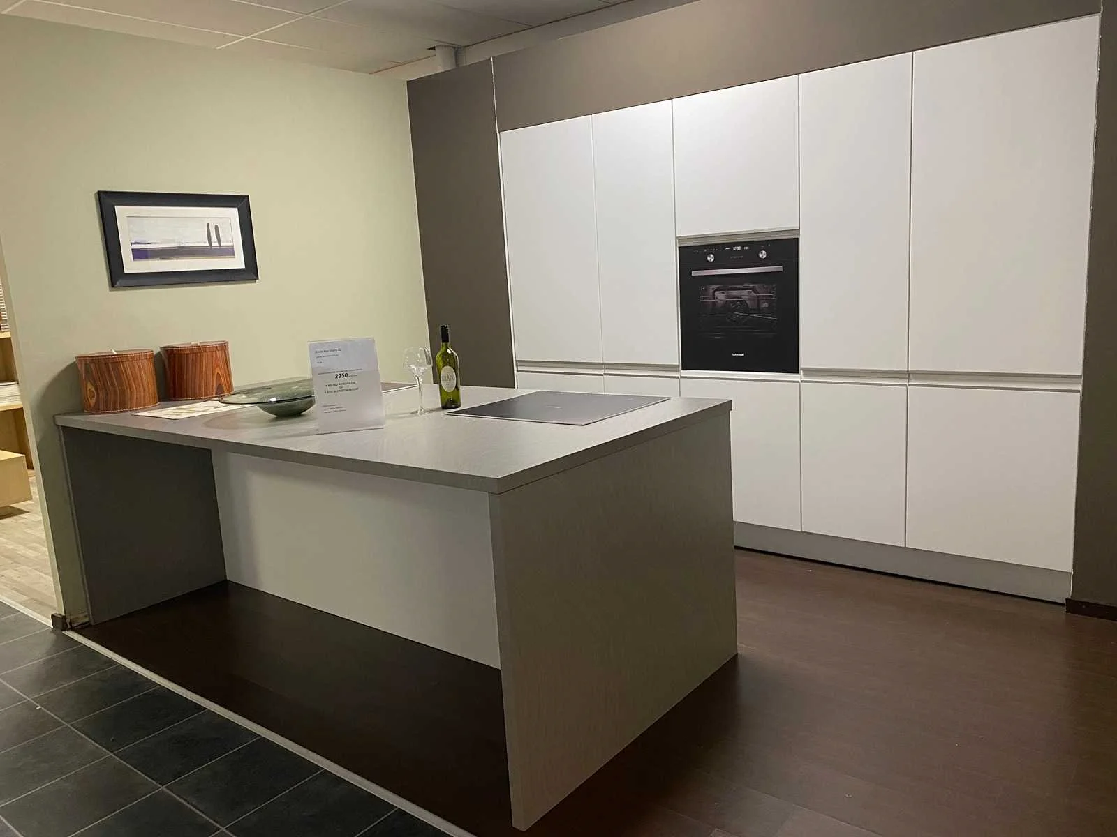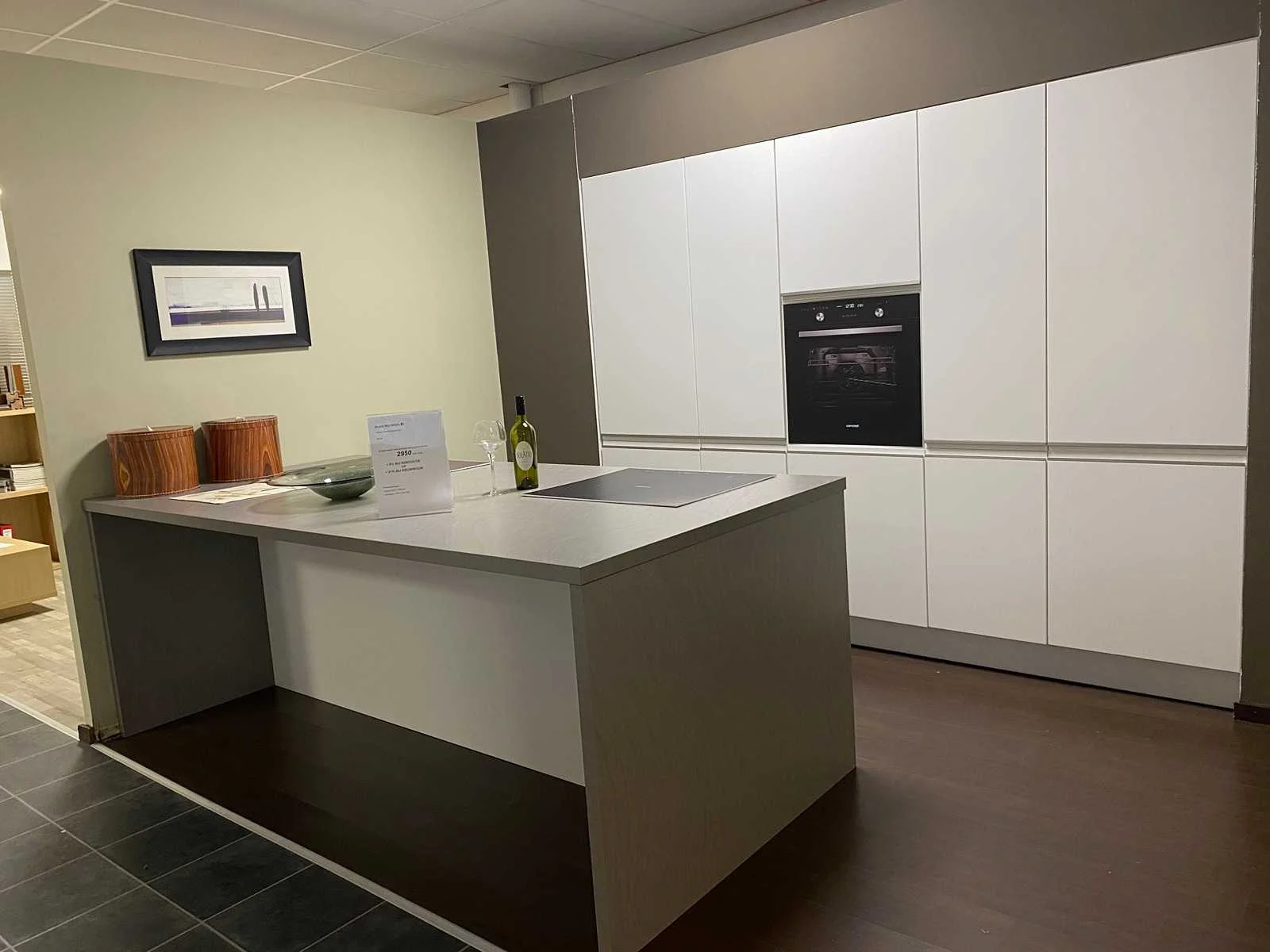 Toonzaalkeuken expo 26 in bouwpakket: Bestaande uit kook-/werkeiland, ingebouwde wandkast. Voorzien van: - Formica werkblad, dikte 38 mm, - Deuren en laden in MDF met laminaat 19mm - Soft close sluitingen, Totale afmetingen: - Eiland: 2475 x 1200 mm - Wandkast : 2700 x 2115 mm. Zonder keukentoestellen, decoratie, verlichting, barstoelen en kookgerei. Inclusief: plinten, plinthouders, verstelbare pootjes, softclose SAMET scharnieren, deurtjes 19mm, kasten 16mm, werkblad 38mm, roestvrijstaal handvaten. Elke kast is apart dus de opstelling kan gemakkelijk aangepast worden, werkblad is niet uitgezaagd dus de koper kan zelf bepalen waar de kookplaat en spoelbak wordt geplatst. De keukens zijn eenvoudig zelf te monteren. Hier vind je links naar korte instructievideo’s: https://www.youtube.com/shorts/NmspbV-G1Lc https://www.youtube.com/watch?v=BRwDgCH20cs https://www.youtube.com/watch?v=E2Invr5EQtY Je kan de modellen bekijken tijdens de kijkdag of 24/7 in onze kleine showroom met camerabewaking: Rode Akkers 4, 2460 Kasterlee (laatste gebouw links, eerste verdieping). Nee