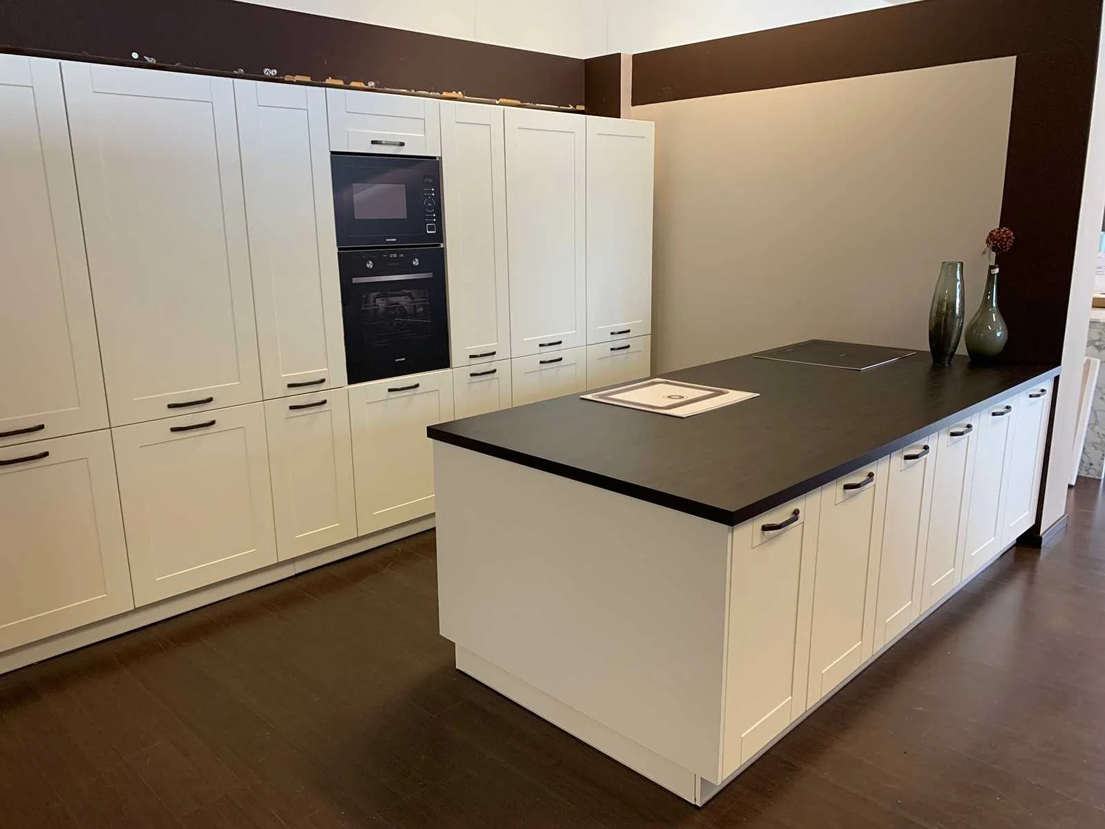 Toonzaalkeuken EXPO 30 WIT in BOUWPAKKET: Bestaande uit kook-/werkeiland, ingemaakte kast. Voorzien van: - Formica werkblad, dikte 38 mm, - Deuren en laden in MDF met afgerond laminaat 19mm, - Soft close sluitingen, Totale afmetingen: - Eiland: 1200 x 2648 mm, - Inbouwkast: 3815 x H 2066 mm, Zonder keukentoestellen, decoratie, verlichting, barstoelen en kookgerei. Inclusief: plinten, plinthouders, verstelbare pootjes, softclose SAMET scharnieren, deurtjes 19mm, kasten 16mm, werkblad 38mm, handvaten. Elke kast is apart dus de opstelling kan gemakkelijk aangepast worden, werkblad is niet uitgezaagd dus de koper kan zelf bepalen waar de kookplaat en spoelbak wordt geplatst. Gemakelijk om te monteren met montage-instructies De keukens zijn eenvoudig zelf te monteren. Hier vind je links naar korte instructievideo’s: https://www.youtube.com/shorts/NmspbV-G1Lc https://www.youtube.com/watch?v=BRwDgCH20cs https://www.youtube.com/watch?v=E2Invr5EQtY Je kan de modellen bekijken tijdens de kijkdag of 24/7 in onze kleine showroom met camerabewaking: Rode Akkers 4, 2460 Kasterlee (laatste gebouw links, eerste verdieping). Nee