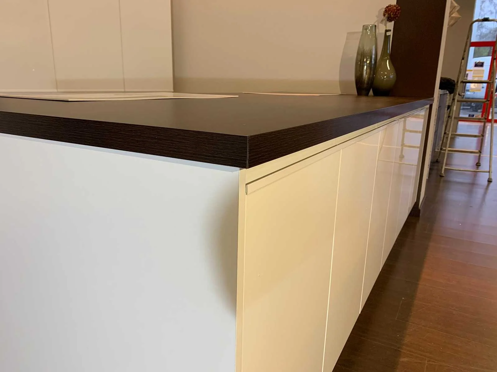 Toonzaalkeuken EXPO 3 WIT Hoogglans in BOUWPAKKET: Bestaande uit kook-/werkeiland, ingemaakte kast. Voorzien van: - Formica werkblad, dikte 38 mm, - Deuren en laden in MDF met afgerond laminaat 19mm, - Soft close sluitingen, Totale afmetingen: - Eiland: 1200 x 2648 mm, - Inbouwkast: 3815 x H 2066 mm, Zonder keukentoestellen, decoratie, verlichting, barstoelen en kookgerei. Inclusief: plinten, plinthouders, verstelbare pootjes, softclose SAMET scharnieren, deurtjes 19mm, kasten 16mm, werkblad 38mm, handvaten. Elke kast is apart dus de opstelling kan gemakkelijk aangepast worden, werkblad is niet uitgezaagd dus de koper kan zelf bepalen waar de kookplaat en spoelbak wordt geplatst. Gemakelijk om te monteren met montage-instructies De keukens zijn eenvoudig zelf te monteren. Hier vind je links naar korte instructievideo’s: https://www.youtube.com/shorts/NmspbV-G1Lc https://www.youtube.com/watch?v=BRwDgCH20cs https://www.youtube.com/watch?v=E2Invr5EQtY Je kan de modellen bekijken tijdens de kijkdag of 24/7 in onze kleine showroom met camerabewaking: Rode Akkers 4, 2460 Kasterlee (laatste gebouw links, eerste verdieping). Nee