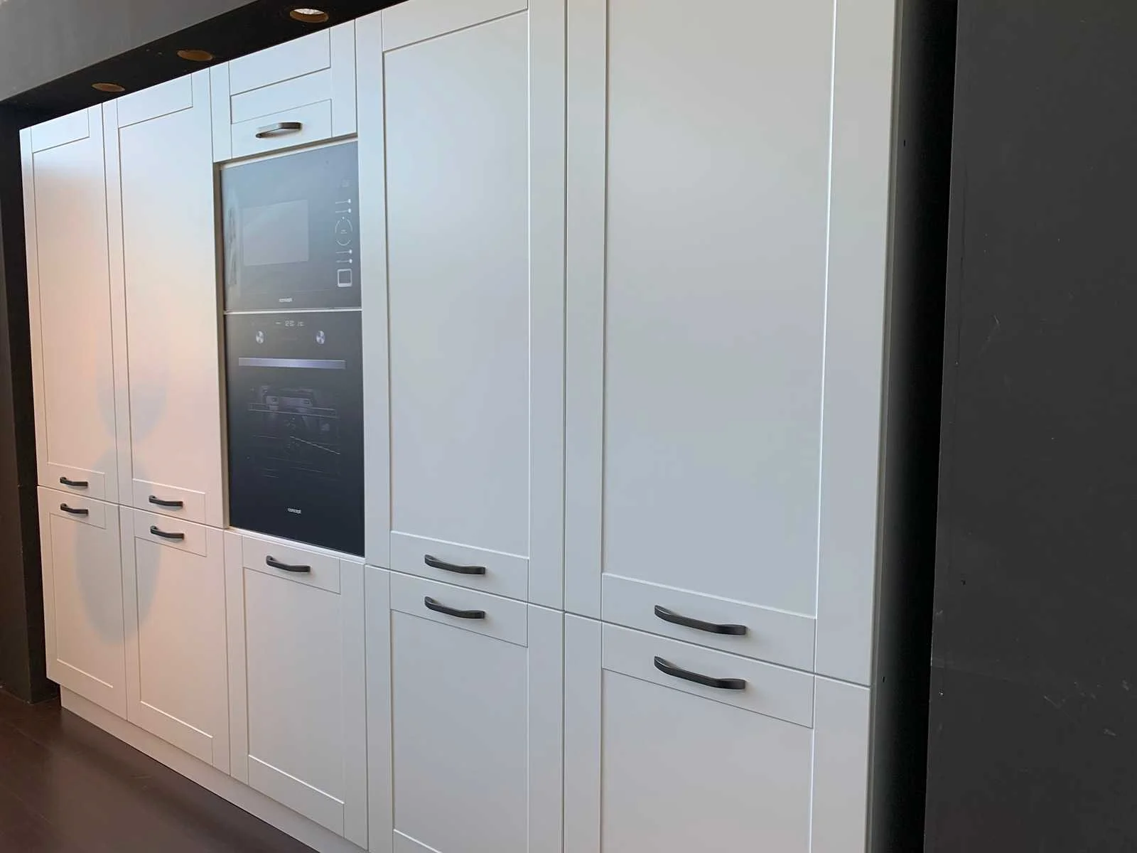 Toonzaalkeuken expo 40 wit IN BOUWPAKKET: Bestaande uit kook-/werkeiland, ingemaakte kast. Voorzien van: - Formica werkblad, dikte 38 mm, - Deuren en laden in MDF met afgerond laminaat 19mm, - Soft close sluitingen, Totale afmetingen: - Eiland: 1000 x 2648 mm, - Inbouwkast: 3000 x H 2066 mm, Zonder keukentoestellen, decoratie, verlichting, barstoelen en kookgerei. Inclusief: plinten, plinthouders, verstelbare pootjes, softclose SAMET scharnieren, deurtjes 19mm, kasten 16mm, werkblad 38mm, roestvrijstaal handvaten. Elke kast is apart dus de opstelling kan gemakkelijk aangepast worden, werkblad is niet uitgezaagd dus de koper kan zelf bepalen waar de kookplaat en spoelbak wordt geplatst. De keukens zijn eenvoudig zelf te monteren. Hier vind je links naar korte instructievideo’s: https://www.youtube.com/shorts/NmspbV-G1Lc https://www.youtube.com/watch?v=BRwDgCH20cs https://www.youtube.com/watch?v=E2Invr5EQtY Je kan de modellen bekijken tijdens de kijkdag of 24/7 in onze kleine showroom met camerabewaking: Rode Akkers 4, 2460 Kasterlee (laatste gebouw links, eerste verdieping). Nee