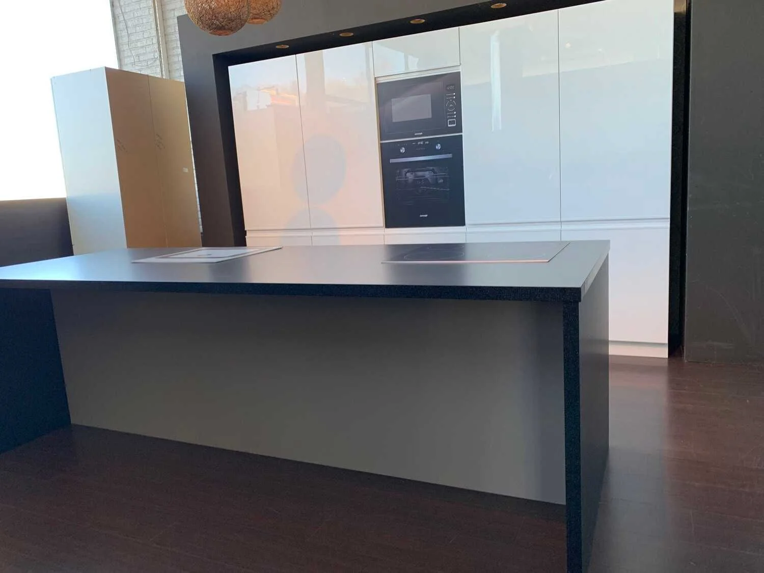 Toonzaalkeuken expo 42 sole white IN BOUWPAKKET: Bestaande uit kook-/werkeiland, ingemaakte kast. Voorzien van: - Formica werkblad, dikte 38 mm, - Deuren en laden in MDF met afgerond laminaat 19mm, - Soft close sluitingen, Totale afmetingen: - Eiland: 1000 x 2648 mm, - Inbouwkast: 3000 x H 2066 mm, Zonder keukentoestellen, decoratie, verlichting, barstoelen en kookgerei. Inclusief: plinten, plinthouders, verstelbare pootjes, softclose SAMET scharnieren, deurtjes 19mm, kasten 16mm, werkblad 38mm, roestvrijstaal handvaten. Elke kast is apart dus de opstelling kan gemakkelijk aangepast worden, werkblad is niet uitgezaagd dus de koper kan zelf bepalen waar de kookplaat en spoelbak wordt geplatst. De keukens zijn eenvoudig zelf te monteren. Hier vind je links naar korte instructievideo’s: https://www.youtube.com/shorts/NmspbV-G1Lc https://www.youtube.com/watch?v=BRwDgCH20cs https://www.youtube.com/watch?v=E2Invr5EQtY Je kan de modellen bekijken tijdens de kijkdag of 24/7 in onze kleine showroom met camerabewaking: Rode Akkers 4, 2460 Kasterlee (laatste gebouw links, eerste verdieping). Nee