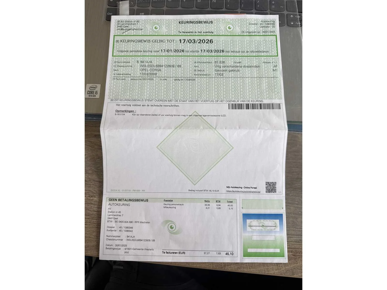 1 STE EIGENAAR PERFECTE STAAT PAPIEREN AANWEZIG Nee Merk: OPEL Model: CORSA Bouwjaar: 2009 Afgelezen kilometerstand: 82000km Cilinderinhoud: 1364cc Vermogen (kW): 66kW Brandstof: BENZINE Chassisnummer: W0L0SDL6894122609 Datum eerste toelating: 17-03-2009 Kleur: BLAUW Transmissie: MANUEEL Aantal deuren: 5 Aantal sleutels: 1 Aantal cilinders: 4 Nationaliteit documenten: BELGIE Onderhoudshistorie: COMPLEET Gelijkvormigheidsattest aanwezig: true Carpass: true Start en rijdt: JA Andere boorddocumenten: COMPLEET startinformatie : JA Inschrijvingsbewijs - deel 1 : AANWEZIG Inschrijvingsbewijs - deel 2: AANWEZIG