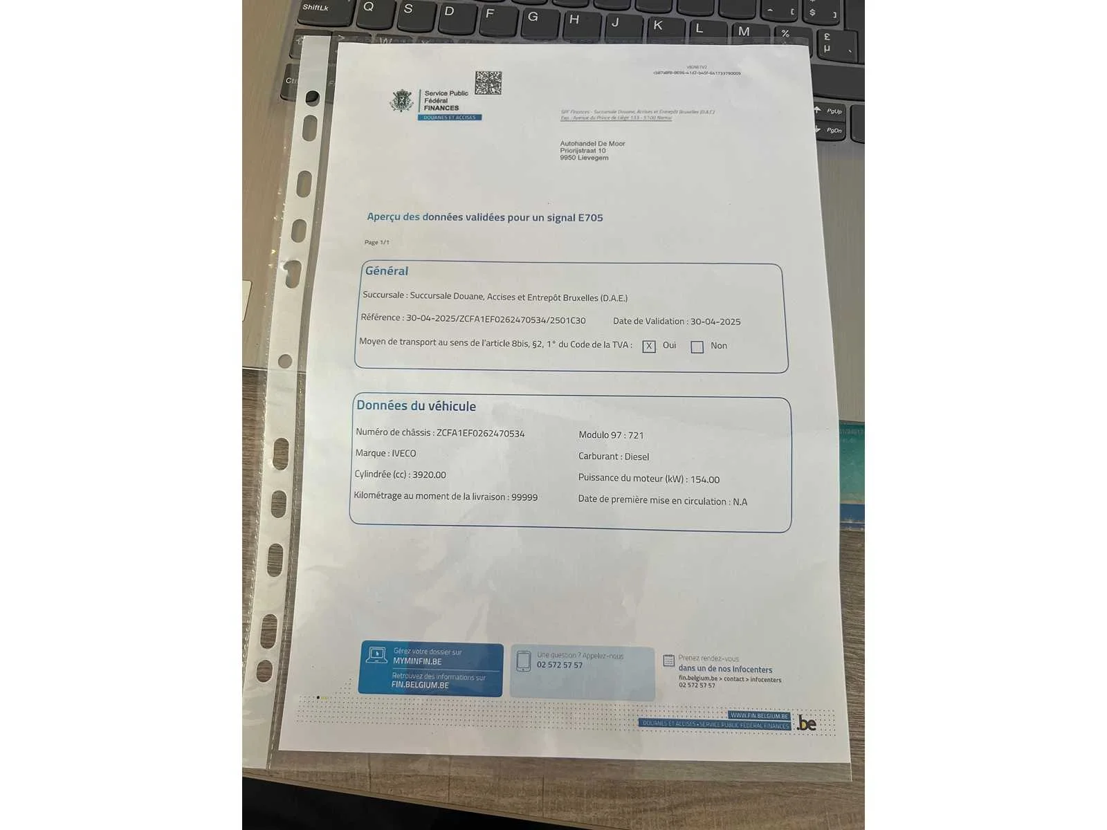 NIEUWE SLEUTEL MOET NOG GEPROGRAMEERD WORDEN WAGEN START WEL MET STARTPILOT EN BLIJFT DAAR OP DRAAIEN BOORDDOCUMENTEN DOAUNE E705 AANWEZIG Nee Merk: IVECO Type: 120E21 Bouwjaar: 2007 Chassisnummer VIN: ZCFA1EF0262470534 Cilinderinhoud: 3920cc Datum eerste toelating: 01-02-2007 Aantal sleutels: 1 Startinformatie: JA Nationaliteit documenten: POLEN Diesel: true