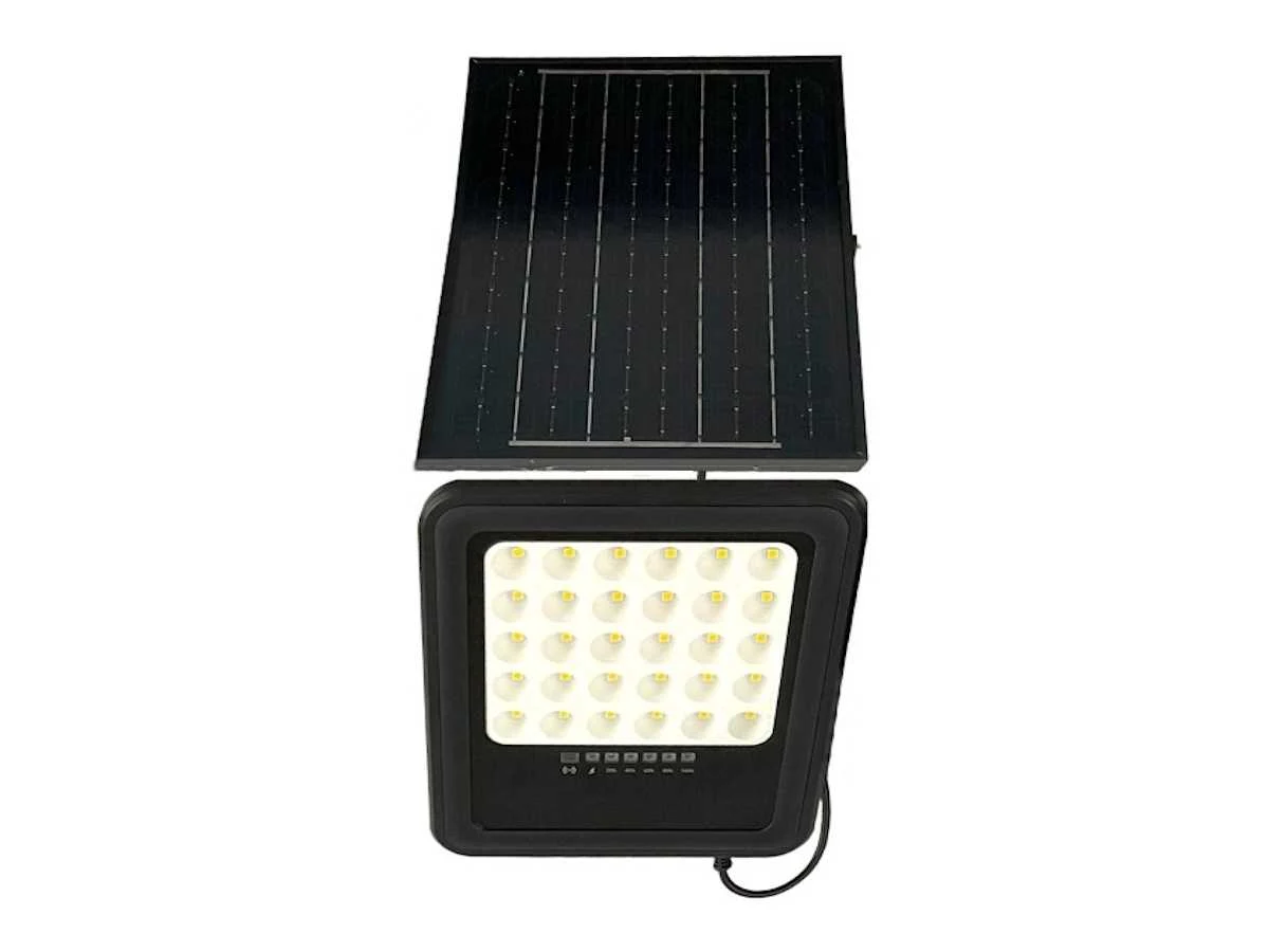 Waterdicht IP65, lichtstroom max 1000 lumen, product kleur zwart, afm 235 x 200 mm, stralingshoek 90°, aluminium behuizing en ABS, afm zonnepaneel 300 x 205mm, zonnepaneel voltage 6V, batterij 10Ah, met afstand bediening kan dimmen en timer instellen, in auto mode werkt eerst uur 100% tweede uur 80% en 60% en 50% en 30% totaal 6uur, bescherming tegen mechanische inslagen IK07, bevestiging inclusief, sku 1122S No Merk: LAMPINNO Product type: Industrieel Spanning: 6V Kleurtemperatuur: 5000KK Lichtbron: LED Dimbaar: true Kleur: Zwart Lengte: 30.0cmcm Breedte: 20.5cmcm Materiaal: Aluminium en ABS