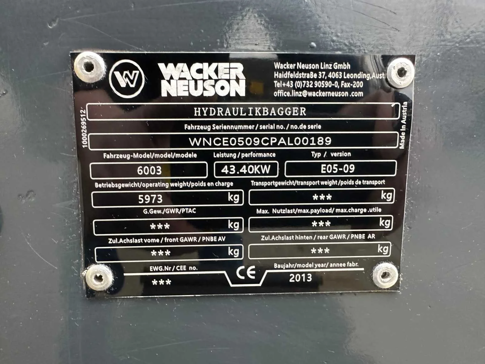 Mechanische snelwissel, Hamerleidingen Tandenbak Duwblad Rupsen met rubber pads Geen documenten Nee Merk: Wacker Neuson Type: 6003 Bouwjaar: 2013 Serienummer: PAL00189 Merk motor: Yanmar 4TNV98 Aantal cilinders: 4 Brandstof: diesel Bedrijfsgewicht: 5973kg Graafbak afm. b: 650mm Rups breedte: 400mm Afgelezen urenstand: 3911 Totale afmeting L: 5800mm Totale afmeting Breedte: 2000mm Totale afmeting Hoogte: 2600mm GS Code: 84295212