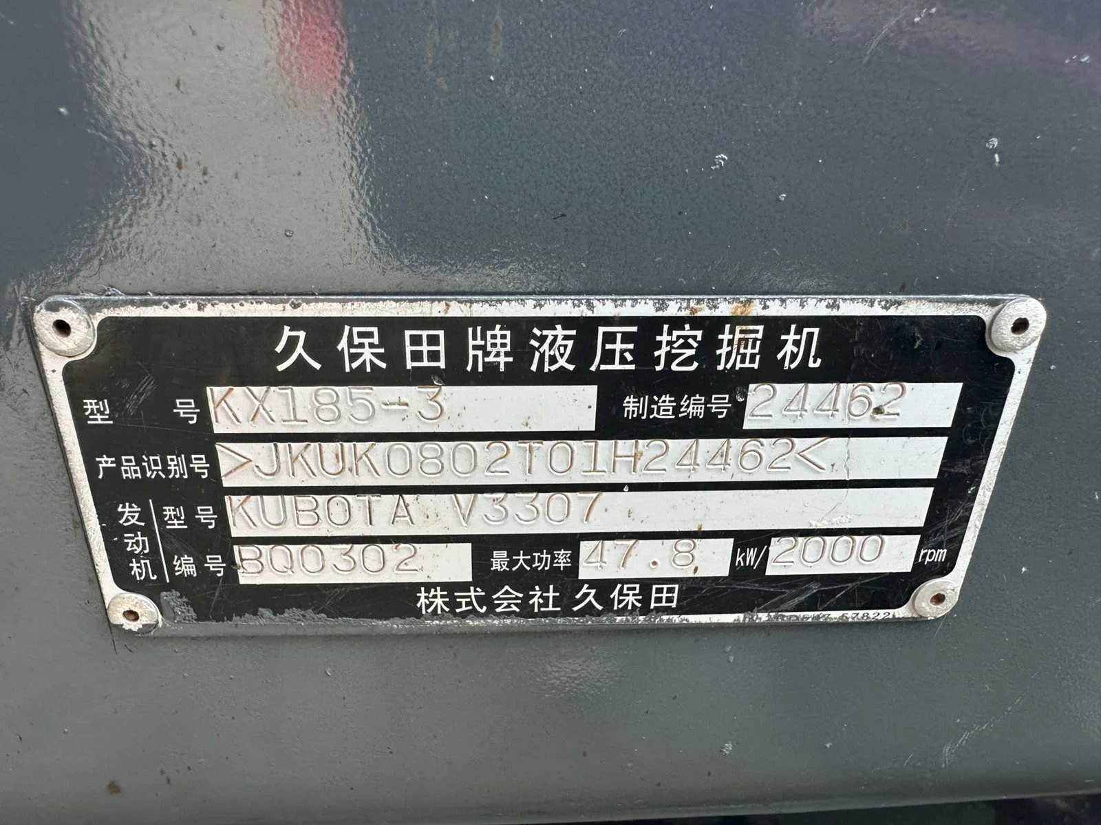 Tandenbak Duwblad Rupsen met rubber pads Geen documenten Nee Merk: Kubota Type: KX185-3 Serienummer: JKUK0802T01H24462 Merk motor: Kubota V3307 Motorvermogen (kW): 47.8kW Aantal cilinders: 4 Brandstof: Diesel Graafbak afm. b: 650mm Rups breedte: 450mm Eigen gewicht: 8265kg Totale afmeting L: 6500mm Totale afmeting Breedte: 2200mm Totale afmeting Hoogte: 2600mm GS Code: 8429521200