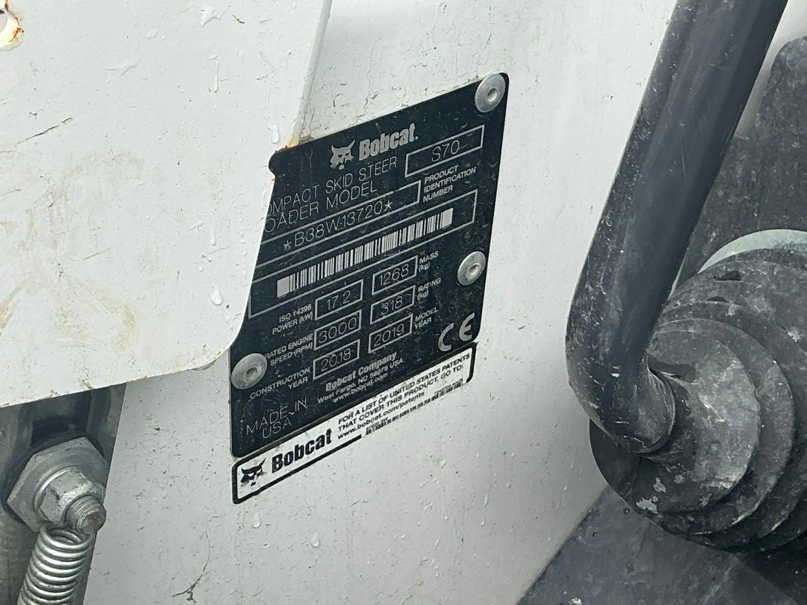 Wordt verkocht met extra mestklauw + palletvork + graafbak. Levering BE mogelijk in onderling overleg met de verkoper. Pompvermogen van 37L/m mechanische aanpik Nee Merk: BOBCAT Type: S70 Bouwjaar: 2019 Serienummer: B38W13720 Merk motor: Kubota Motorvermogen (kW): 16kW Aantal cilinders: 3 Brandstof: Diesel Bedrijfsgewicht: 1268kg Afgelezen urenstand: 245