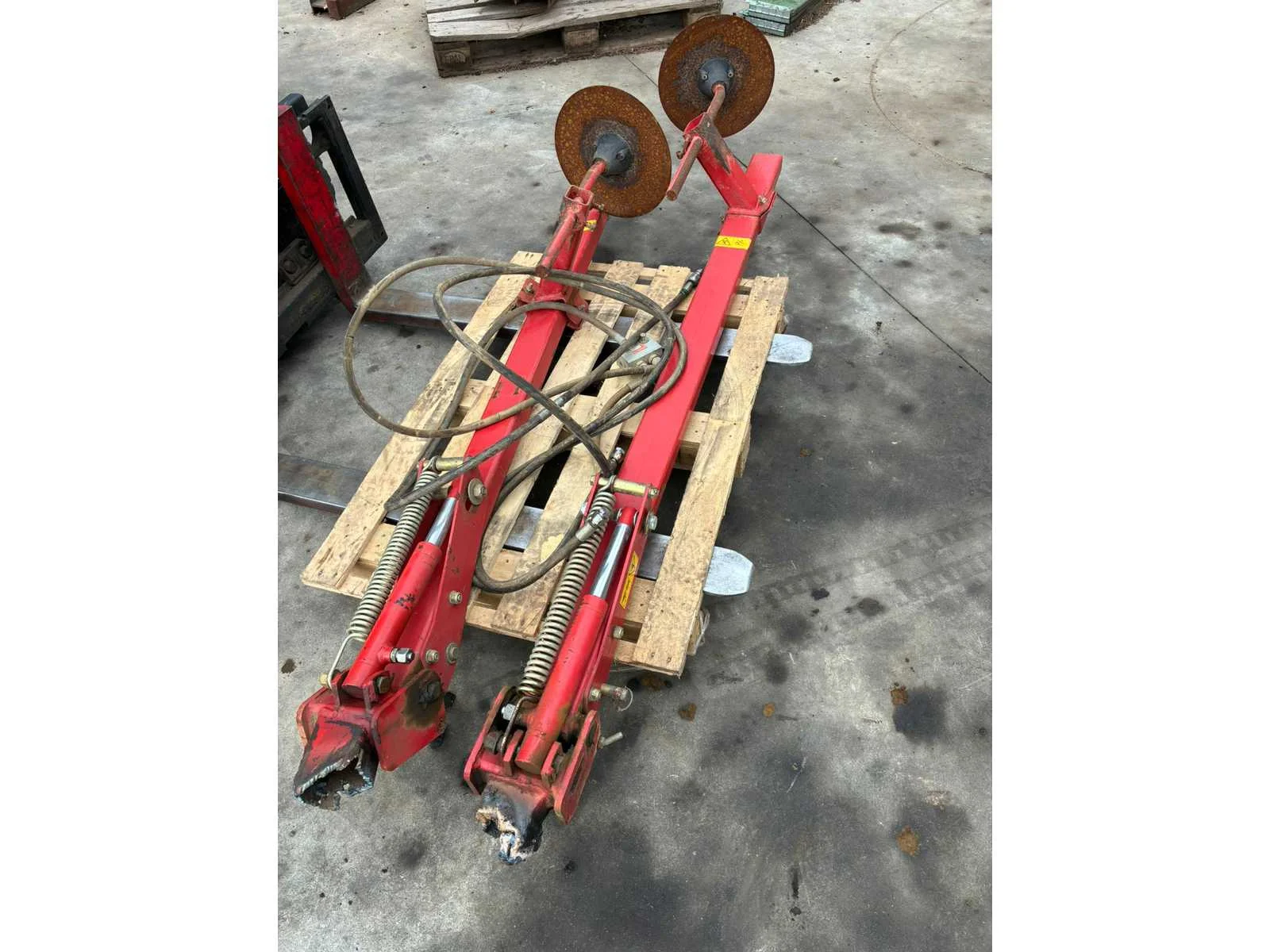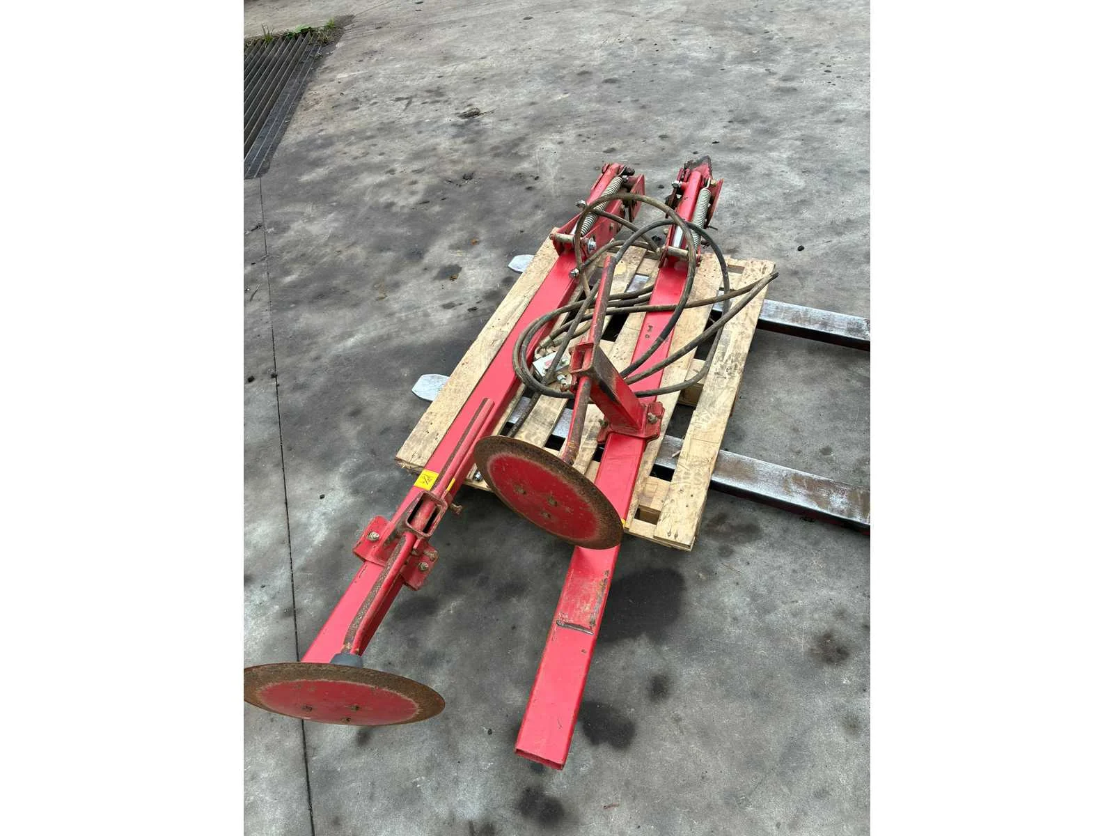 Set hydraulische markeerders afkomstig van Kverneland zaaimachine. Voorzien van hydraulische cilindertje verdelerblok. De markeerders zijn uitgerust met ronde markeerschijven en veerretour. Hydrauliekslangen met koppelingen aanwezig. Nee Merk: Kverneland Type: 38041