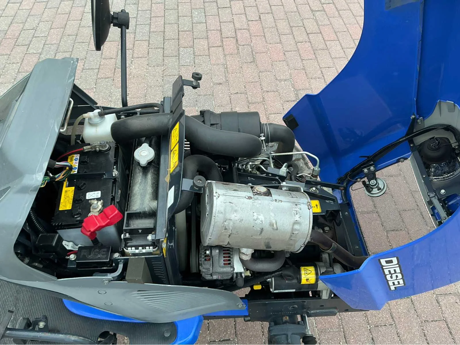 Belangrijkste kenmerken. • Motor: Iseki 3-cilinder diesel, met een vermogen van ca. 18 kW (23,7 pk). • Transmissie: Hydrostatisch (HST) met twee pedalen, waardoor eenvoudig vooruit/achteruit rijden mogelijk is zonder te schakelen. • Vierwielaandrijving: 4WD (4WD) inschakelbaar, voor betere tractie op nat of oneffen terrein. • Maximale snelheid: ca. 15 km/u. • gewicht: ca. 620 kg, zonder gereedschap eraan. • PTO's (PTO / PTO): • Achter: 540 RPM • Centrum en voorkant: 2.000 tpm • Hydraulisch: Categorie 1 driepuntshef achter, met een hefvermogen van ca. 540 kg. • Banden: typische maten – voor 18×8.50-8, achter 26×12.00-12. Non Merk: Iseki Type: Txg 237 Bouwjaar: 2017 Serienummer: TXG237004947 Motorvermogen (kW): 18kW Afgelezen urenstand: 1387 Versnellingsbaktype: HST Aftakastoerental: 540rpm
