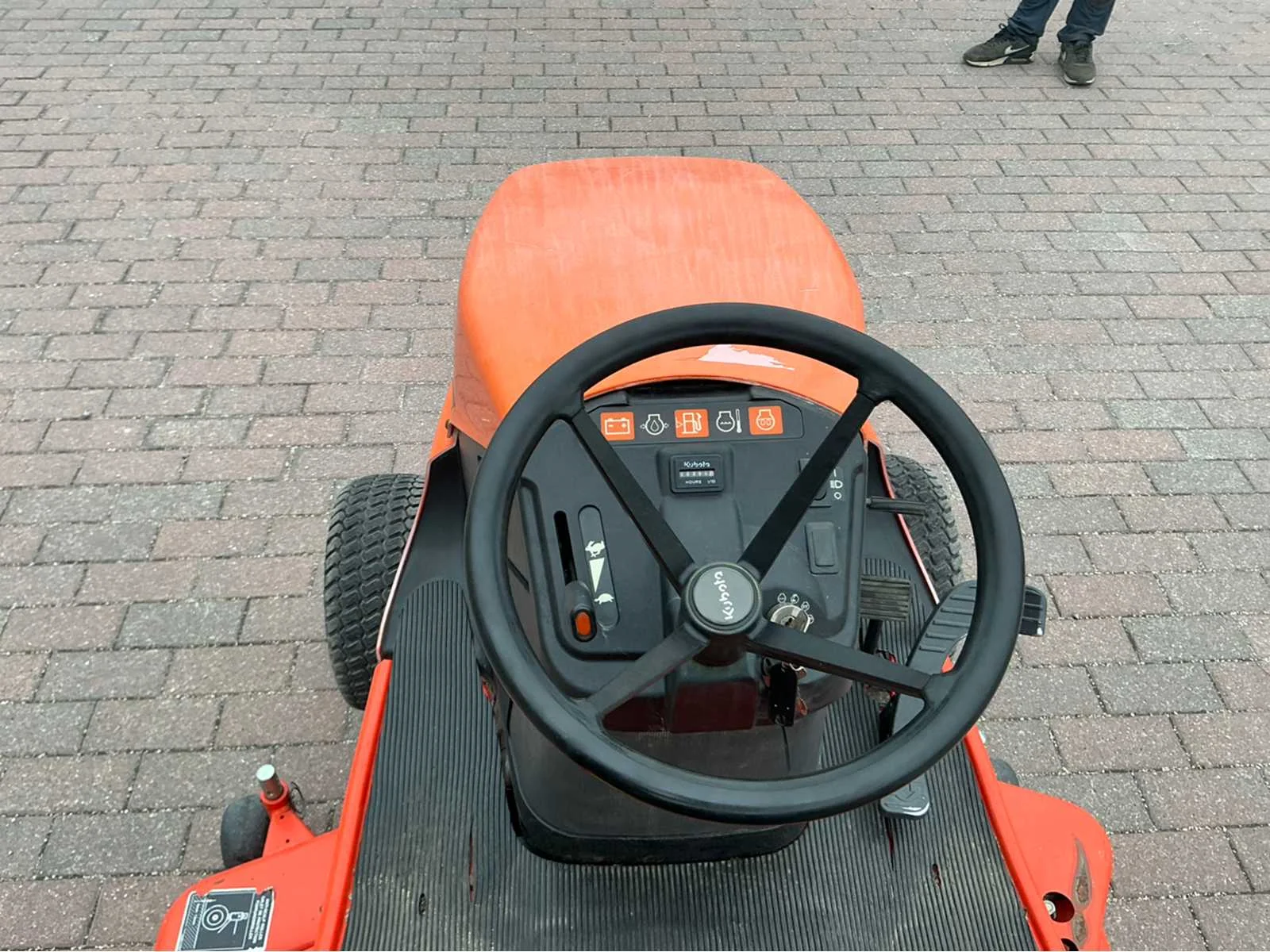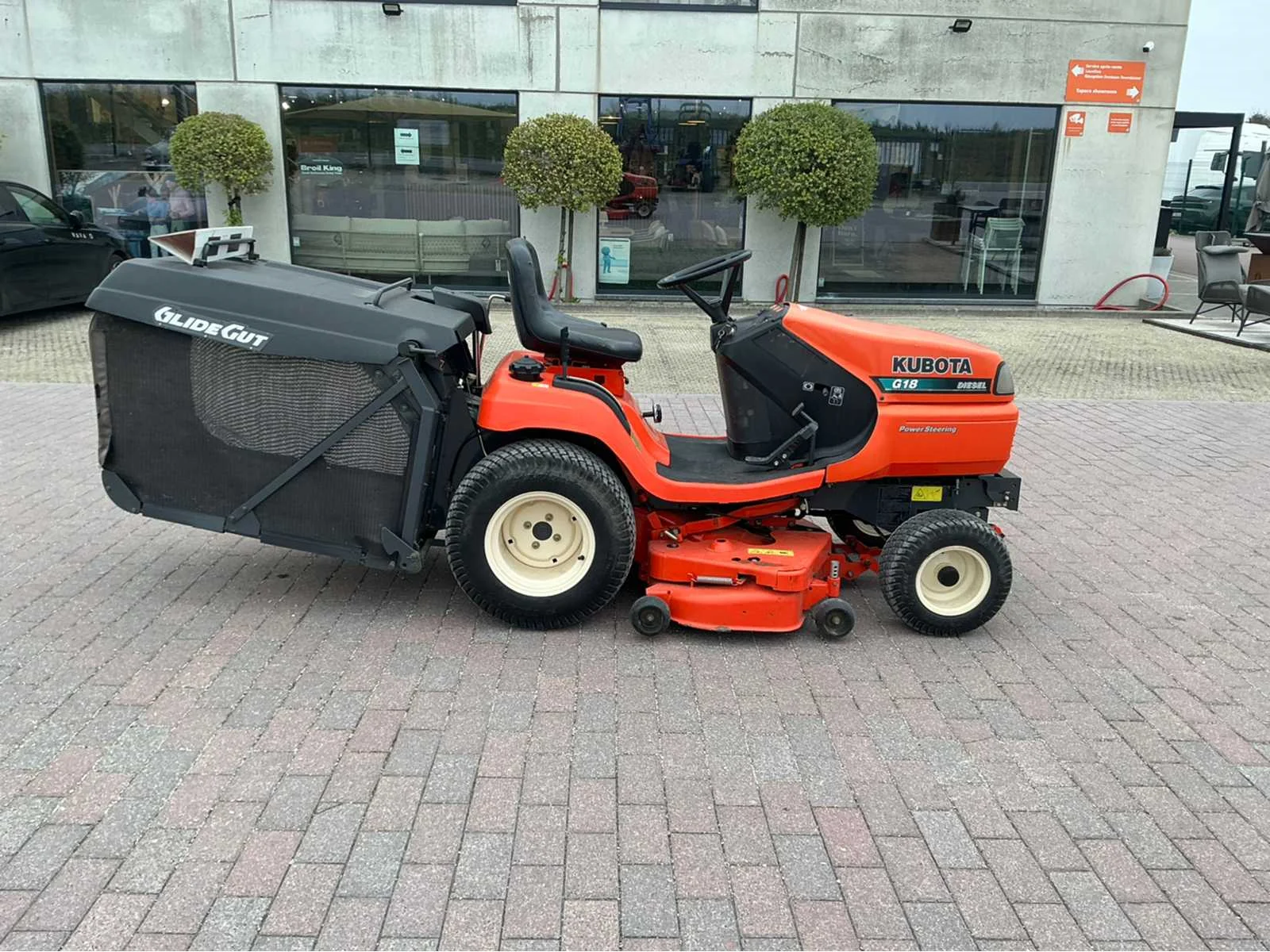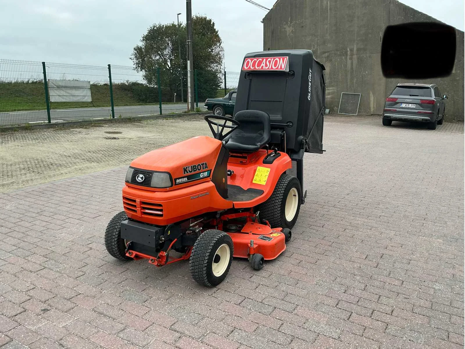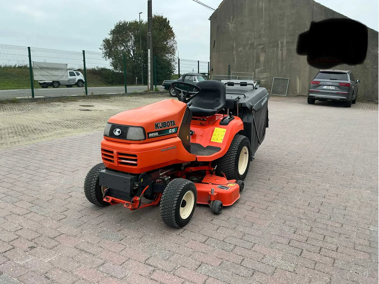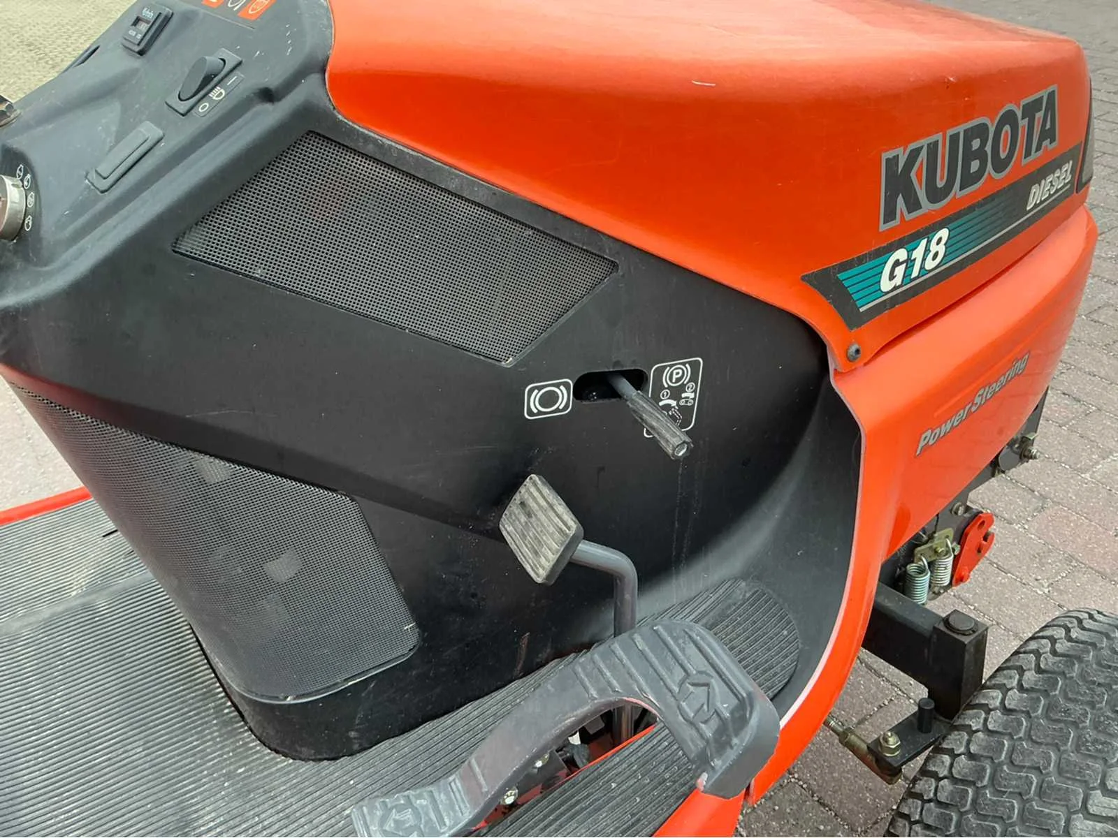 De Kubota G18 is een dieselzitmaaier met een 3-cilindermotor die 13,4 kW (18 pk) ontwikkelt bij 2.800 tpm. De hydrostatische transmissie (HST) maakt een continue snelheidsvariatie mogelijk. Hij heeft een aftakas achter bij 540 tpm en een centraal maaidek van ongeveer 1,22 m. Met een gewicht van 395 kg biedt de G18 een goede stabiliteit, een hoge wendbaarheid en een robuuste constructie die geschikt is voor professioneel onderhoud van groenstroken. Non Merk: Kubota Type: G18 Tondeuse autoportée Bouwjaar: 2001 Serienummer: 16081 Zelfrijdend: true Brandstof: Diesel Motorvermogen (kW): 13.4kW Afgelezen urenstand: 394hr Totale afmeting L: 1800mm Totale afmeting Breedte: 1150mm Totale afmeting Hoogte: 1250mm Eigen gewicht: 395kg