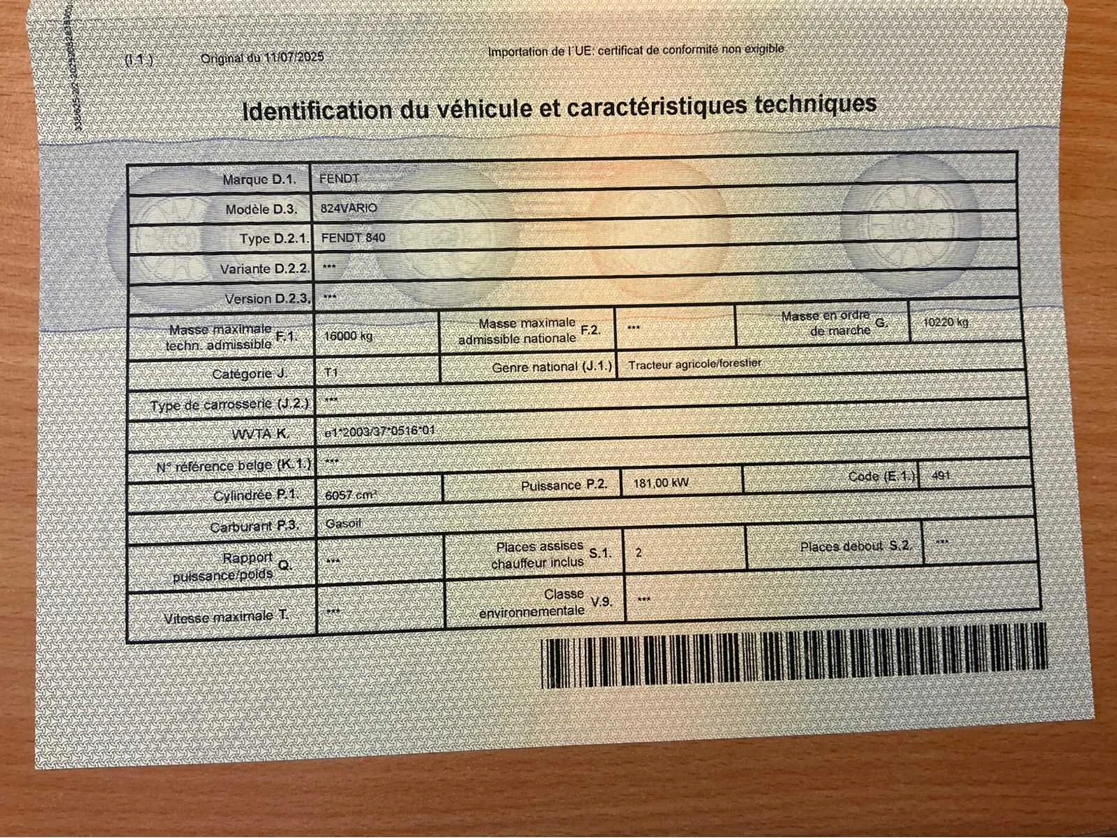 COC en alle technische informatie zie foto's en Geolocatie 🚜 TE KOOP – Fendt 824 Vario (2016) – 181 kW / 246 pk – Zeer goede staat! Grijp uw kans om een Fendt 824 Vario uit 2016 aan te schaffen, die kracht, betrouwbaarheid en comfort combineert. Ideaal voor veeleisende boerderijen en zwaar werk. 🔧 Technische kenmerken: • Model: Fendt 824 Vario • Jaar: 2016 • Chassisnummer: WAM84123H00F08009 • Vermogen: 181 kW / 246 pk • Transmissie: Vario – traploos variabel (soepel, efficiënt, nauwkeurig) • Draaiuren: • Algemene staat: Zeer goed – geen kosten te verwachten, klaar om te werken • Banden: zeer goede staat ✅ Inbegrepen uitrusting: ✔️ Hangende cabine met airconditioning - zeer comfortabel ✔️ Geveerde vooras ✔️ Hefinrichting voor en achter ✔️ Voor & Achter PDF ✔️ Elektrische hydraulische verdelers ✔️ Vario-terminal (intelligent beheer) ✔️ GPS-aanleg ✔️ Pneumatische zitting voor veel comfort ✔️ Hydraulische remaanhanger 📄 Beschikbare documenten: • Verifieerbaar serienummer: WAM84123H00F08009 • Volledige onderhouds-/historiefacturen aanwezig Non Merk: Fendt Type: Fendt 840 E4 Bouwjaar: 2016 Motorvermogen (kW): 188kW Afgelezen urenstand: 4791 Versnellingsbaktype: Vario Frontgewichtenset: true Fronthefinrichting: true Cabine: true Chassisnummer: 840211378 Nationaliteit documenten: Belg