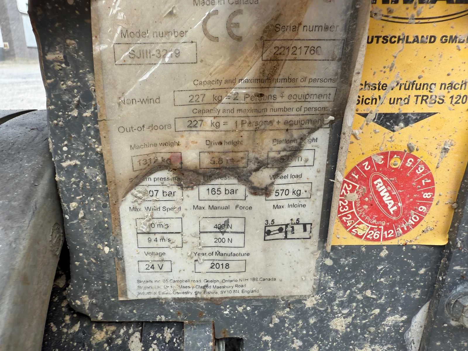 Goede batterijen en oplader Goed en vlot werkend Nee Merk: Skyjack Type: SJ III 3219 Bouwjaar: 2018 Serienummer: 22121760 Elektrisch: true Schaarhoogwerker: true Werkhoogte: 5800mm Plateau afm. l: 1750mm Plateau afm. b: 750mm Platform capaciteit: 227kg Afgelezen urenstand: 381 Eigen gewicht: 1312kg Totale afmeting L: 1900mm Totale afmeting Breedte: 800mm Totale afmeting Hoogte: 2100mm