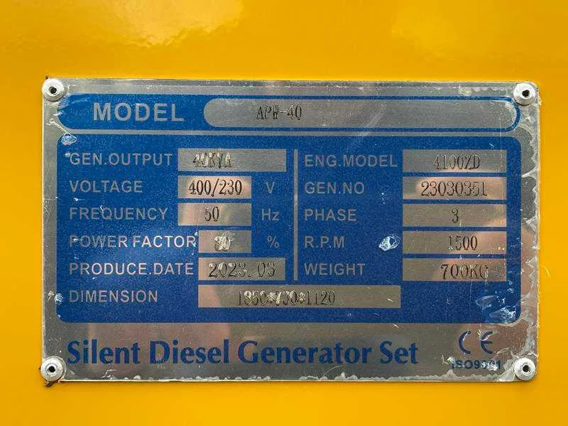 40 kVA; 3 Ph ; motor: Ricardo 4100 ZD; acepow alternator: STC-30;needs technical inspection Nee Merk: Ricardo Type: APW40 Bouwjaar: 2022 Serienummer: 23030351 Capaciteit.: 40kVA Diesel: true Type motor: Ricardo Aantal cilinders: 4 Motorvermogen (kW): 30kW Watergekoeld: true Afgelezen urenstand: 662 Machinegewicht: 750kg Totale afmeting L: 200mm Totale afmeting Breedte: 1000mm Totale afmeting Hoogte: 1200mm