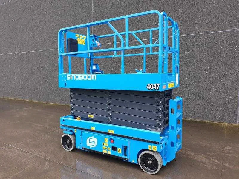 Motor: elektrisch; niet markerende banden; ongebruikt Nee Merk: Sinoboom Type: 4047 Elektrisch: true Werkhoogte: 13900mm Totale afmeting L: 2000mm Totale afmeting Breedte: 1100mm Totale afmeting Hoogte: 2000mm