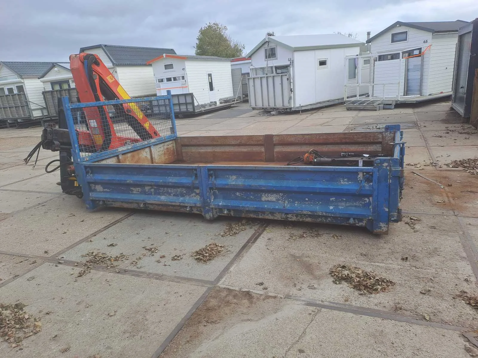 Container met dubbele achterdeuren en mogelijkheid Franse klep. Neerklapbare zijborden, lengte laadbak 4.20m. Inclusief rotator en stempelpoten Nee Merk: Palfinger Type: PE8000 Totale afmeting L: 5500mm Totale afmeting Breedte: 2450mm Totale afmeting Hoogte: 2300mm
