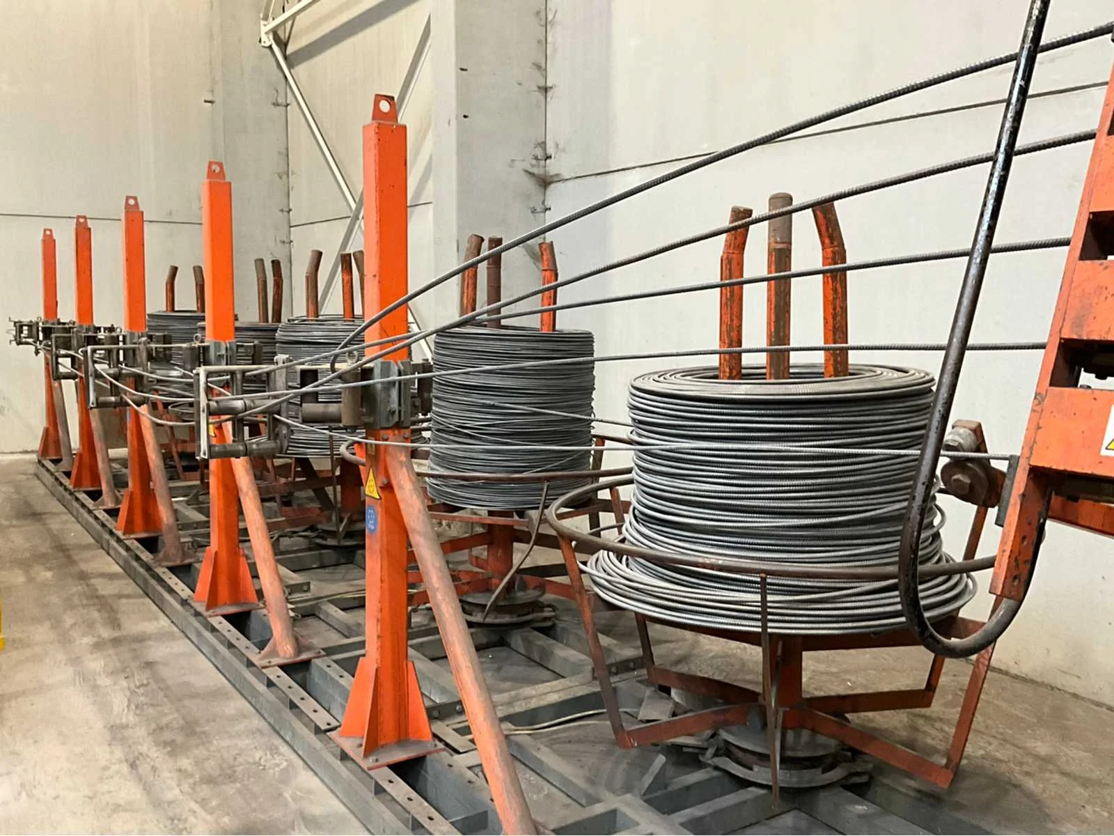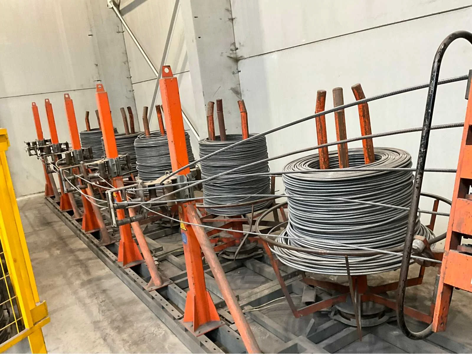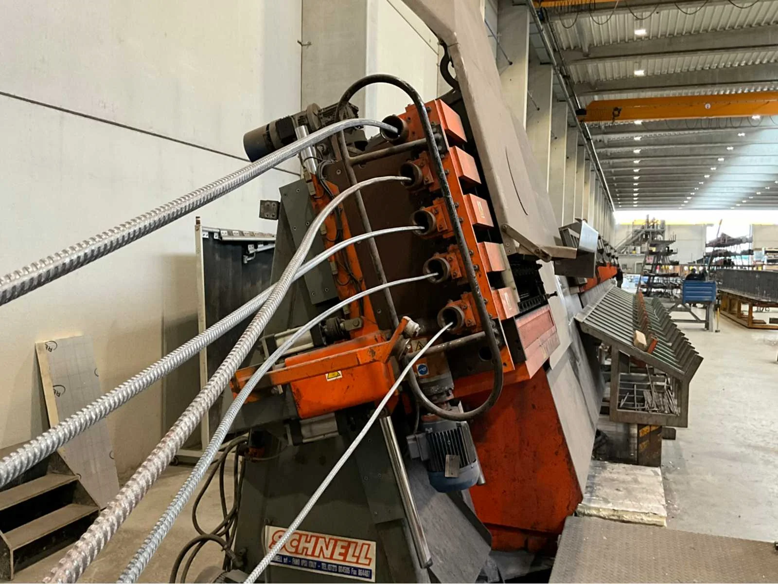 • Afmetingen (zonder hapsels en uitloop) : LXBXH =7.0mx3.20mx3.21m • Servo-gestuurd • Maximum diameter : 18mm • Diam 6-14 : 2 draads / diam 16-18mm : 1 draads • 5 geremde haspels voor rollen staal • 5 invoeren met automatische draadwissel • De instelling van de richtrollen wordt automatisch aangepast bij draadwissel • Wegrijdbare uitloop voor rechte staven tot 12m • Eerste ingebruikname : 1997 • Volledige documentatie • Direct inzetbaar Nee Merk: Schnell Type: Coil 18 BE/MF Bouwjaar: 1997