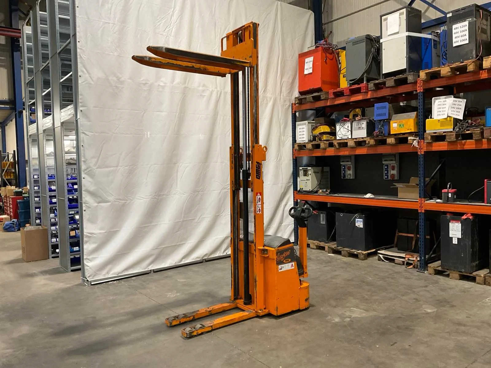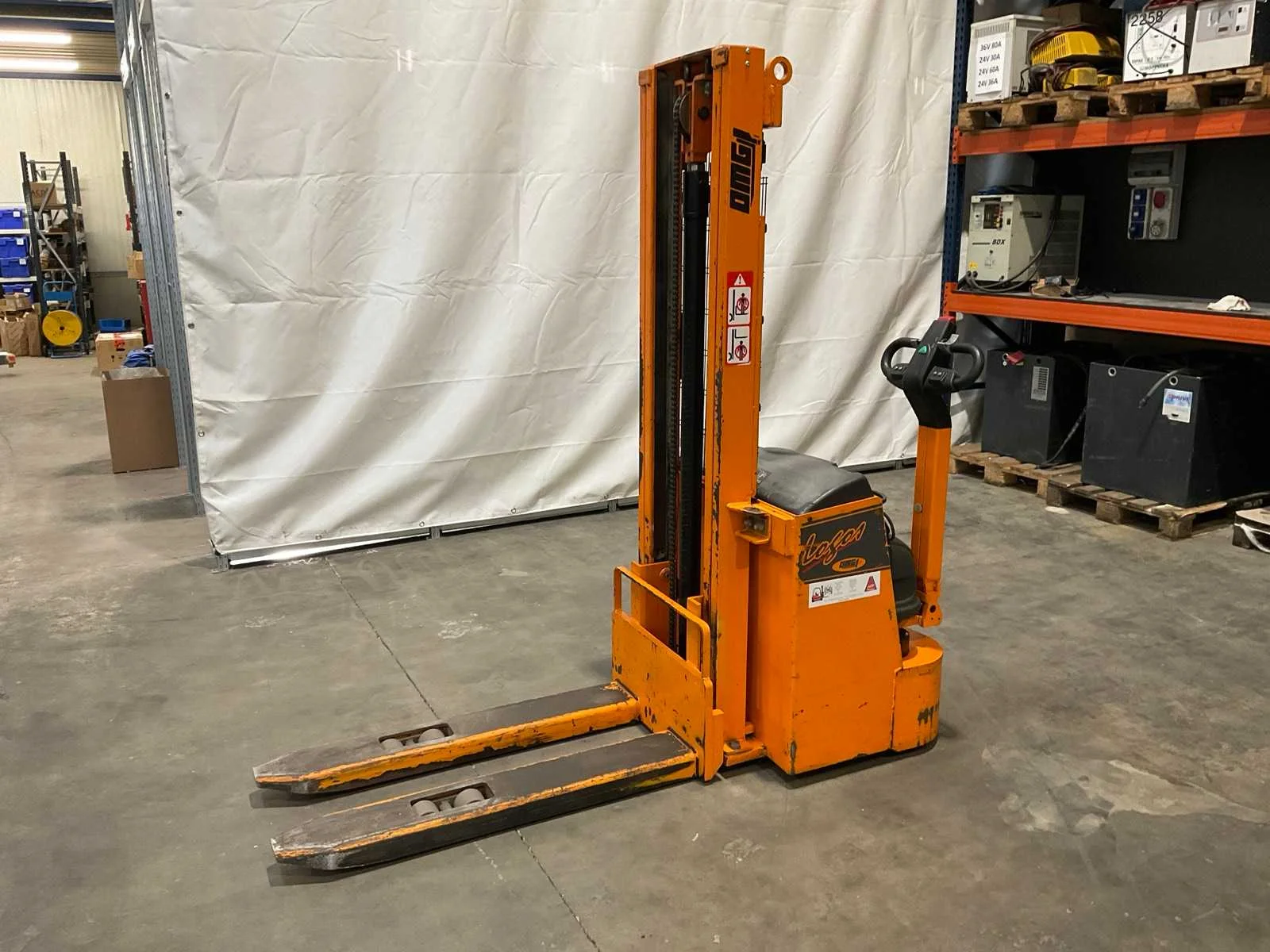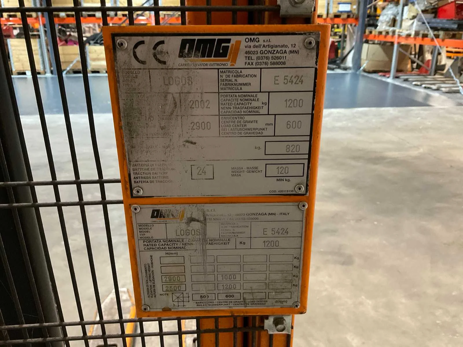 Voert alle functies uit Nee Merk: OMG Type: LOGOS Bouwjaar: 2002 Serienummer: E5424 Hefvermogen: 1200kg Hefhoogte: 2900mm Lepellengte: 1150mm Minimale doorrijhoogte: 2100mm Accu lader: true