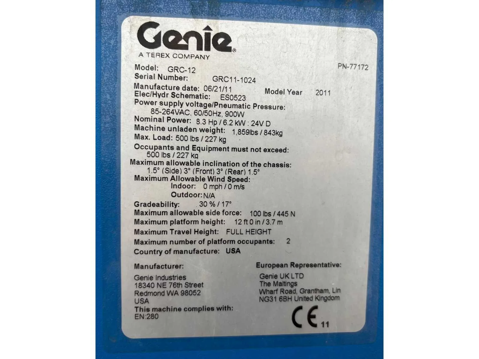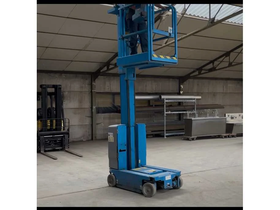 Deze hoogwerker verkeert in nette gebruikte staat en is VOLLEDIG FUNCTIONEEL - Urenstand slechts 197 uur, dus weinig gebruikt - Compacte en betrouwbare Genie GRC12 masthoogwerker, ideaal voor onderhouds- en installatiewerkzaamheden binnen gebouwen - Dankzij de elektrische aandrijving is de machine stil, schoon en onderhoudsarm - De ingebouwde acculader maakt opladen bijzonder eenvoudig: gewoon aansluiten op een standaard 230V stopcontact en de machine laadt automatisch op - De GRC12 biedt een stabiele werkhoogte tot 5,45 meter en een platformcapaciteit van 227 kg, ideaal voor één persoon met gereedschap - Door de smalle bouwbreedte van slechts 75 cm past de machine moeiteloos door deuropeningen en is hij perfect inzetbaar in magazijnen, fabriekshallen of winkels Nee Merk: Genie Type: GRC12 Bouwjaar: 2011 Serienummer: GRC11_1024 Elektrisch: true Motorvermogen (kW): 6.2kW Masthoogwerker: true Werkhoogte: 5450mm Plateau afm. l: 990mm Plateau afm. b: 750mm Platform capaciteit: 227kg Accu lader: true Afgelezen urenstand: 197 Eigen gewicht: 843kg Totale afmeting L: 1370mm Totale afmeting Breedte: 750mm Totale afmeting Hoogte: 1700mm