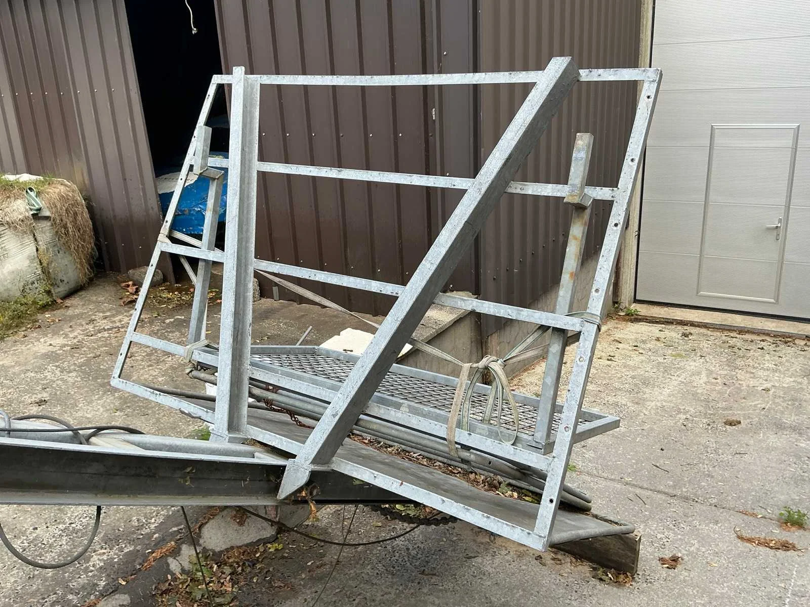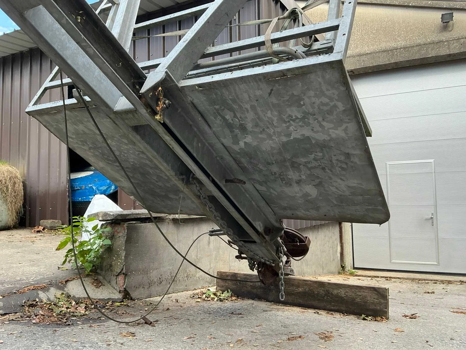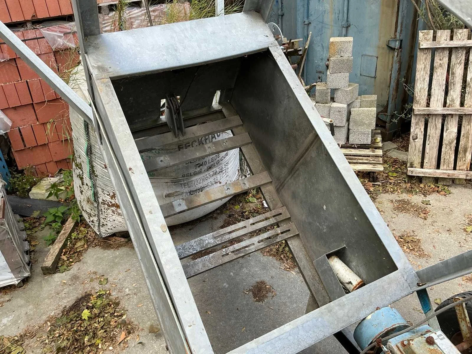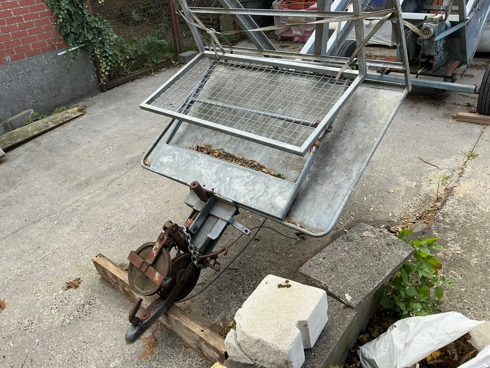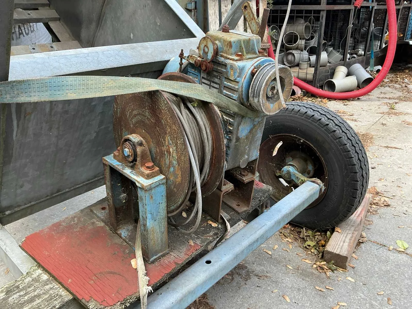 Bouwlift uit gegalvaniseerd staal, kan vervoerd worden, as zit niet geblokkeerd! Verlichting voor transport nog te voorzien! moet door koper opnieuw werkzaam gemaakt worden. Staalkabel en motor aanwezig. Werking onbekend. Typeplaatje spreekt over 10,5m hefhoogte, de mast meet 7 meter. Nee Bouwjaar: 1990 Staalkabel: true Max. belasting: 350kg Hefhoogte: 10m Plateau afm. l: 1100mm Plateau afm. b: 1500mm Aantal mastdelen: 1 Totale afmeting Breedte: 1700mm
