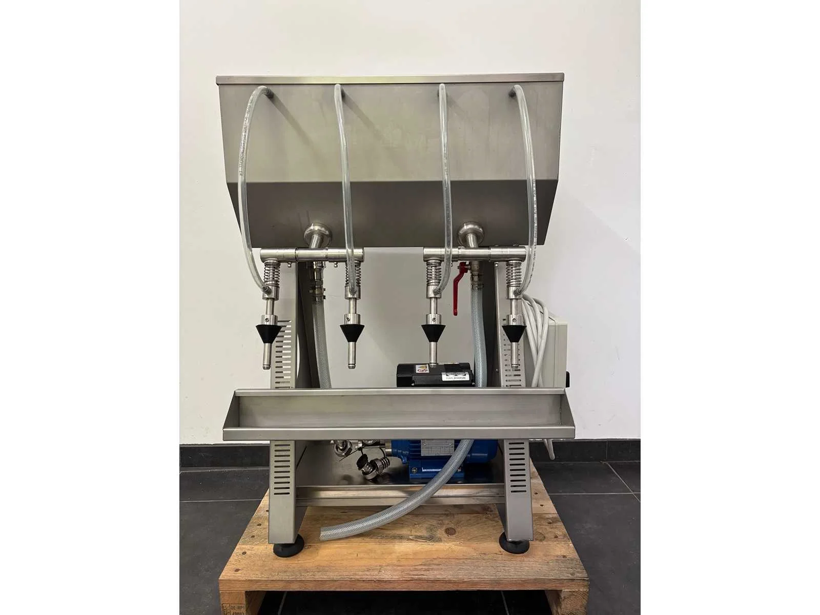 Professionele flesvuller van het Italiaanse merk Enotecnica Pillan, model Bacco 40E, uitgerust met de krachtige Z26-pomp. Volledig vervaardigd in RVS AISI 304 Automatische vlotterregeling Geschikt voor wijn, bier, olie en andere voedingsmiddelen Instelbare vulniveaus, meerdere vulkoppen mogelijk Zeer solide en betrouwbaar ontwerp In werkende staat, klaar voor gebruik No Merk: Enotecnica Pillan Model: Bacco 40E Product type: Professionele flesvuller Kleur: stainless steel