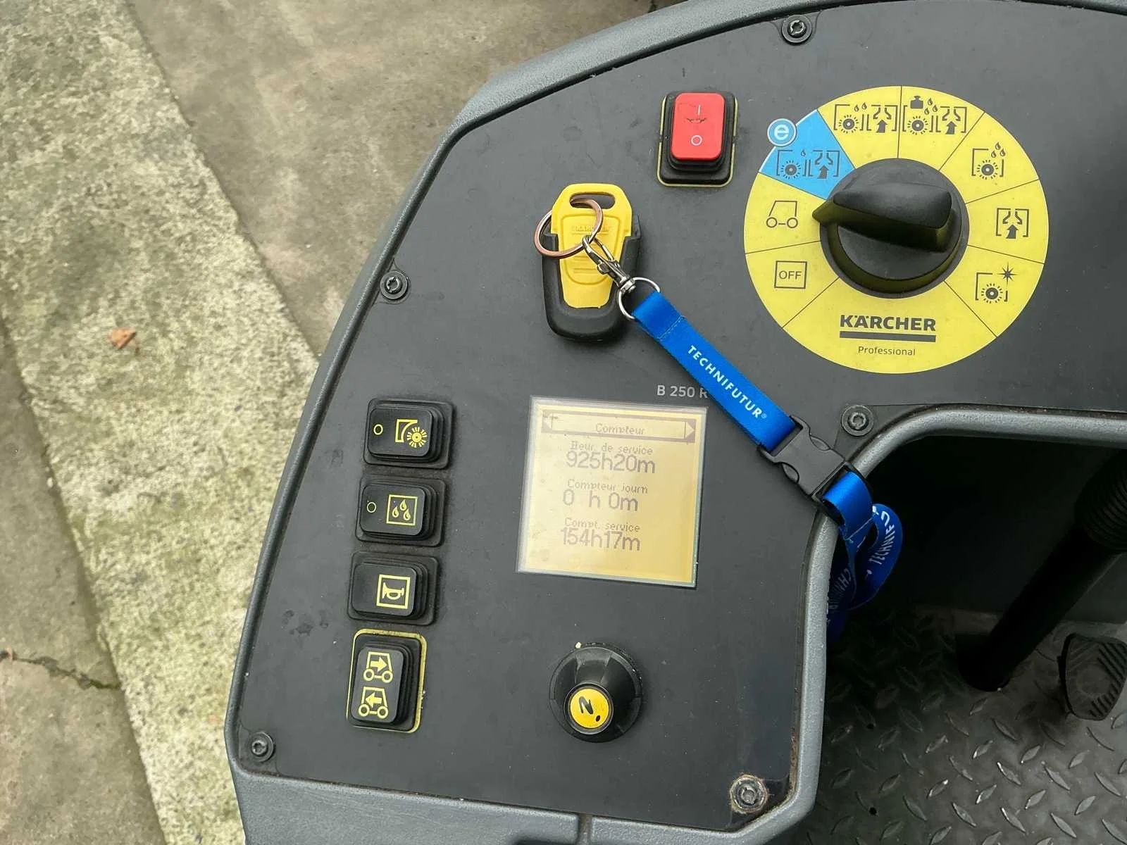Batterijcapaciteit: 630 Ah (5 h) Werkbreedte borstels: 1000 mm (10 m) voor de standaard uitvoering (er zijn varianten) Tank volume (schoon / vuil water): 250 liter / 250 liter Maximale rijsnelheid: ongeveer 6 km/u Hellingscapaciteit: tot ca. 15 % Geluidsniveau (drukniveau): ca. 73 dB(A) No Merk: Kärcher Type: B250R Bouwjaar: 2023 Elektrisch: true Afgelezen urenstand: 925hr Accu lader: true Aansluiting: 36V