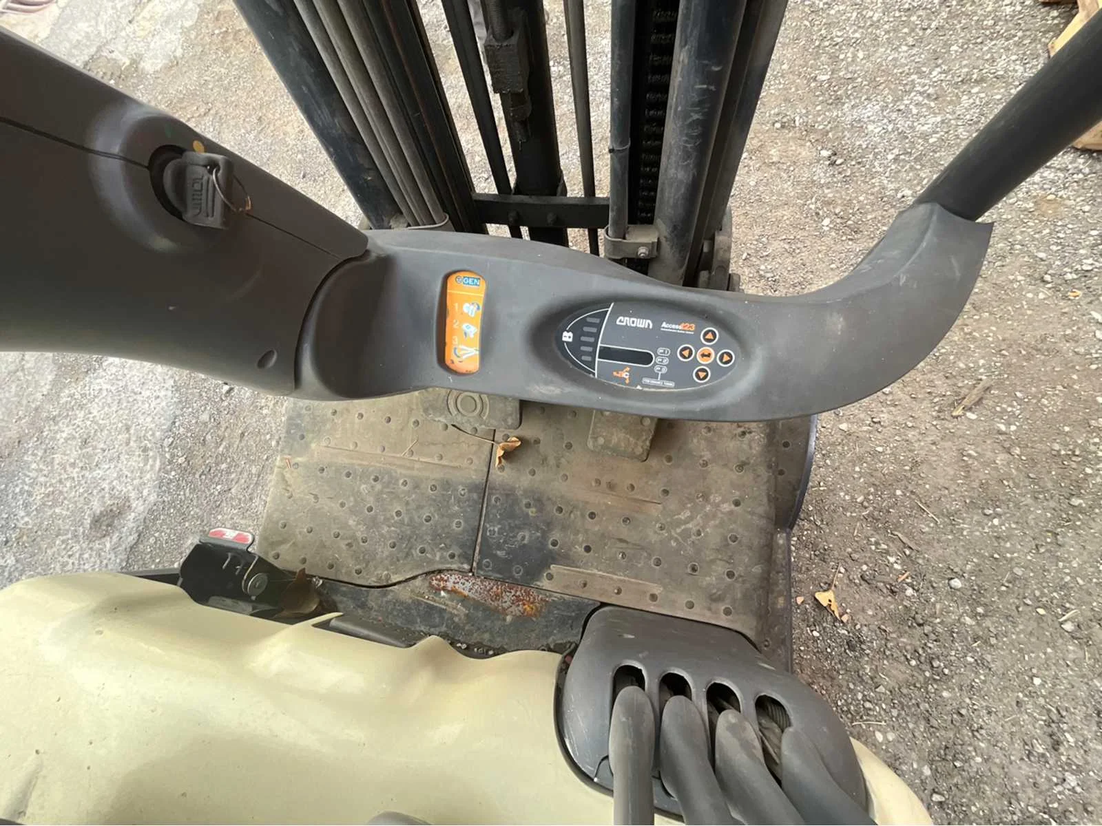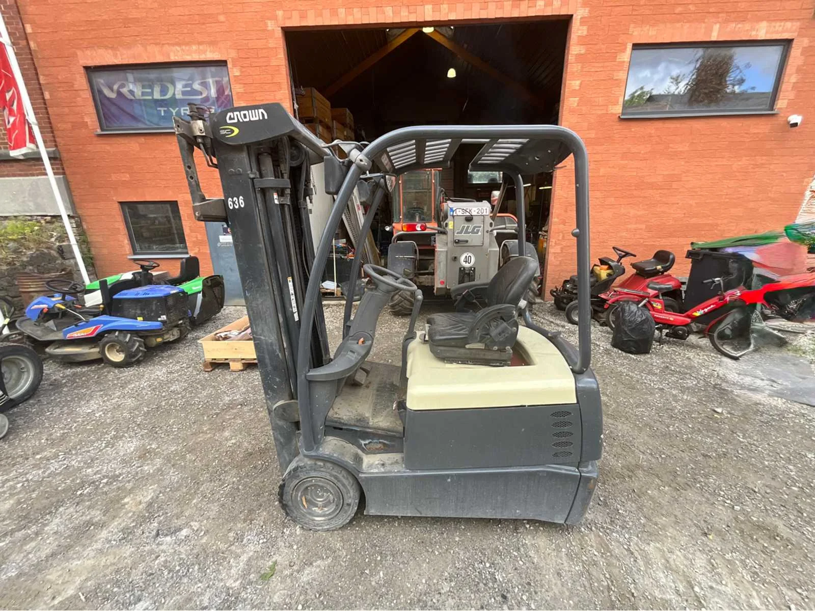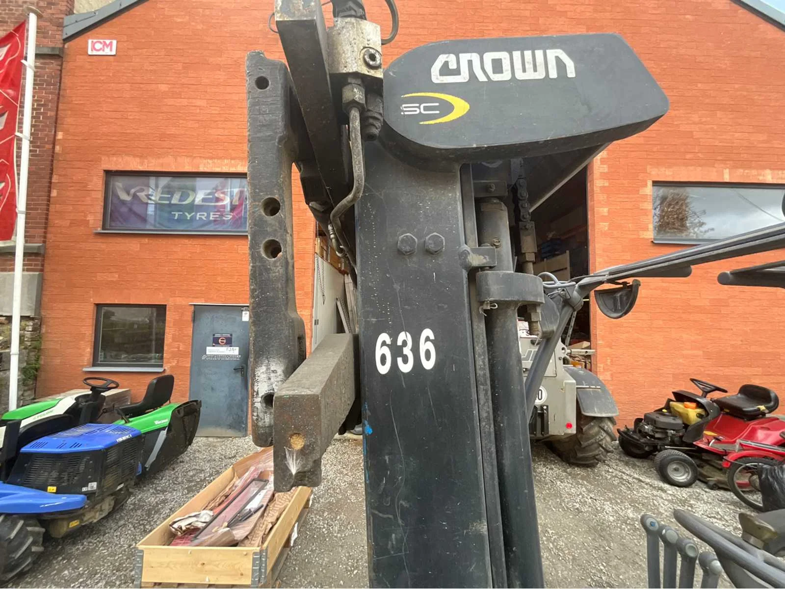 Zijwaarts schakelen Nee Merk: Crown Type: SC 4200 Bouwjaar: 2009 Serienummer: 9A173441 Brandstof: Elektrisch Mast: Duplex Soort band: Luchtbanden Aantal wielen: 3 Free-lift: true Duplex mast: true Eigen gewicht: 3200kg Hefvermogen: 1600kg Lepellengte: 1200mm Min. hefhoogte: 50mm Max. hefhoogte: 4995mm Vol rubber banden: true Minimale doorrijhoogte: 2150mm Totale afmeting L: 3100mm Totale afmeting Breedte: 1070mm