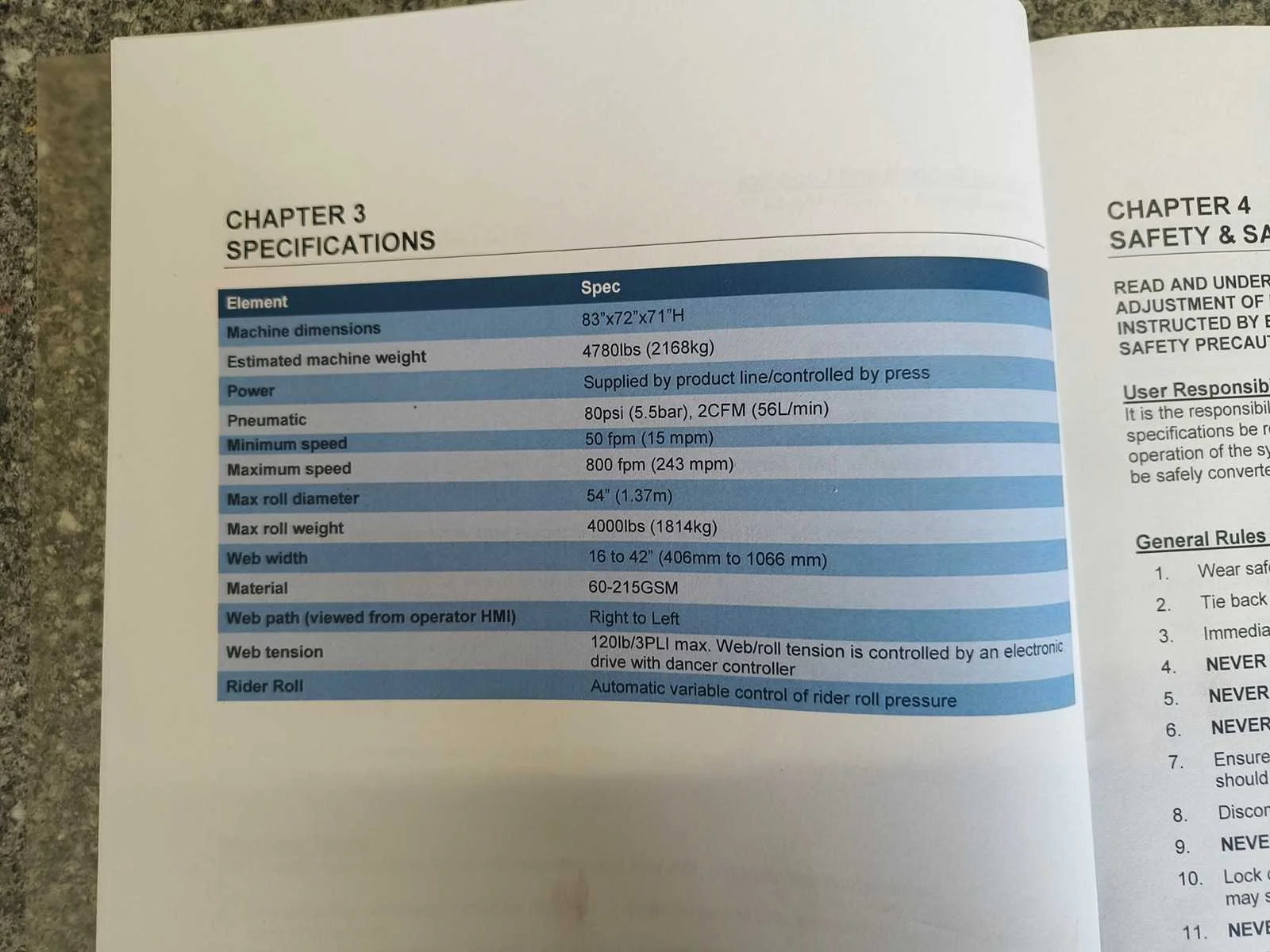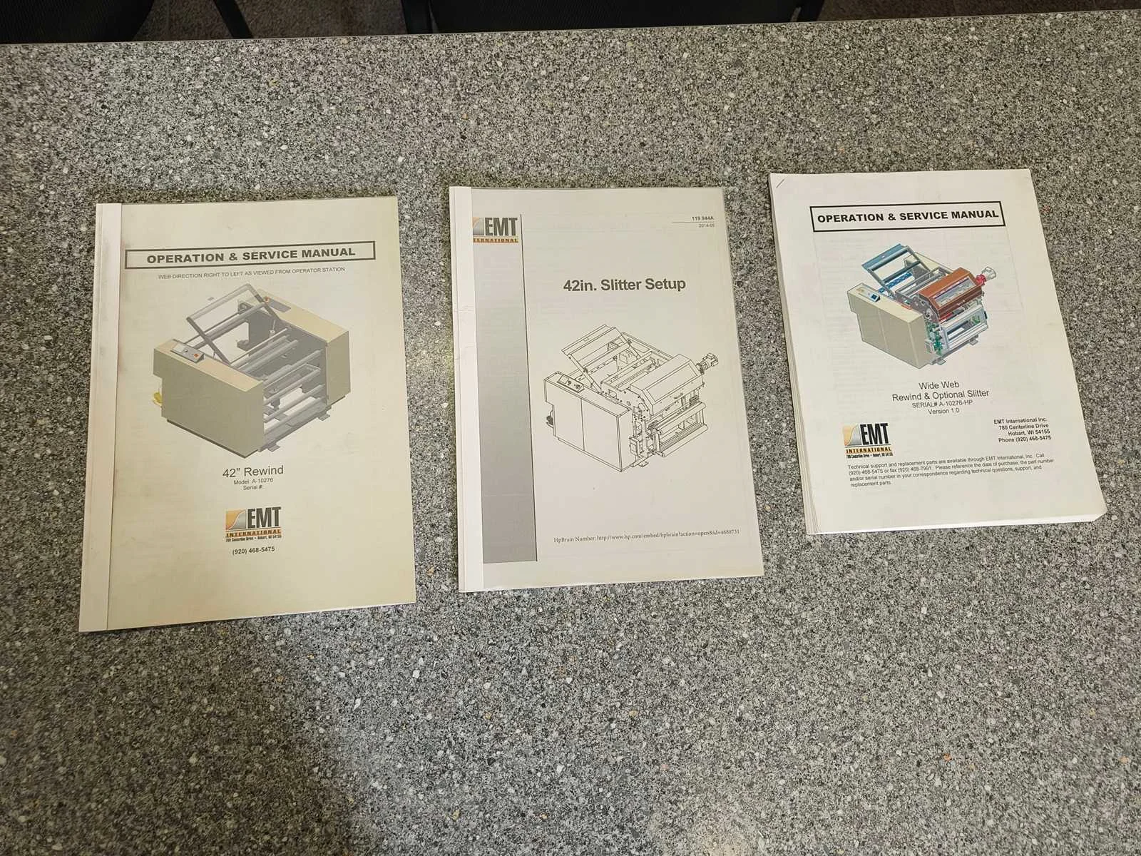 EMT 42" Rewind & Slitter machine Bedienings- en servicehandleiding aanwezig Klaar op pallet voor transport Afmetingen pallet: 2310mm x 2650mm x 2220mm Nee Merk: EMT Type: 42" wikkel en snijmachine Serienummer: A-10276-HP