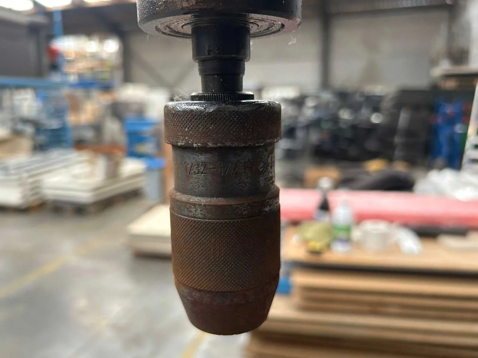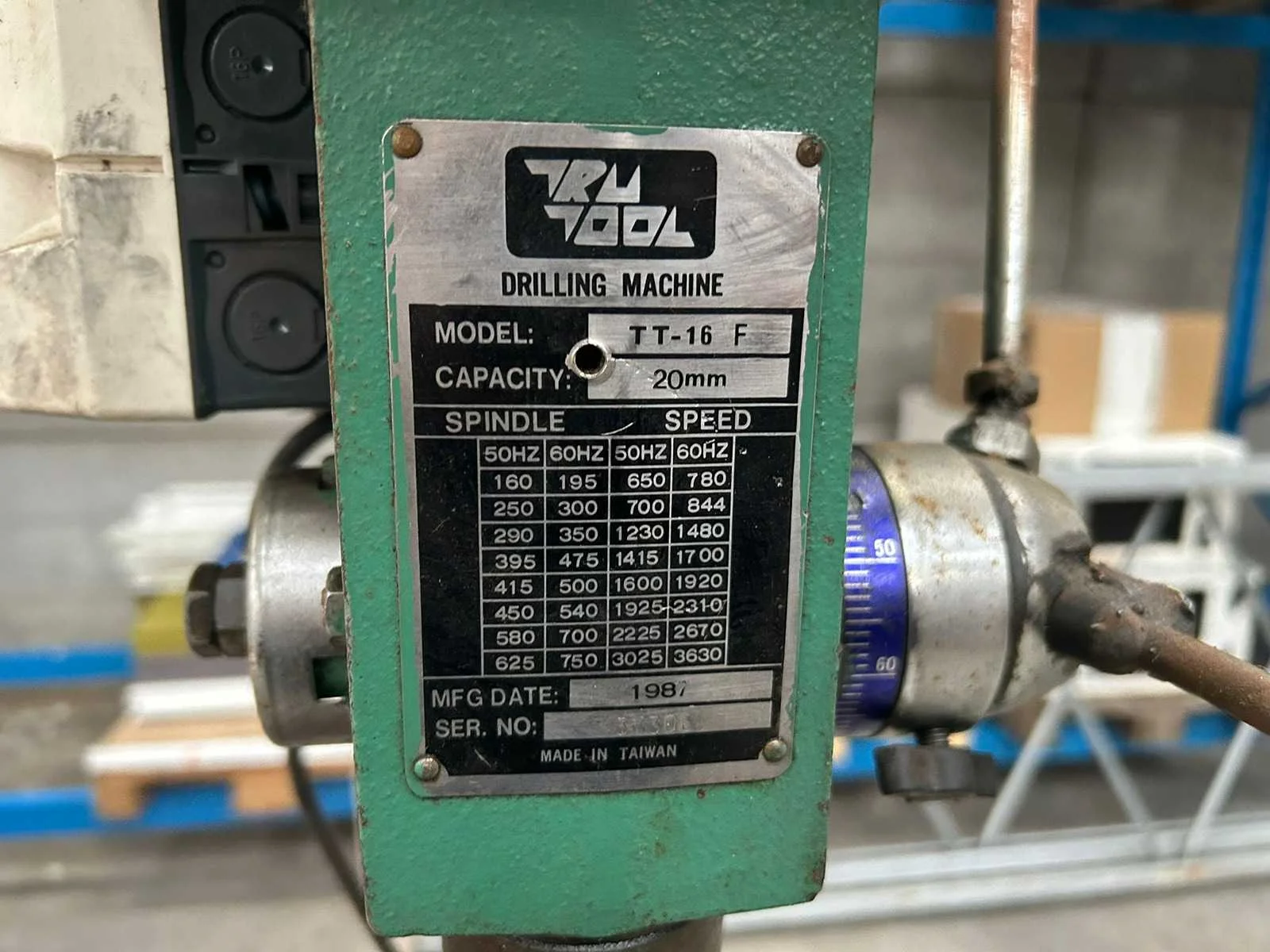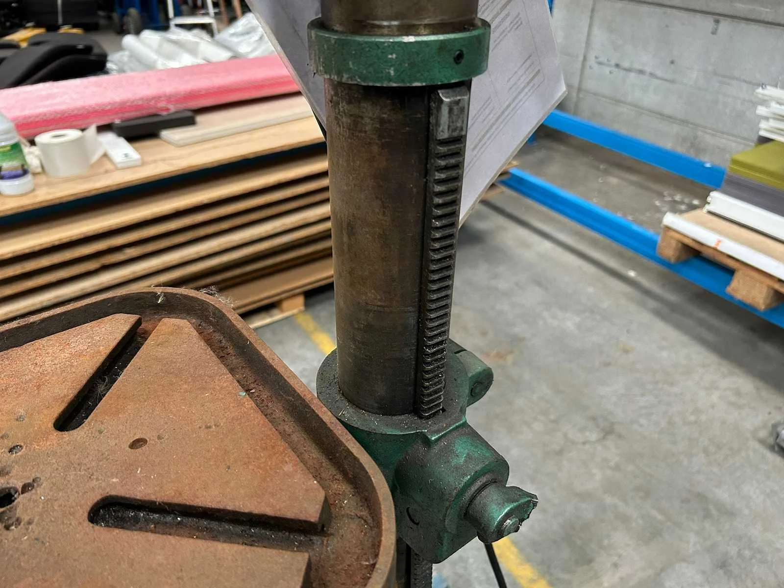 TRUTOOL industriële boormachine, met gebruikssporen. Handgreep ontbreekt, snoer zonder stekker. No Merk: TRUTOOL Type: TT -16 F Bouwjaar: 1987 Lengte: 50cm Breedte: 75cm Hoogte: 170cm