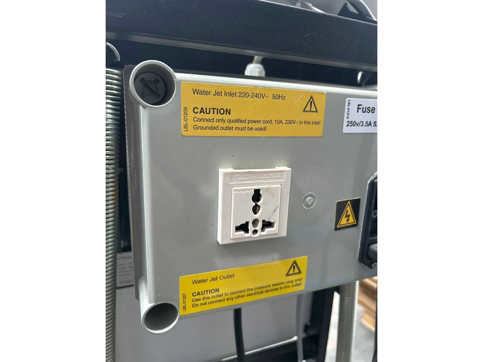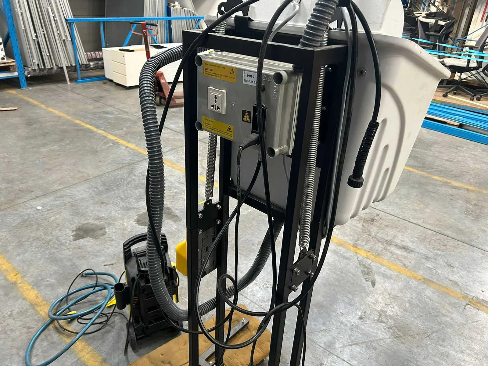 Gesloten straalcabine voor hogedrukreiniging met ingebouwde handschoenen en kijkvenster.Met gebruikssporen. Handschoenen beschadigd. No Merk: KÄRCHER Serienummer: 379534 Motorvermogen (kW): 1,5kW Aansluiting: 230V Machinegewicht: 80kg Afmeting l: 750mm Afmeting b: 700mm Afmeting h: 1600mm