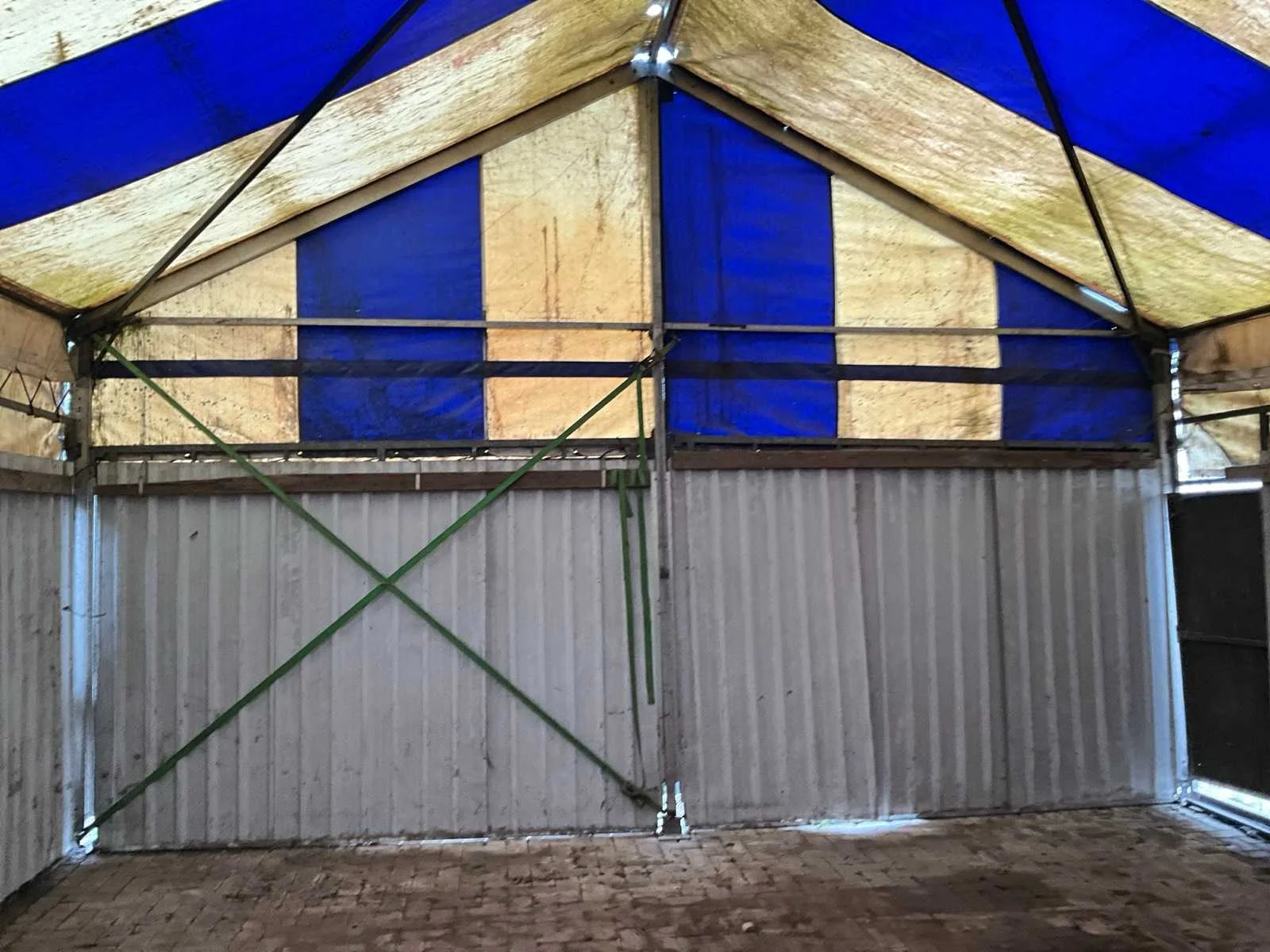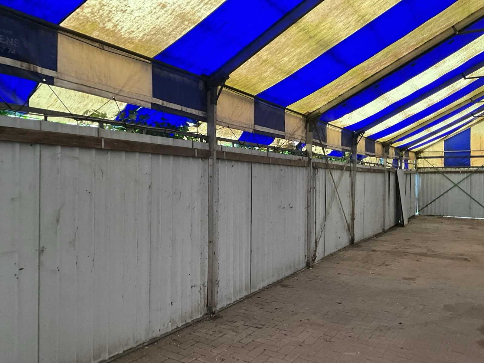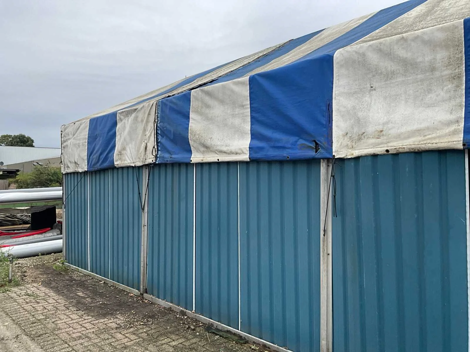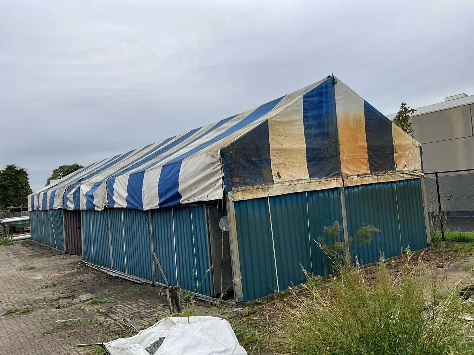 Tent dient door verkoper zelf af te breken - vorkheftruck aanwezig Nee Lengte: 2100cm Breedte: 620cm Hoogte: 420cm