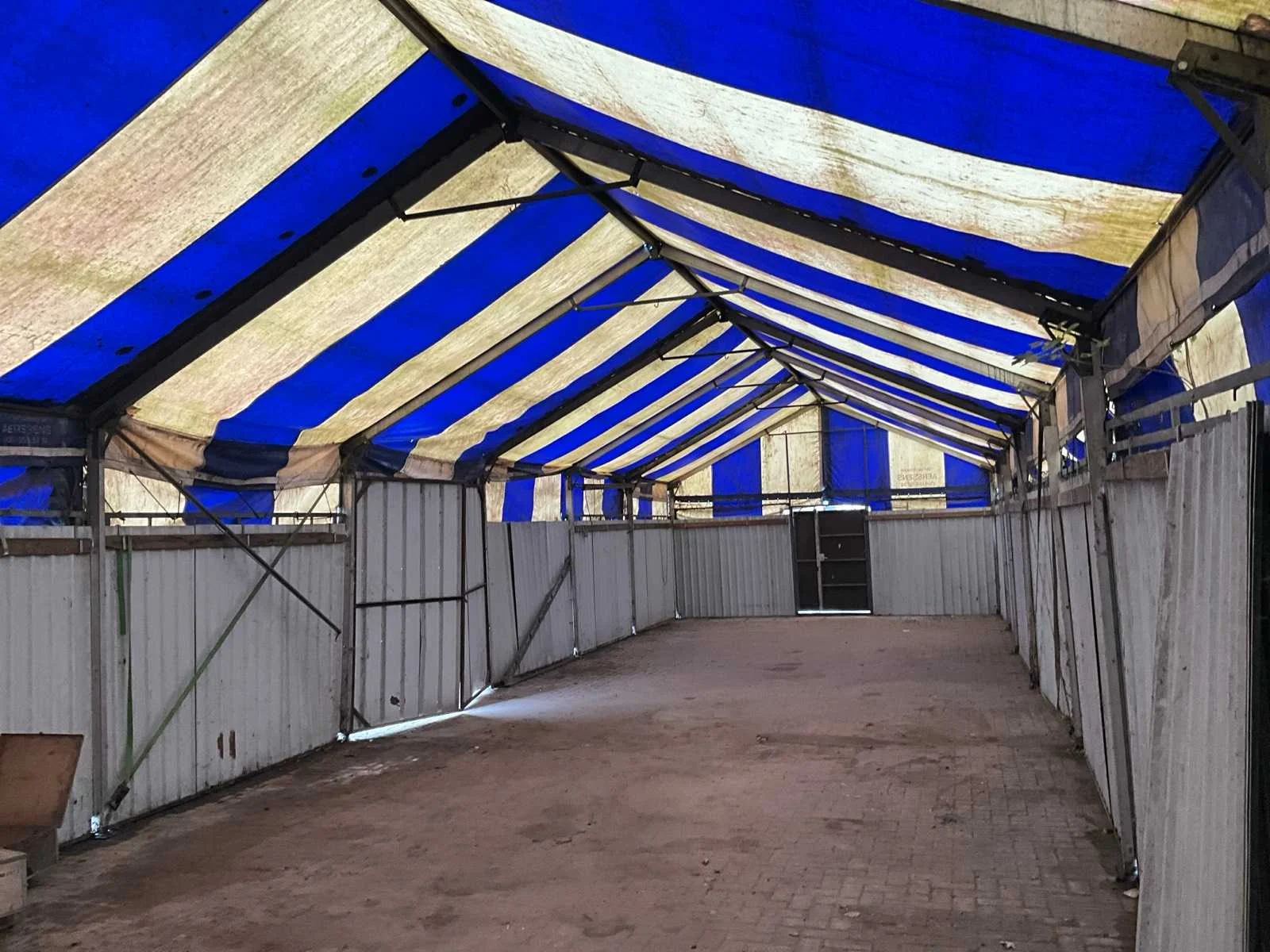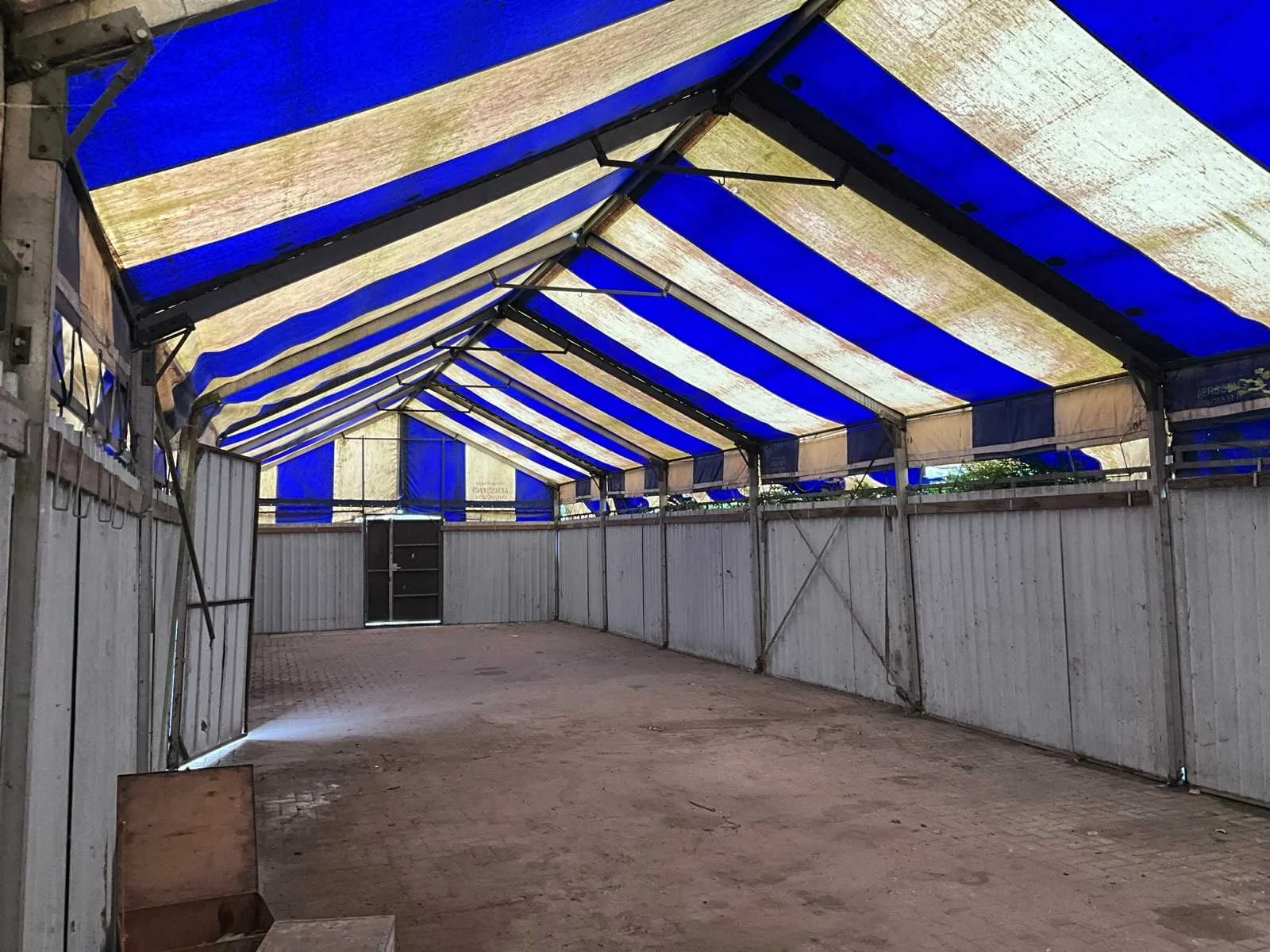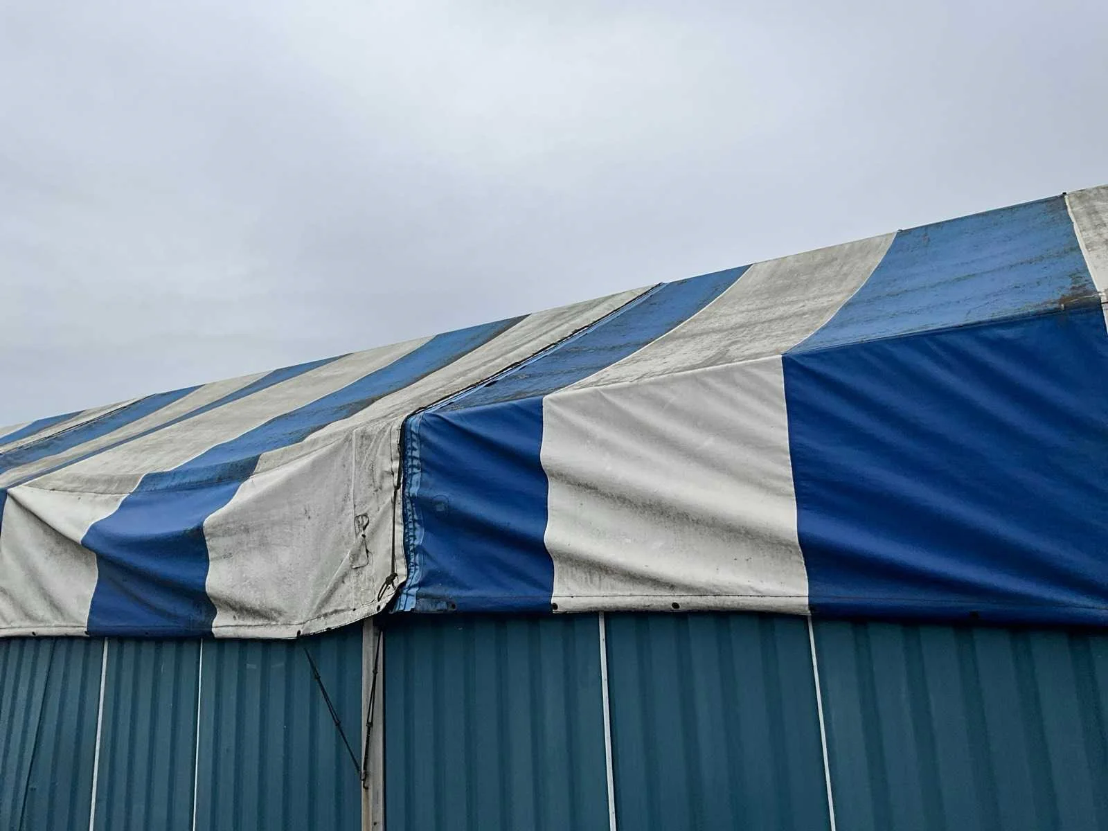 Tent dient door verkoper zelf af te breken - vorkheftruck aanwezig Nee Lengte: 2100cm Breedte: 620cm Hoogte: 420cm
