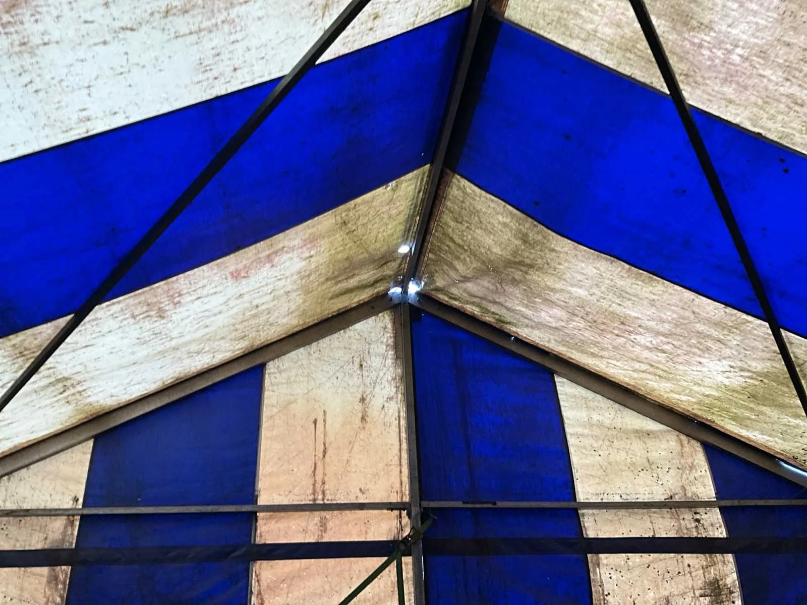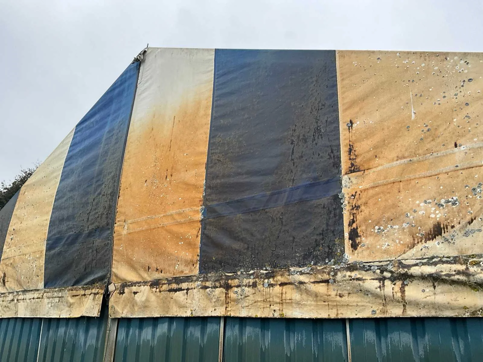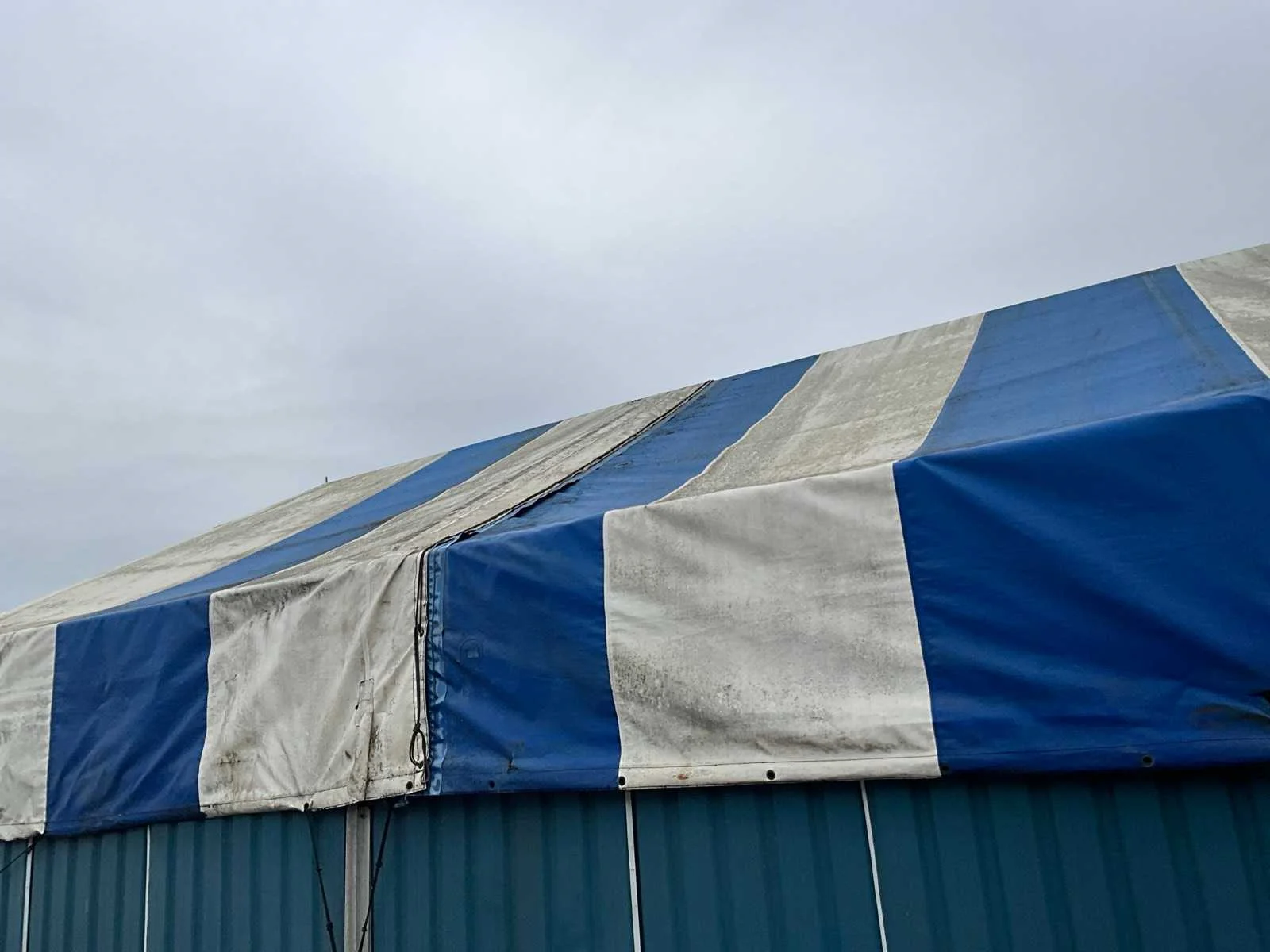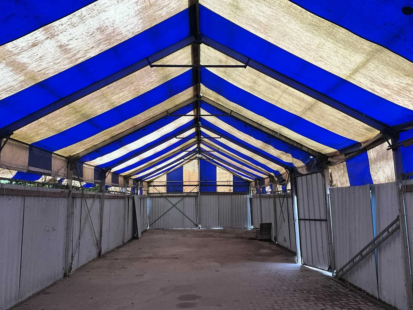 Tent dient door verkoper zelf af te breken - vorkheftruck aanwezig Nee Lengte: 2100cm Breedte: 620cm Hoogte: 420cm
