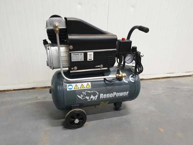 Direct driven; 2 PK; 25 L; 8 bar; monofasig; 230 v; 1 Ph; 50 Hz; motor: elektrisch; ongebruikt Nee Merk: Renopower Type: DD 2-25-8-M Capaciteit.: 8bar Luchtstroom: 188l/min