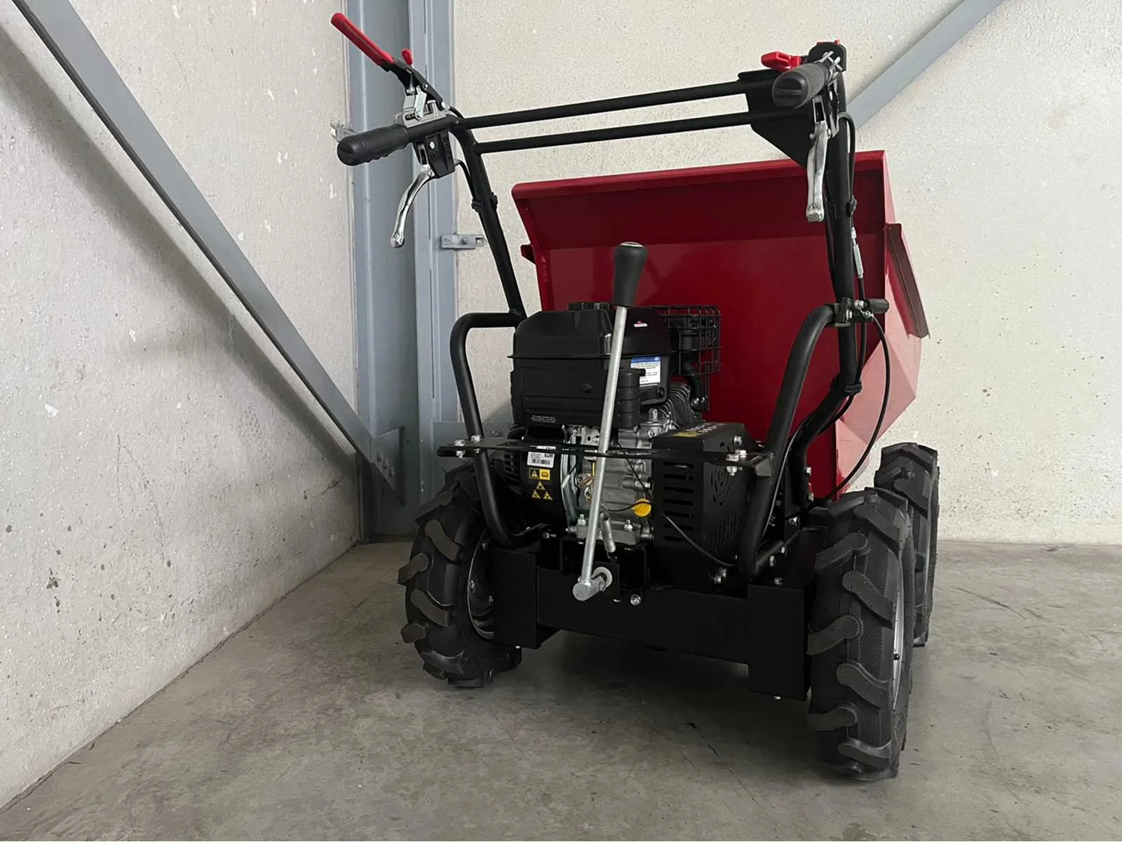<ul> <li><strong>gemotoriseerde kruiwagen</strong></li> <li><strong>motor:</strong> Briggs & Stratton XR</li> <li><strong>motorinhoud:</strong> 208 cc</li> <li><strong>motorvermogen:</strong> 4,9 kW</li> <li><strong>emissienorm:</strong> EU Stage V</li> <li><strong>starten:</strong> trekstarter</li> <li><strong>versnellingsbak:</strong> 3 versnellingen + achteruit</li> <li><strong>laadcapaciteit:</strong> 300 kg</li> <li><strong>inhoud:</strong> circa 200 liter</li> <li><strong>kipmethode:</strong> handmatig</li> <li><strong>maximale snelheid:</strong> 3,6 km/u</li> <li><strong>gewicht:</strong> 168 kg</li> <li><strong>goed om weten:</strong> <ul> <li>Toonzaalmodel, zeer lichte gebruikssporen mogelijk.</li> <li>Controleer montage en voeg olie en brandstof toe. </li> <li>Smeer bewegende delen voor gebruik.</li> </ul> </li></ul> Nee Merk: Briggs & Stratton