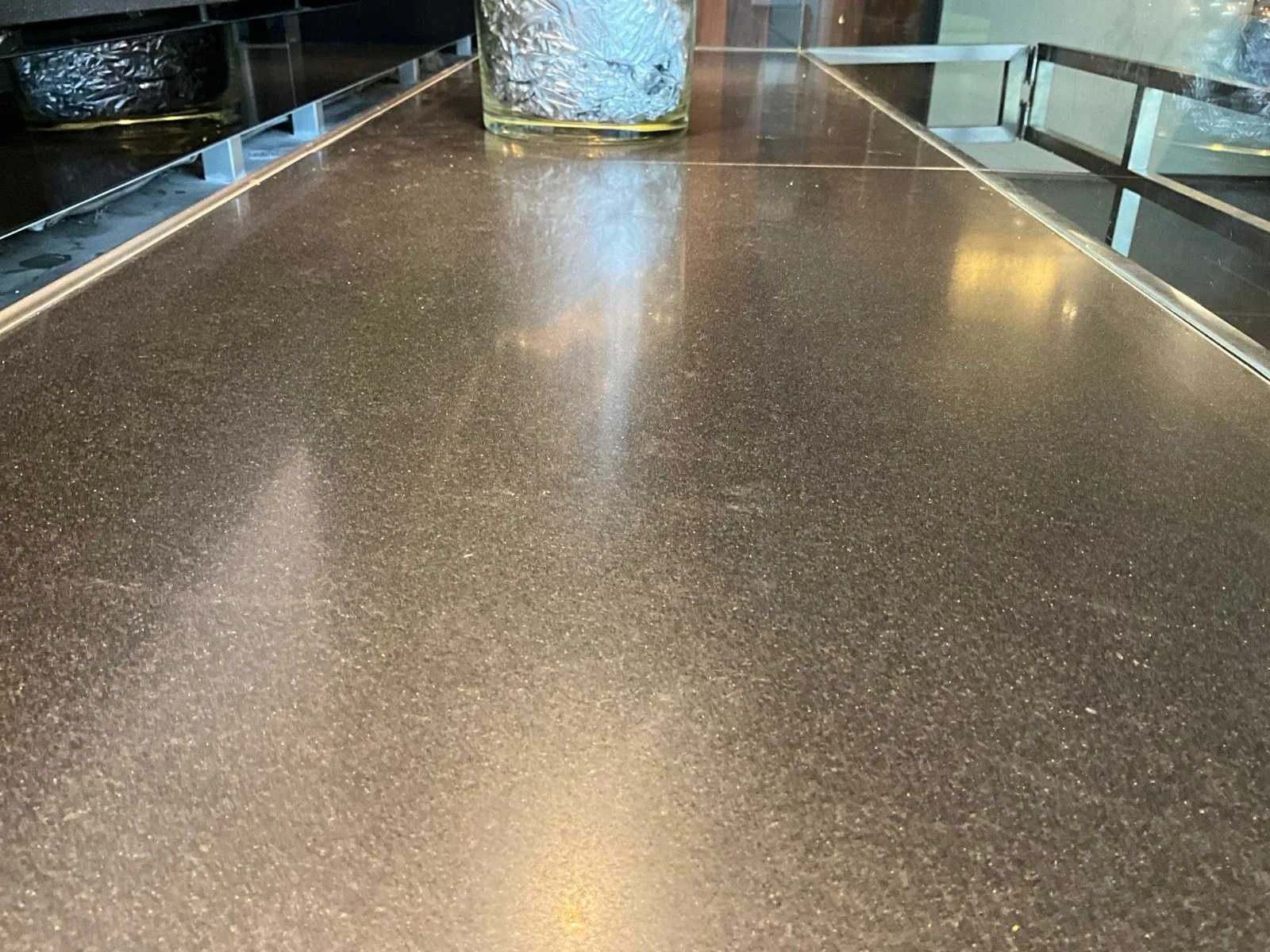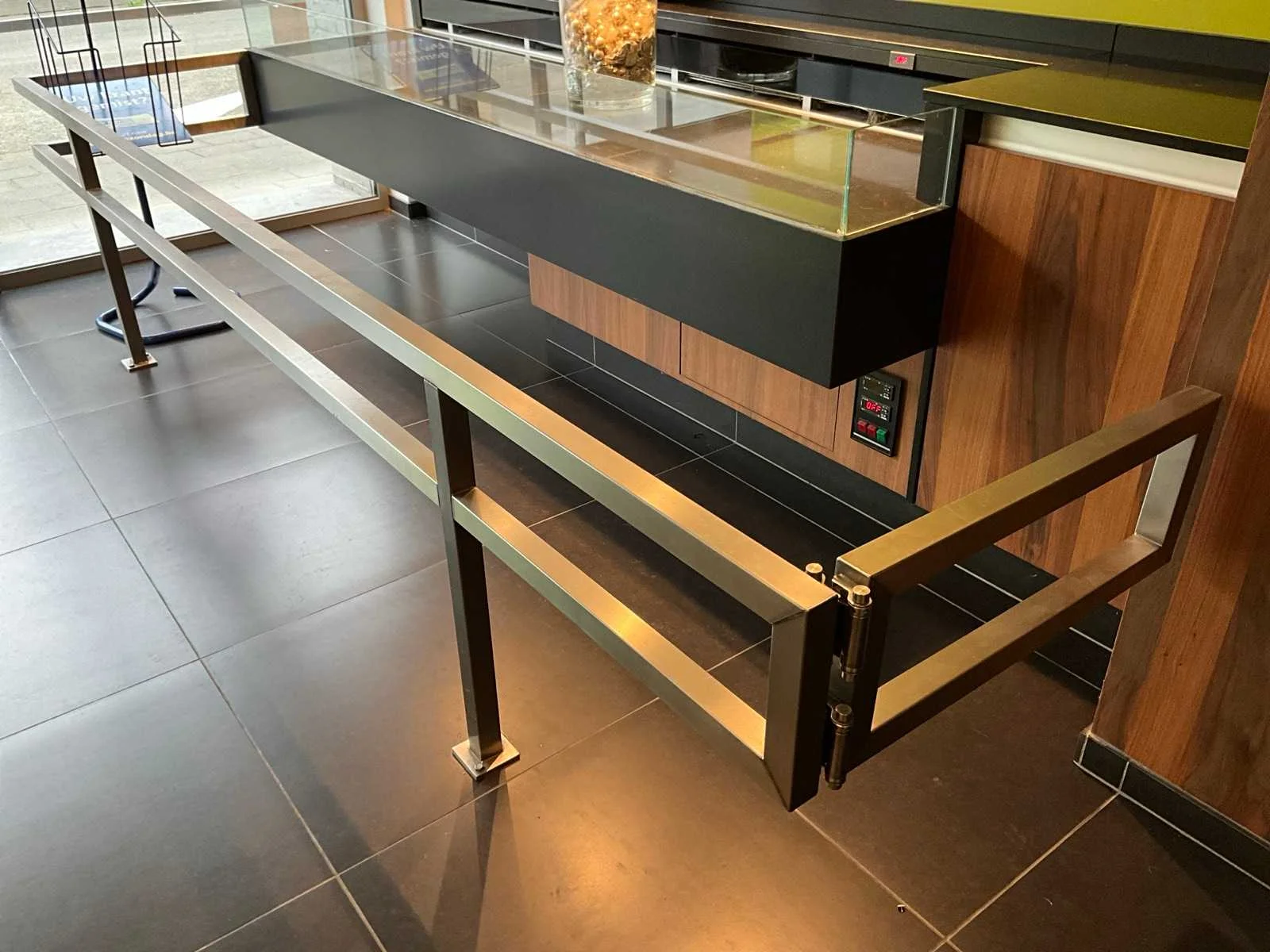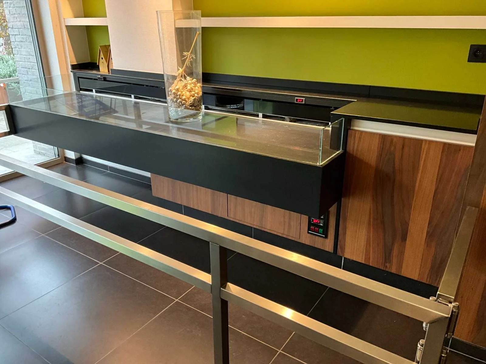 Gekoelde toonbank met werkblad uit natuursteen, 2 zones, opbergkast aan zijkant digitale uitlezing: ja inclusief: externe koelmotor, RVS beugel opmerking: zonder inhoud No Merk: Frigomil Afmeting l: 650mm Afmeting b: 2650mm Afmeting h: 890mm Totale afmeting L: 3200mm Totale afmeting Breedte: 850mm Totale afmeting Hoogte: 900mm