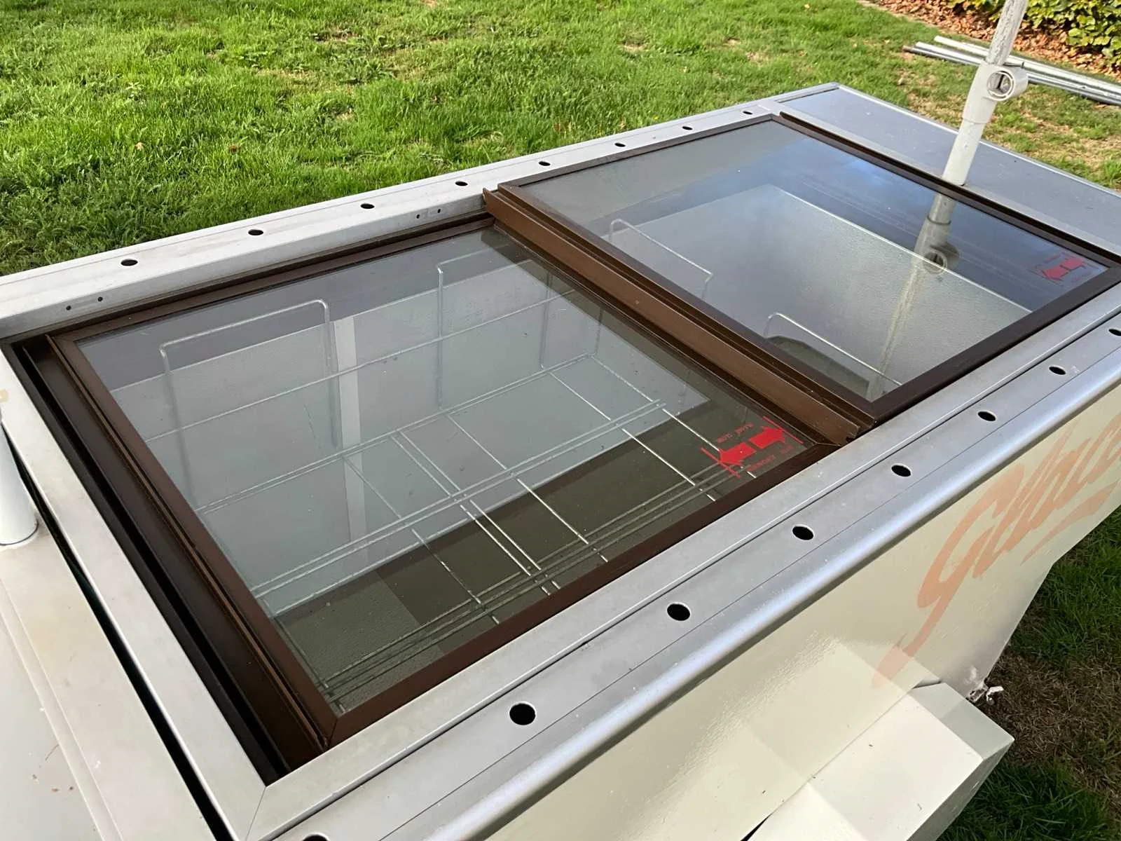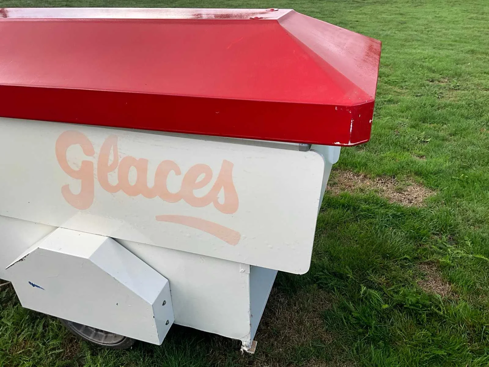 Retro ijswagen / mobiele diepvrieskar met zonneluifel