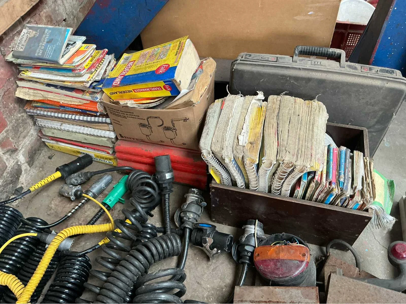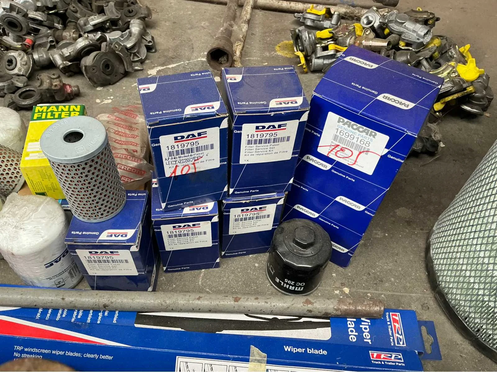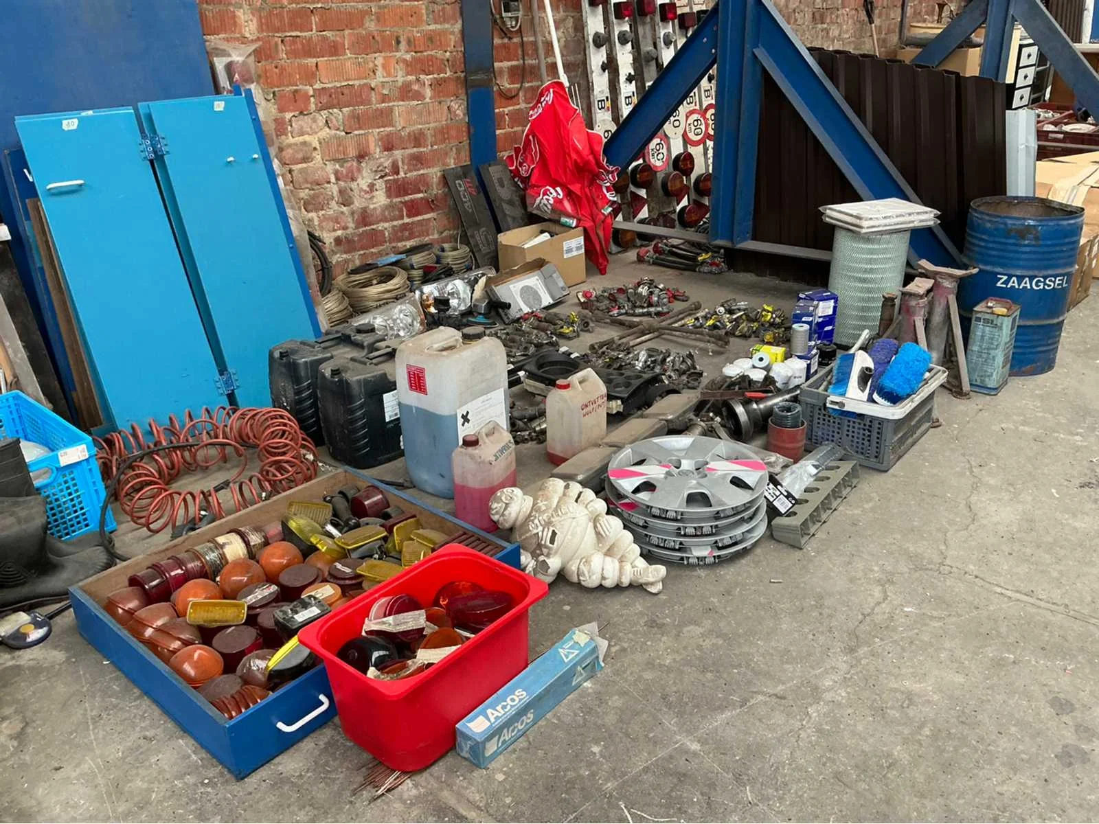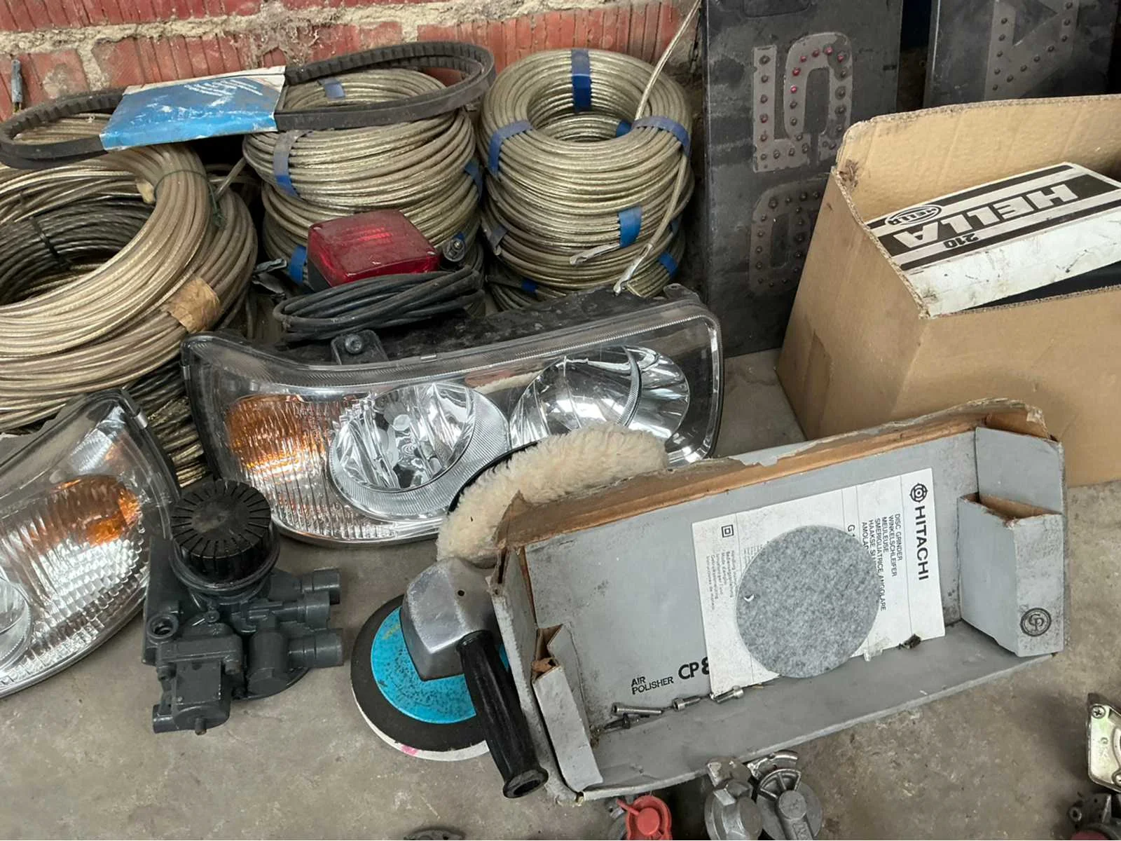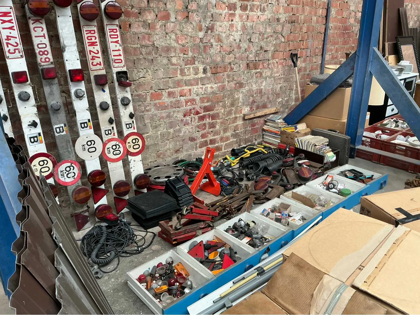 Groot lot vrachtwagen onderdelen waaronder lichten, filters, kabels en slangen, spanners, containervergrendelingen, luchtkoppelingen, ventielen, kentekenplaathouders,… Nee