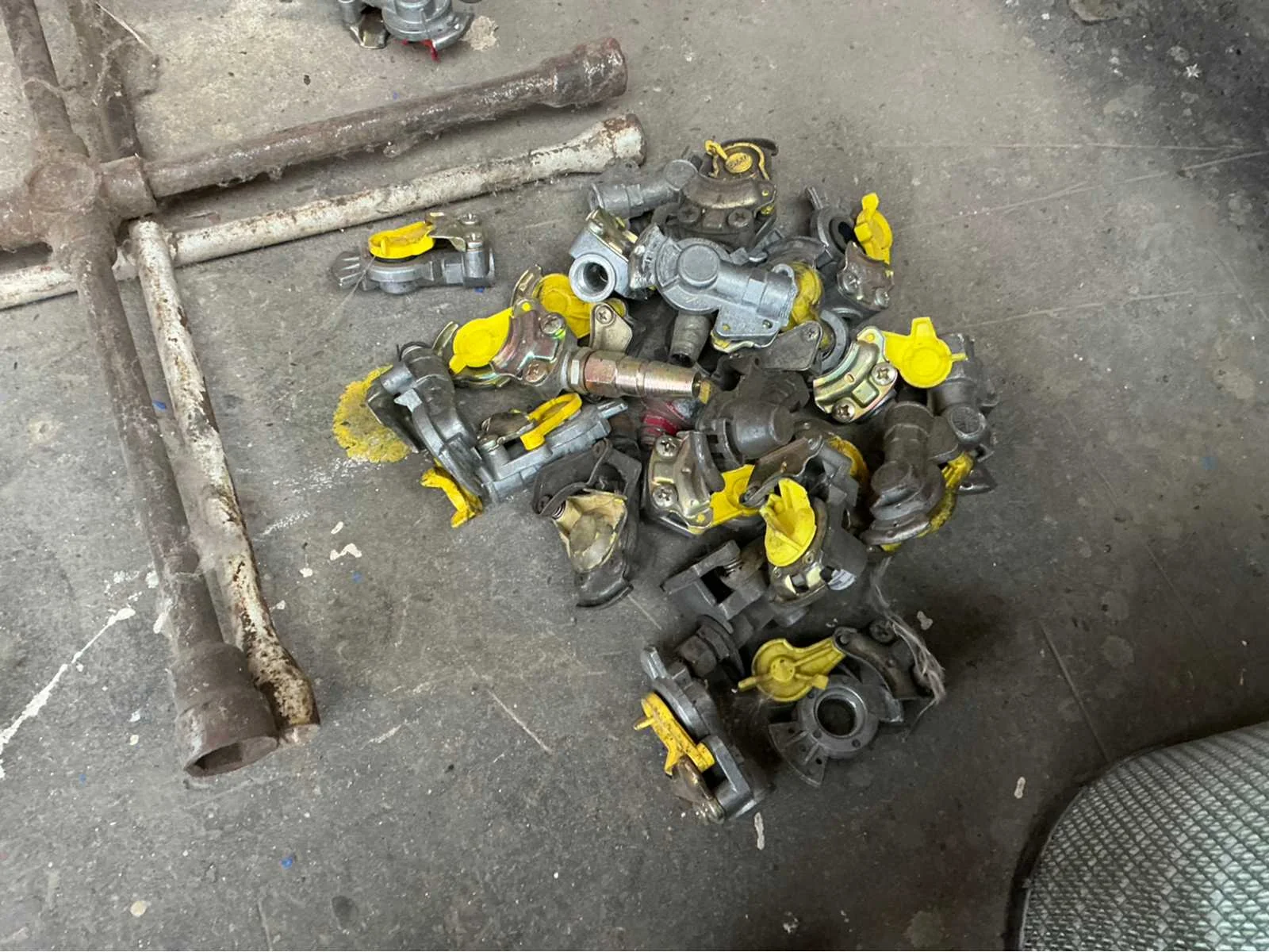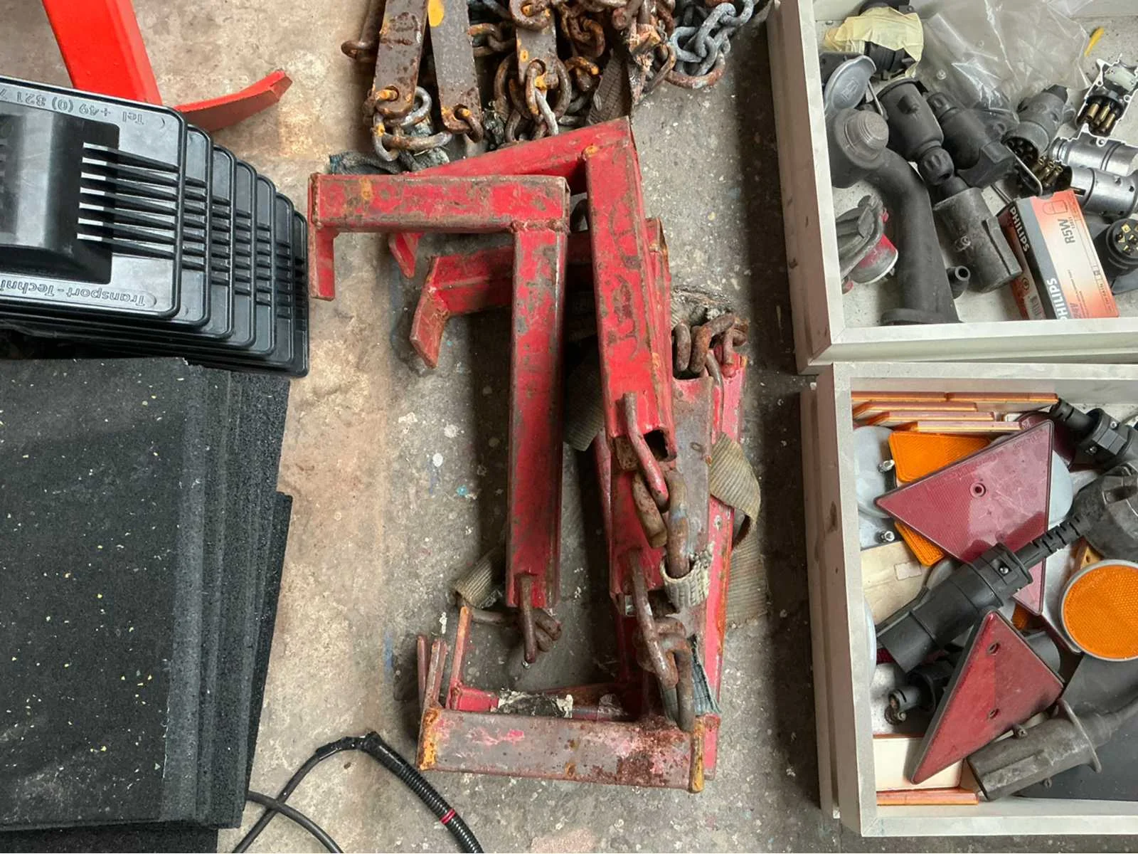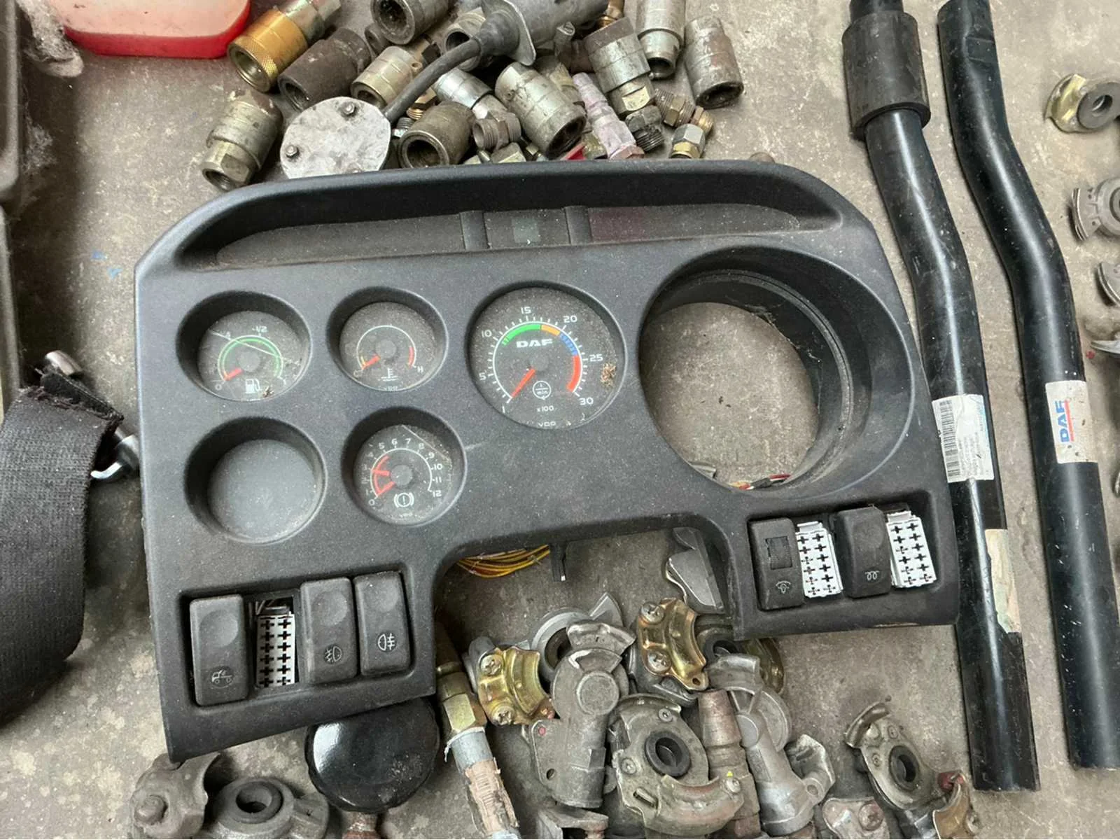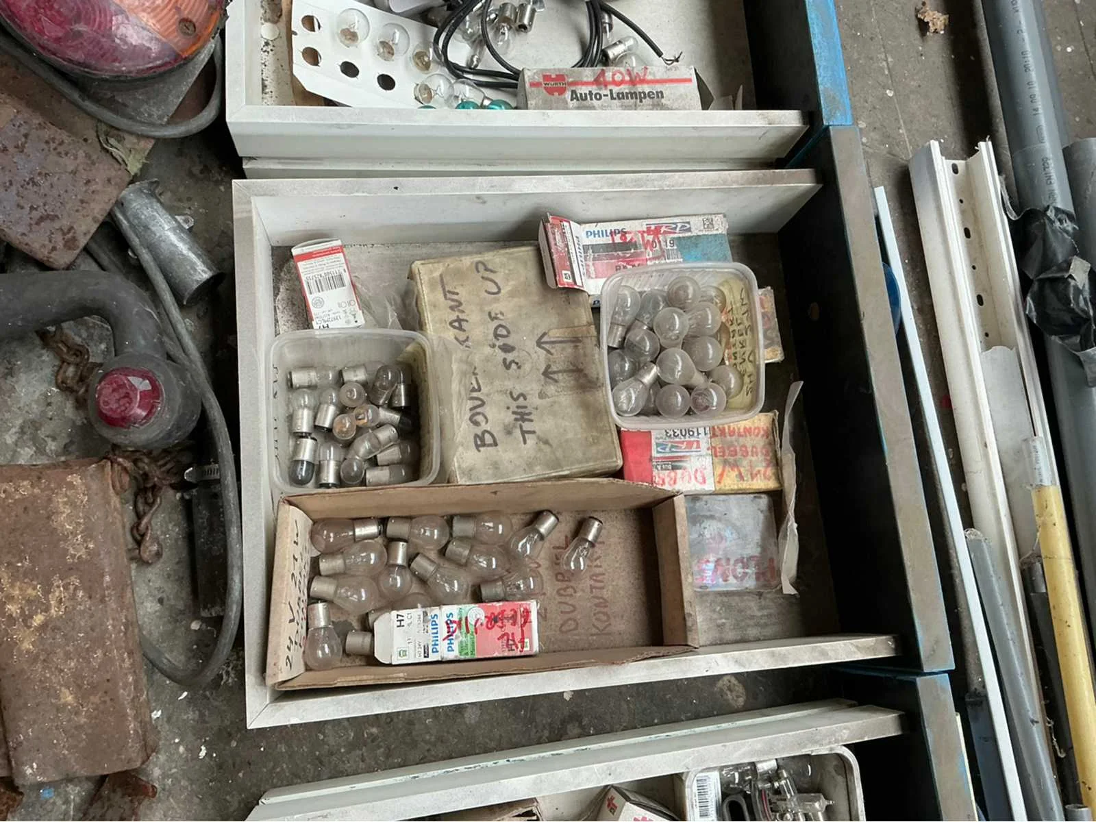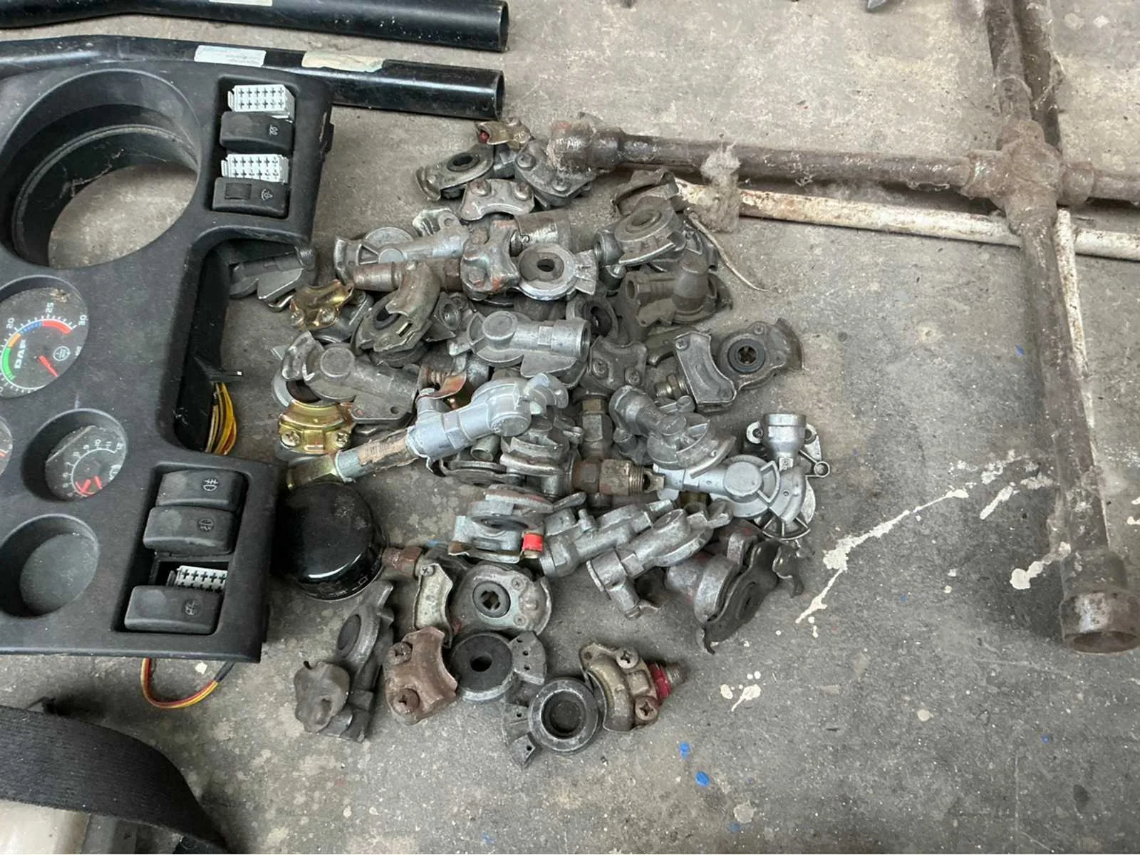 Groot lot vrachtwagen onderdelen waaronder lichten, filters, kabels en slangen, spanners, containervergrendelingen, luchtkoppelingen, ventielen, kentekenplaathouders,… Nee